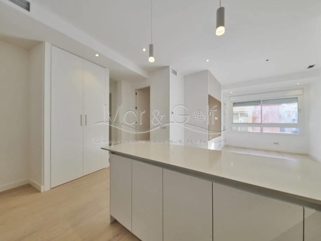 APARTAMENTO RENOVADO EN VENTA EN ALICANTE CENTRO Mar & Golf Unique Homes presenta este moderno apartamento, ubicado en una tranquila calle peatonal, a solo 5 minutos de la Rambla, de la Avenida de Maisonnave y la Explanada de España. La propiedad, recién reformada con un diseño contemporáneo, consta de 2 amplias habitaciones exteriores, 2 baños completos (uno de ellos en suite), cocina totalmente equipada, salón-comedor y cuatro armarios empotrados. Destacan los techos de 3,5 metros de altura, que junto a los espacios abiertos, aportan una sensación de amplitud y luminosidad. La cocina, equipada con electrodomésticos de alta gama Miele, cuenta con una práctica barra americana que se integra perfectamente con el salón. Además, dispone de suelos de parquet sueco, iluminación LED, persianas eléctricas y un sistema de climatización avanzado Toshiba Airzone, que permite ajustar la temperatura de cada habitación de forma independiente. Ubicado a solo 5 minutos del puerto y la playa, esta propiedad es la oportunidad perfecta para disfrutar de un estilo de vida lujoso y cómodo en el corazón de Alicante. ¡No dejes pasar esta oportunidad y agenda tu visita hoy mismo! ref: V4631-2.