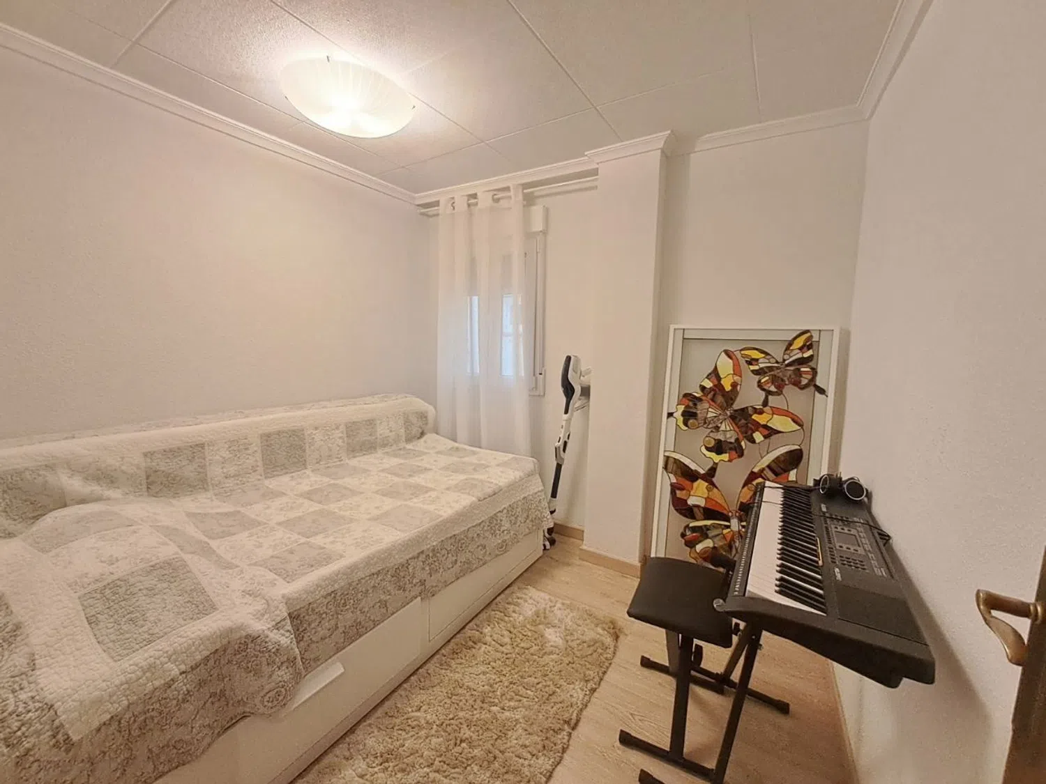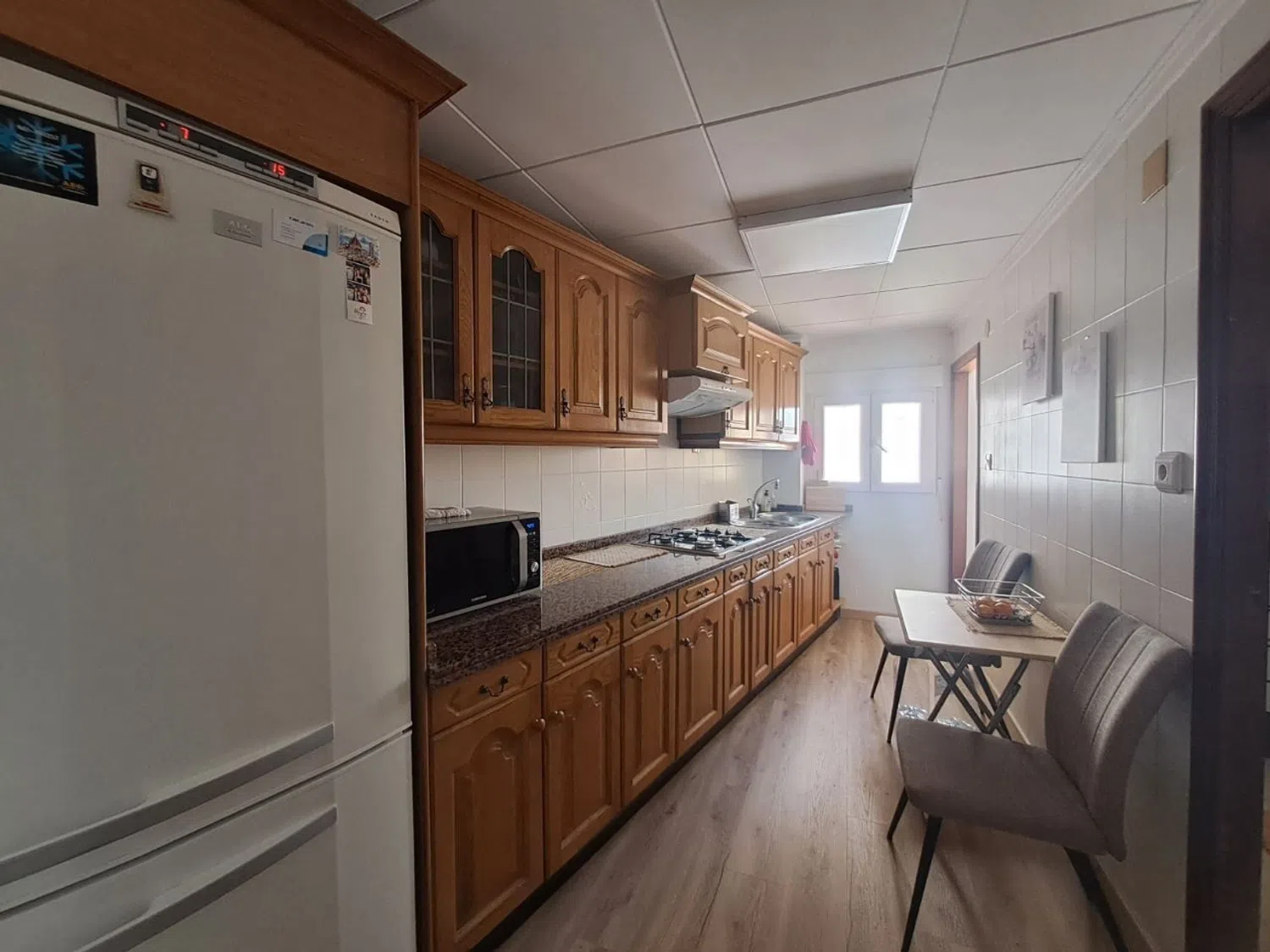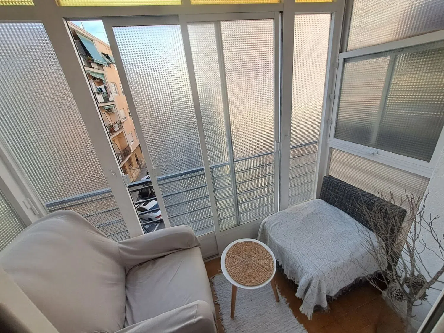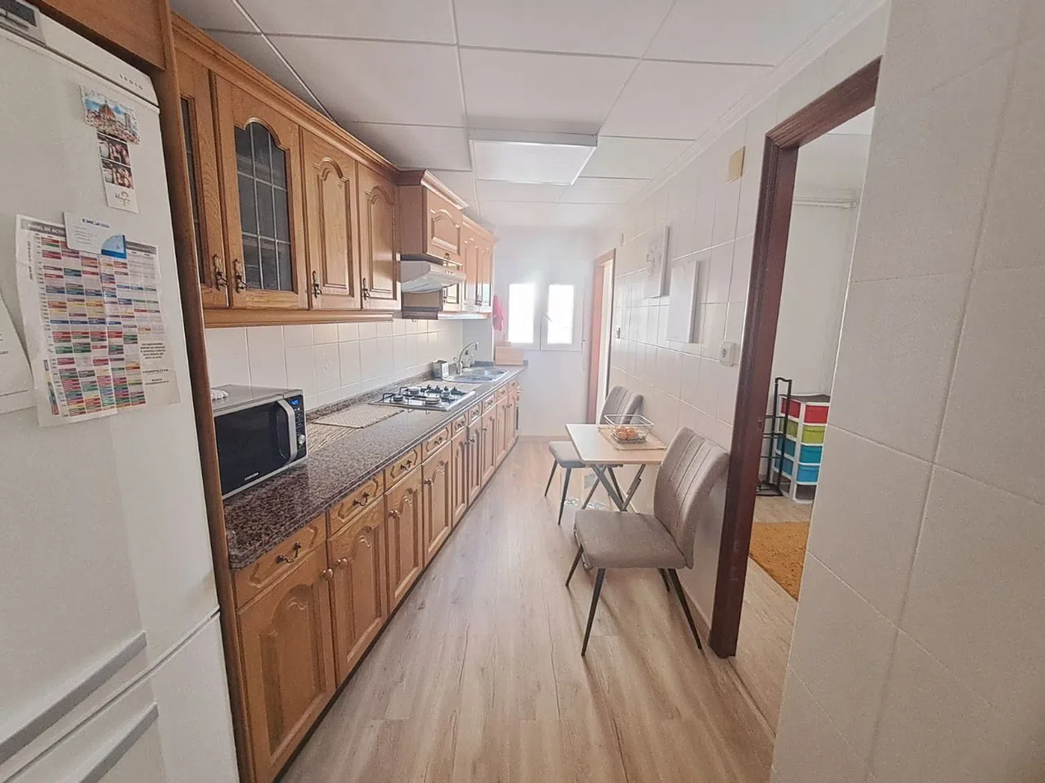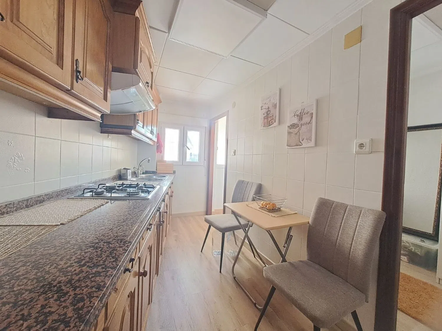 El apartamento ha sido recientemente reformado, incluyendo un cuarto de baño nuevo con tuberías actualizadas y ventanas de PVC. Además, dispone de dos unidades de aire acondicionado con función de frío y calor, y un suelo de tarima que añade calidez al ambiente. La cocina es independiente y funcional.