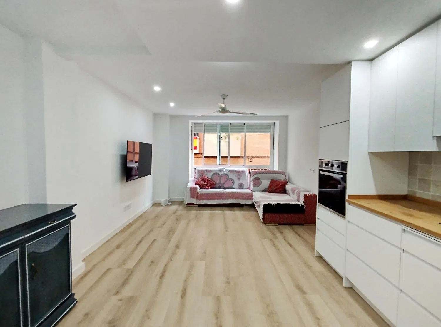 Le presentamos este magnífico piso en una zona centrada de Alicante, completamente reformado. Se trata de un entresuelo que cuenta con una superficie construida de 110 m². La distribución incluye dos habitaciones dobles y una habitación sencilla, además de dos baños completos y un salón que se integra con una cocina tipo office.