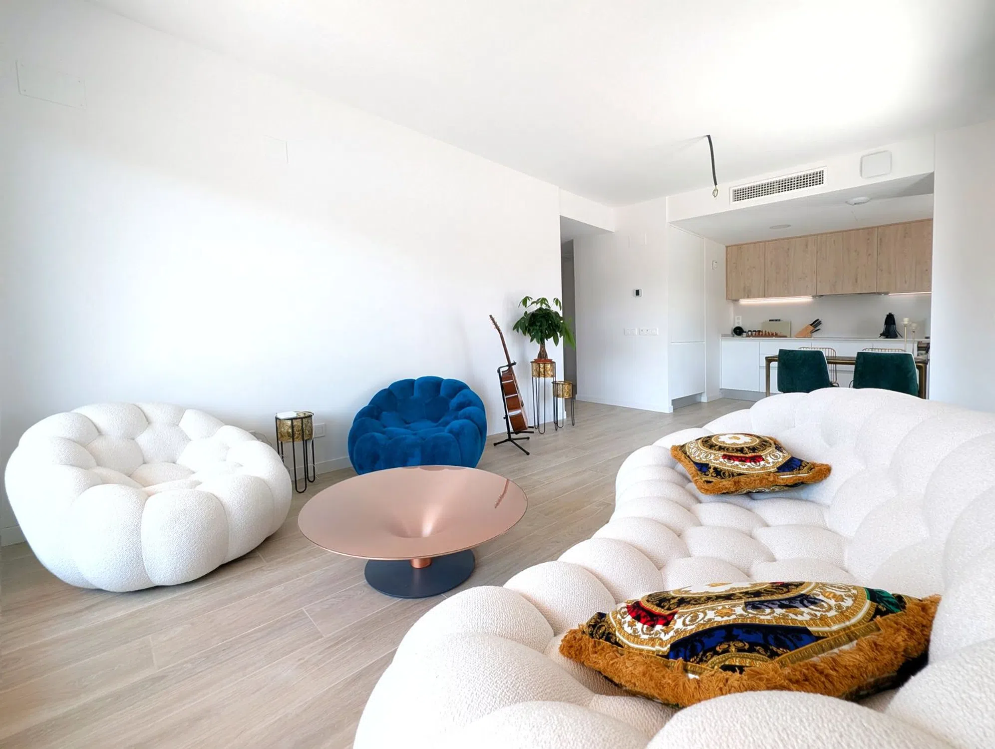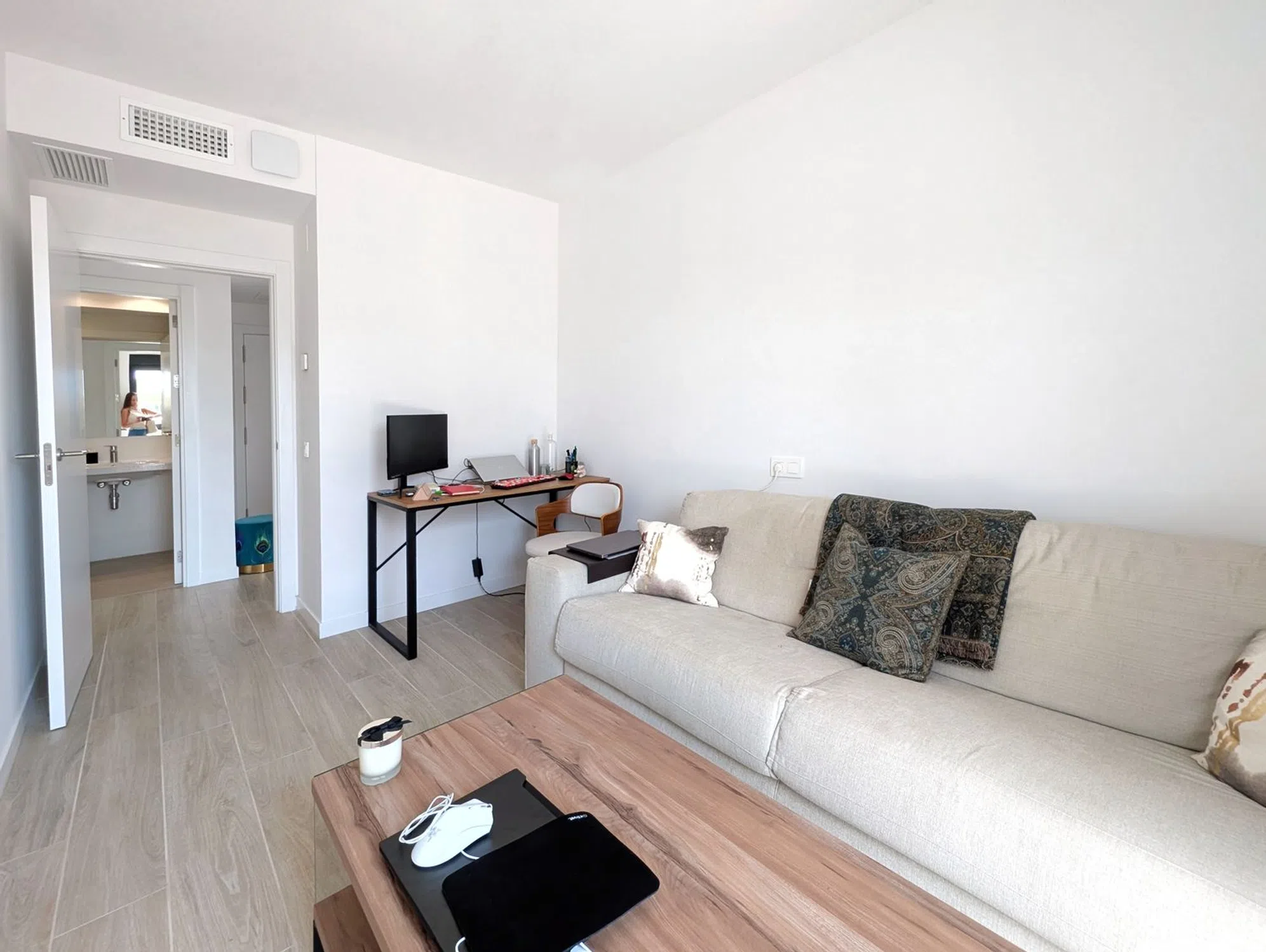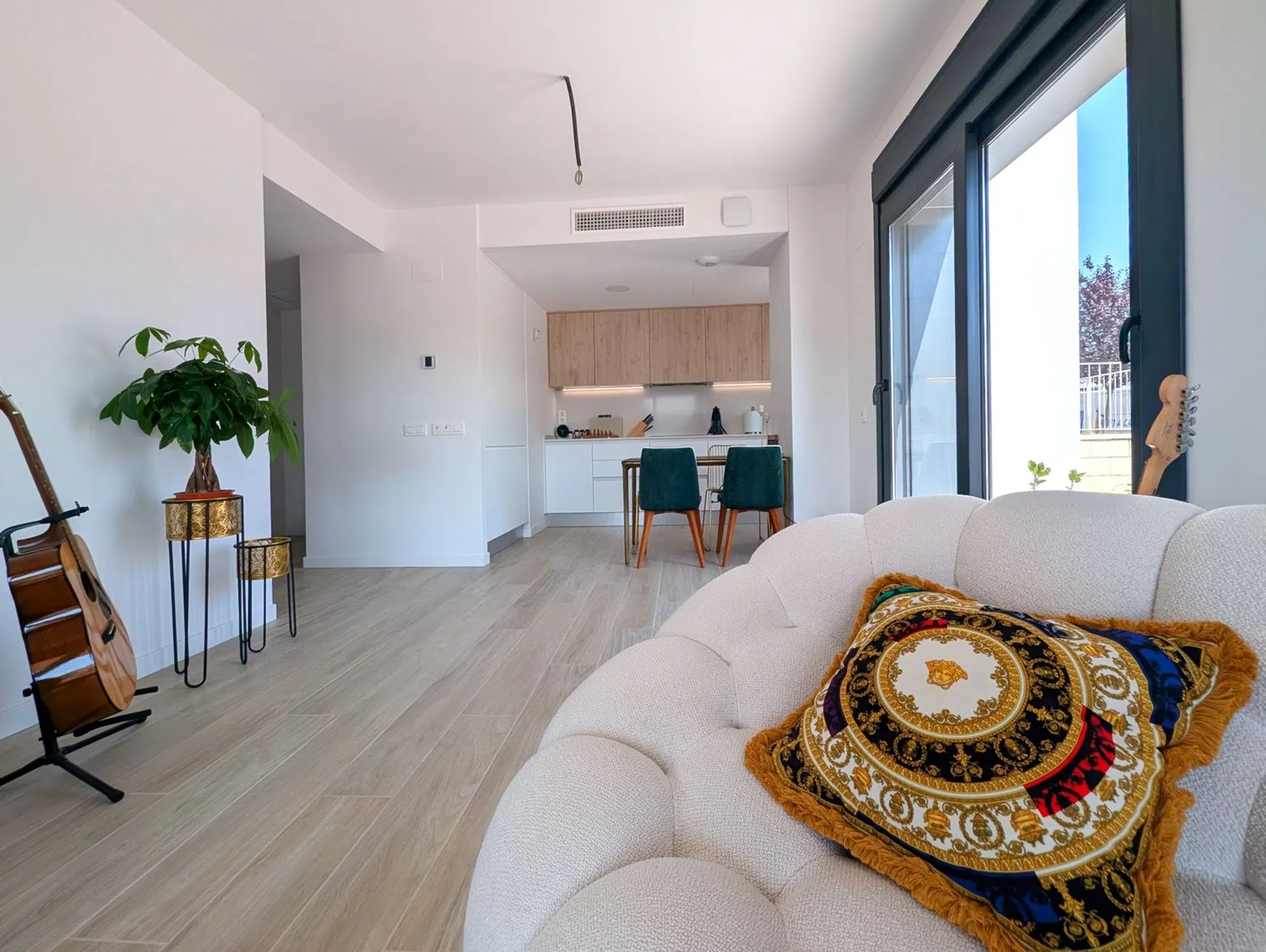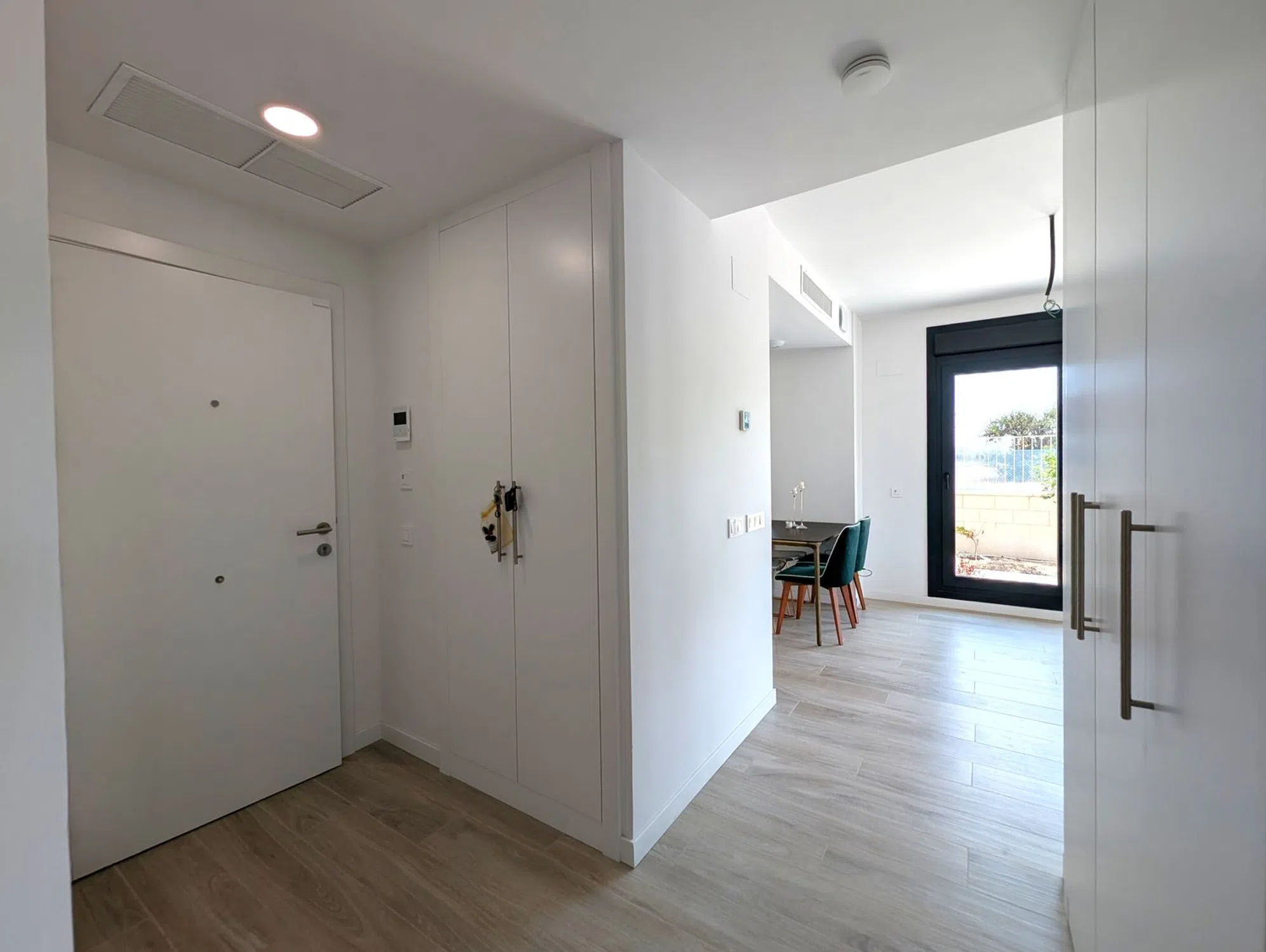 Se vende un magnífico y luminoso apartamento en una zona nueva entre PAU 5 y San Juan de Alicante. Este moderno y ecológico complejo residencial ofrece una combinación única de confort y lujo, ubicado en un entorno tranquilo y acogedor. La vivienda cuenta con tecnologías de estándar premium y un sistema de seguridad. Dispone de 2 dormitorios, 2 baños, un salón con cocina integrada y una amplia terraza soleada de 100 metros. La urbanización ofrece dos piscinas: una para adultos y otra infantil; gimnasio, zona de juegos y un precioso club social para eventos. Resumen de Mejoras Incluidas en la Vivienda 1. Pack Cocina ES: Cocina completamente equipada con electrodomésticos BOSCH integrados (frigorífico, lavavajillas y lavadora), además de iluminación LED bajo los muebles. ✨ Vive la comodidad de entrar a una cocina de diseño totalmente equipada desde el primer día. EN: Fully equipped kitchen with built-in BOSCH appliances (fridge, dishwasher, washer) and under-cabinet LED lighting. ✨ Move into a stylish, fully equipped kitchen and enjoy comfort from day one. 2. Pack Technology Premium ES: Controla las luces y persianas desde tu smartphone o con comandos de voz gracias a Alexa, con detector de humo incluido. ✨ Domótica avanzada para una vida más cómoda y segura. EN: Control lighting and blinds with your smartphone or voice via Alexa, plus built-in smoke detector. ✨ Smart home technology for safer, easier living. 3. Pack Confort ES: Sistema de climatización Airzone con control por estancias y acceso desde tu móvil, incluyendo suelo radiante y rejillas motorizadas. ✨ Climatización inteligente, eficiente y personalizable para cada espacio. EN: Airzone system with zoned temperature control, radiant floor heating, and smartphone access. ✨ Personalized, energy-efficient climate control for every room. 4. Pack Ventilación ES: Sistema de ventilación de doble flujo con recuperador de calor para renovar el aire sin abrir ventanas. ✨ Respira aire puro en casa con eficiencia energética y sin ruidos exteriores. EN: Dual-flow ventilation with heat recovery to renew air without opening windows. ✨ Enjoy clean, fresh air indoors while saving energy and avoiding noise. 5. Pack Security Tech ES: Persianas motorizadas autoblocantes en todas las estancias, combinadas con el sistema Premium. ✨ Seguridad reforzada y control total con solo pulsar un botón. EN: Auto-locking motorized blinds throughout, integrated with the Premium system. ✨ Enhanced security and full control at your fingertips. ¡Solicita tu visita hoy mismo!