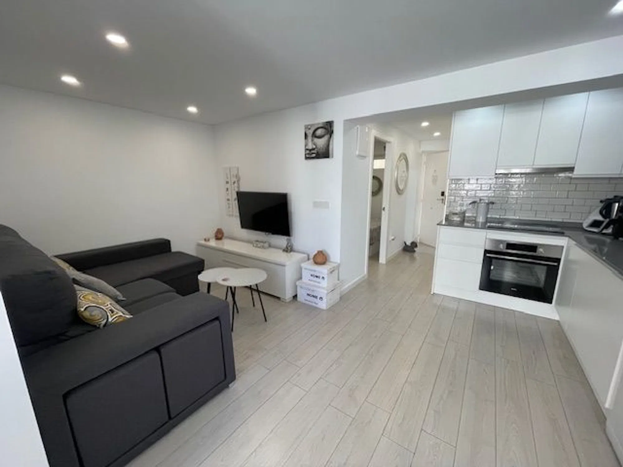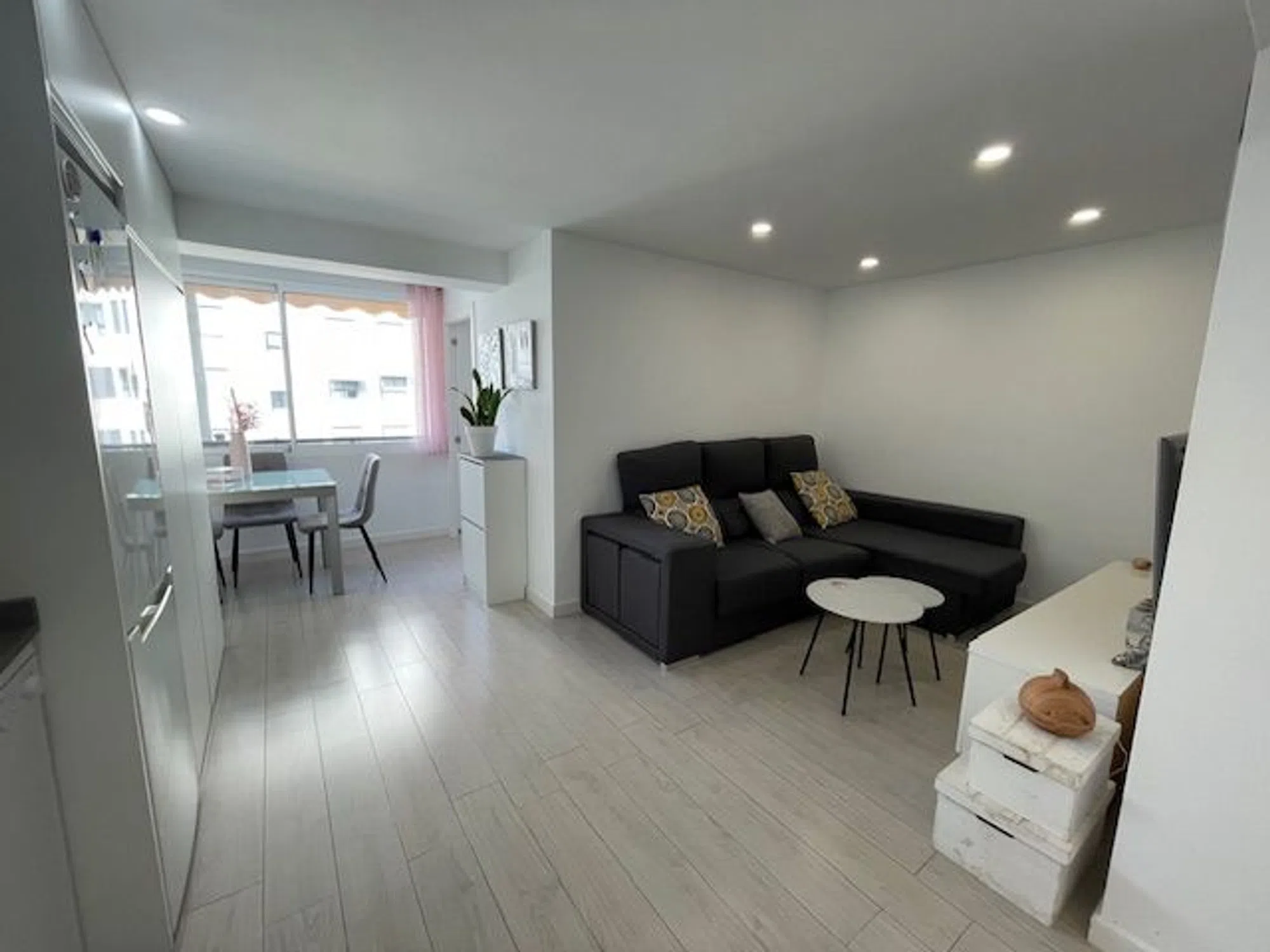 Estupenda vivienda disponible en Pau 5, playa de San Juan, en la planta 4ª, reformado completamente hace 3 años y con las mejores calidades como carpintería de roble, ventanas Climalit, puerta blindada y suelos de gres porcelánico efecto madera. Se trata de un piso muy luminoso ya que es todo exterior y cuenta con salón comedor, cocina integrada equipada, ventana con bonitas vistas a la urbanización, 2 dormitorios con camas y armarios y 1 baño completo con ducha. Disfruta de A/A y ventiladores de techo. Se vende amueblado Urbanización con piscina, jardines, pista polideportiva, zona de bar y amplias zonas de aparcamiento y conserje. Rodeada de cualquier comercio o servicio que se pueda precisar, actualmente una de las zonas mas demandadas de la playa. Paradas de transporte publico cerca y en una avenida principal próxima al mar. Comunidad 75€ mes. Ibi 95€ anual.