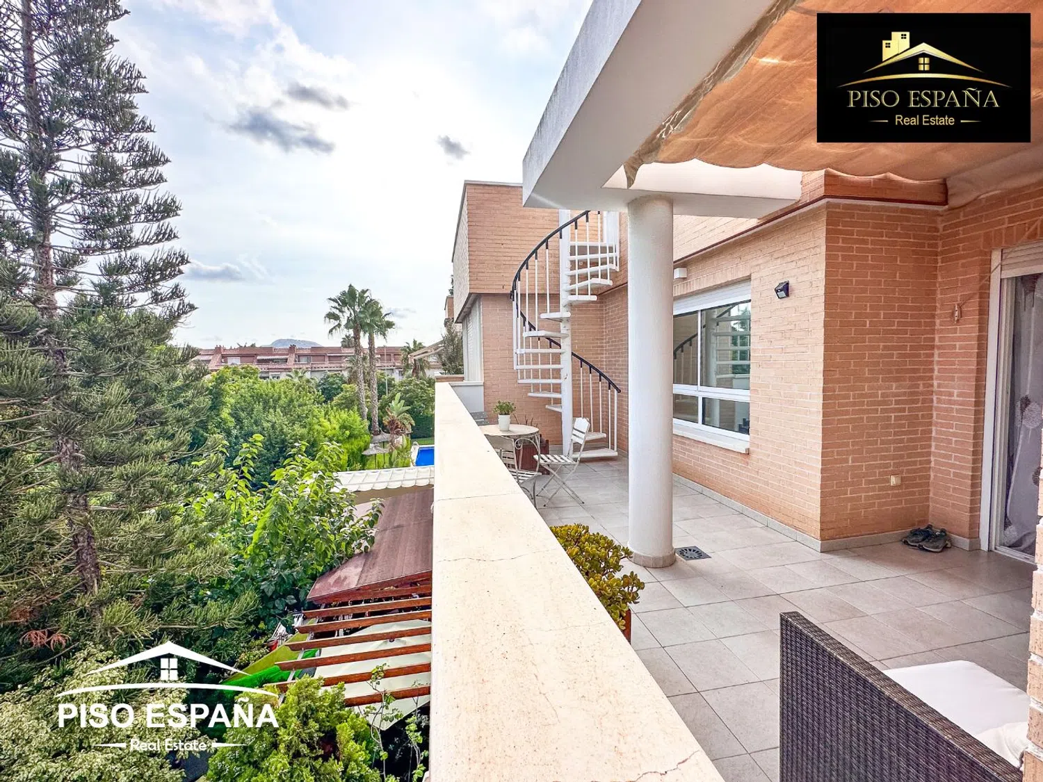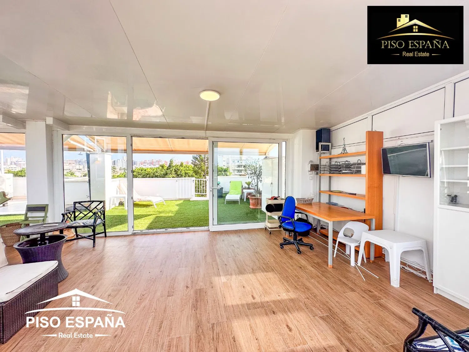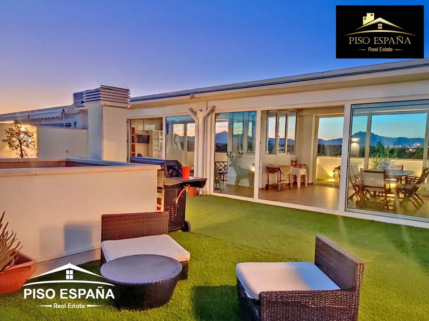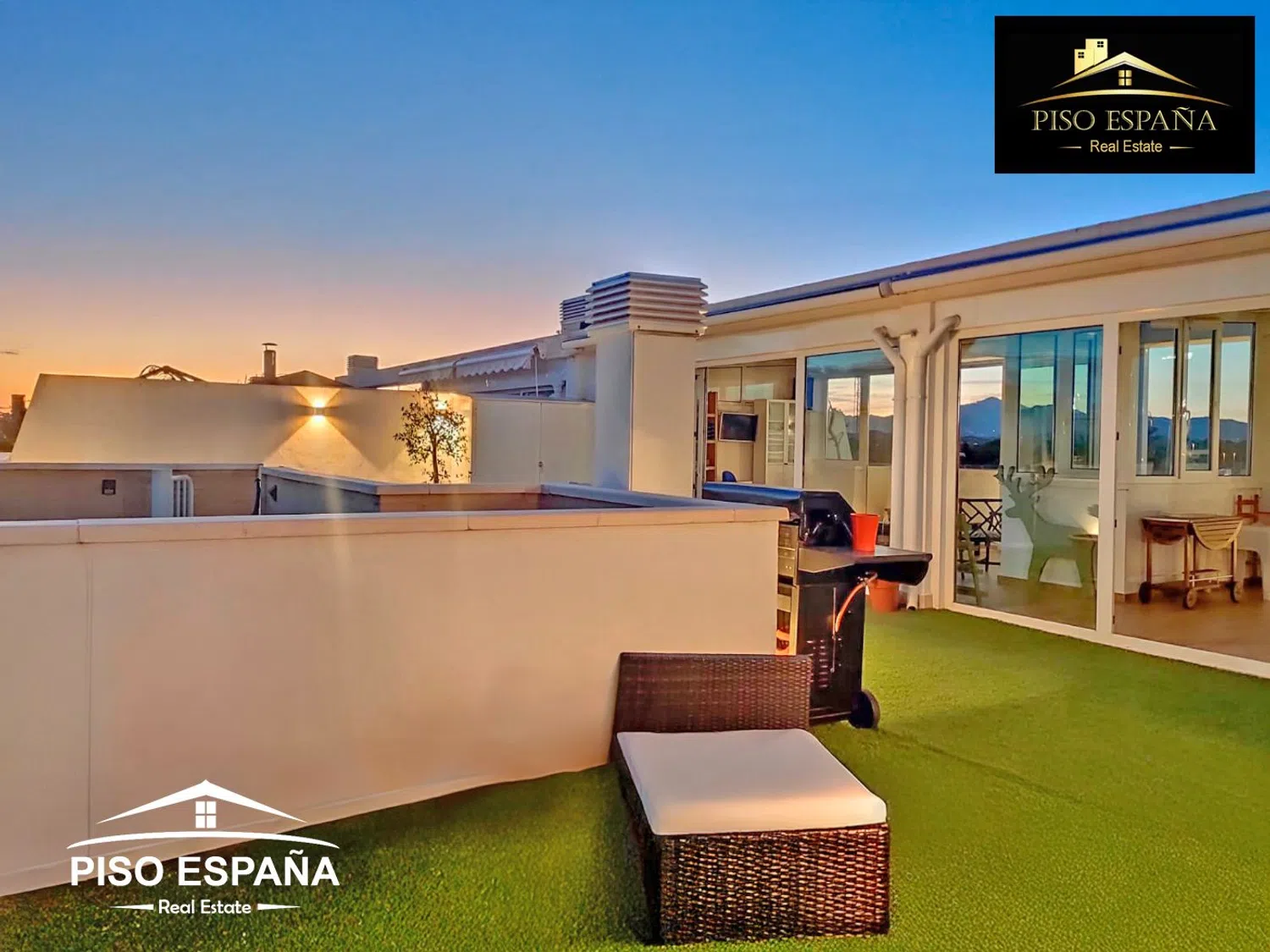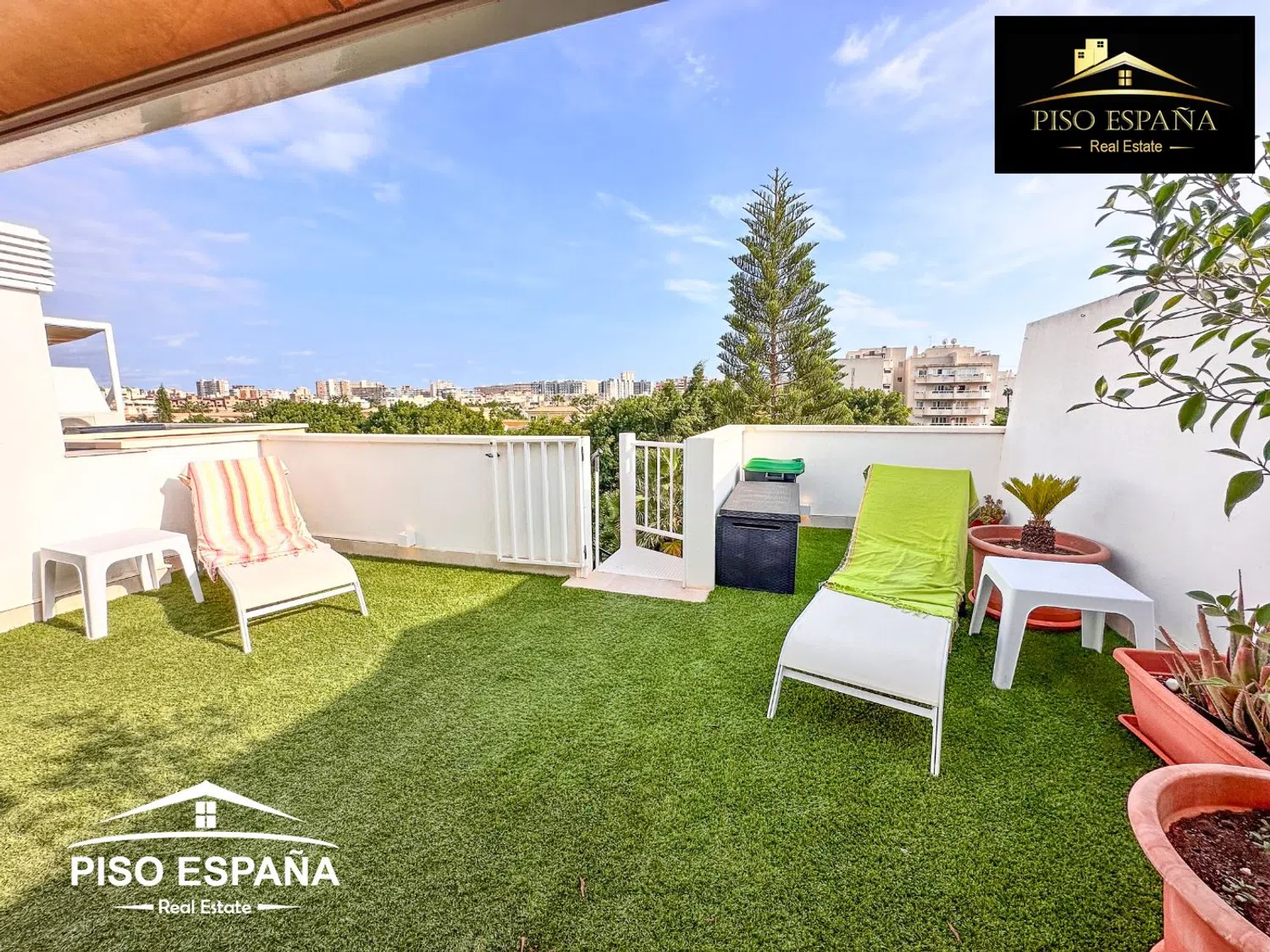 En cuanto a las comodidades, la vivienda está equipada con aire acondicionado frío y calor por conductos, sistema de seguridad, ventanas climalit y persianas con toldos motorizados. En la primera planta, se encuentran un amplio salón comedor de aproximadamente 40 m², una cocina independiente que se extiende a unos 8 m², tres dormitorios y dos baños con ducha. La terraza de esta planta tiene un área aproximada de 20 m². La segunda planta ofrece una impresionante terraza de alrededor de 50 m² con césped artificial de calidad y un salón-comedor adicional, también de aproximadamente 50 m², junto con una barbacoa, un aseo y una ducha, complementados con toldos eléctricos.