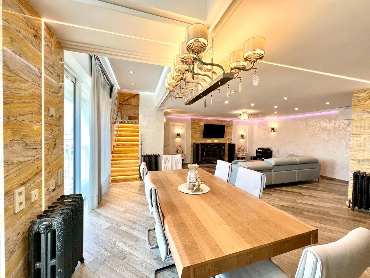 Espectacular Ático-Dúplex de 404m², con terraza de 67m² con vistas panorámicas a la ciudad y al mar. Construido en 2005, fusiona lujo, tecnología y confort en cada detalle. Sus amplios espacios se distribullen, en Planta Principal, donde se encuentra un Salón con bonita chimenea de marmol, la Cocina tipo isla, zona lavandería, 3 habitaciones y 3 baños, y la planta superior, otro Salón con sistema home cinema que disfruta de acceso a la terraza, cocina y un baño, plantas diseñadas para el máximo bienestar. Dispone de sistema de producción de agua caliente sanitaria por gas ciudad, con calefacción mediante radiadores de agua en todas las estancias, equipos de aerotermia tipo split, garantizando un ambiente óptimo en todas las estaciones. La chimenea en el salón aporta un toque cálido y sofisticado, mientras que el sistema de smart home permite gestionar la iluminación, las persianas y la temperatura de forma intuitiva. Los materiales y acabados son de la más alta calidad. El suelo de la vivienda es de madera natural, aportando calidez y elegancia, mientras que la escalera destaca con su imponente mármol, realzando la distinción del espacio. Además, cuenta con un sistema de filtración de aire avanzado para un ambiente siempre puro y saludable. La terraza es un oasis privado, perfecto para cualquier época del año, con iluminación integrada, calefacción y toldo eléctrico. Para mayor comodidad, la propiedad incluye parking privado con trastero y cargador para coche eléctrico. Ubicado en una exclusiva urbanización de lujo, el entorno destaca por sus jardines, pasarelas de madera y un ambiente tranquilo y seguro. Sus instalaciones incluyen cuatro piscinas, sauna, gimnasio, pistas de pádel, fútbol y baloncesto, además de un parque infantil. En el precio se incluye una amplia y cómoda Plaza de Garaje, que cuenta instalado un cargador de vehículos eléctricos y un Trastero. Un hogar diseñado para disfrutar de privacidad, exclusividad y bienestar absoluto. Para la gestión de venta utilizamos métodos profesionales, descubre los procesos llevados a cabo en entraymas. comTe asesoramos y acompañamos en todo el proceso de la compraventa.