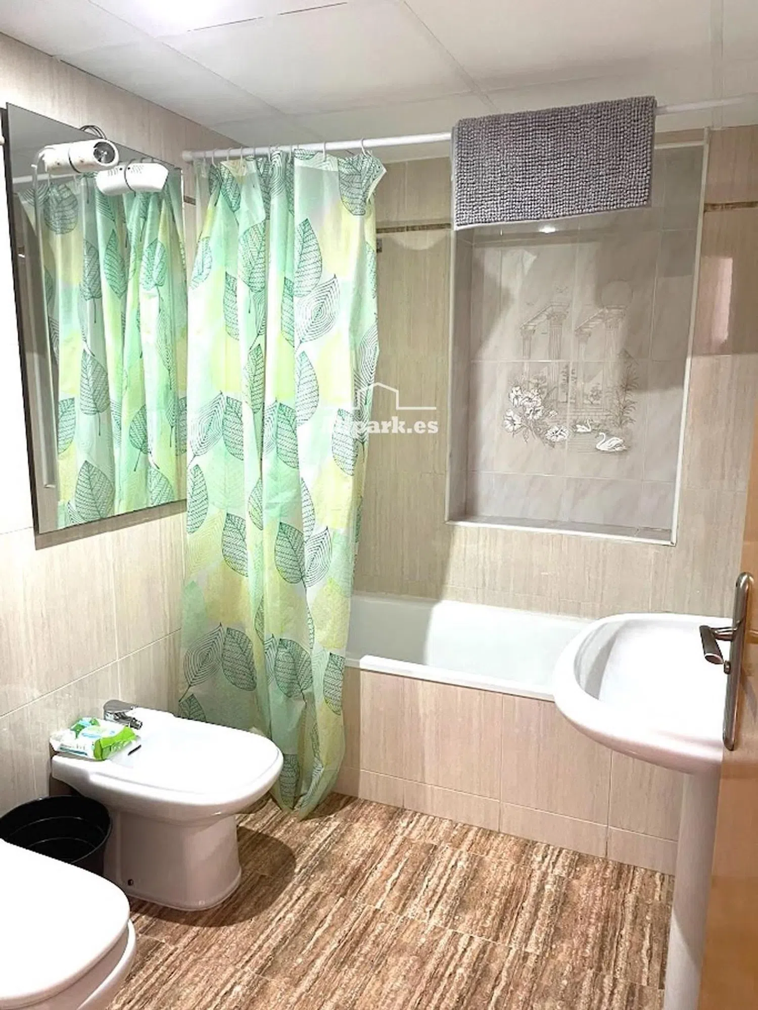 Cuenta con tres habitaciones, de las cuales dos son individuales y una más es doble, proporcionando versatilidad para familia o invitados. Dispone de dos baños completos; uno de ellos cuenta con un plato de ducha, mientras que el otro está equipado con bañera, ofreciendo opciones para cada necesidad.