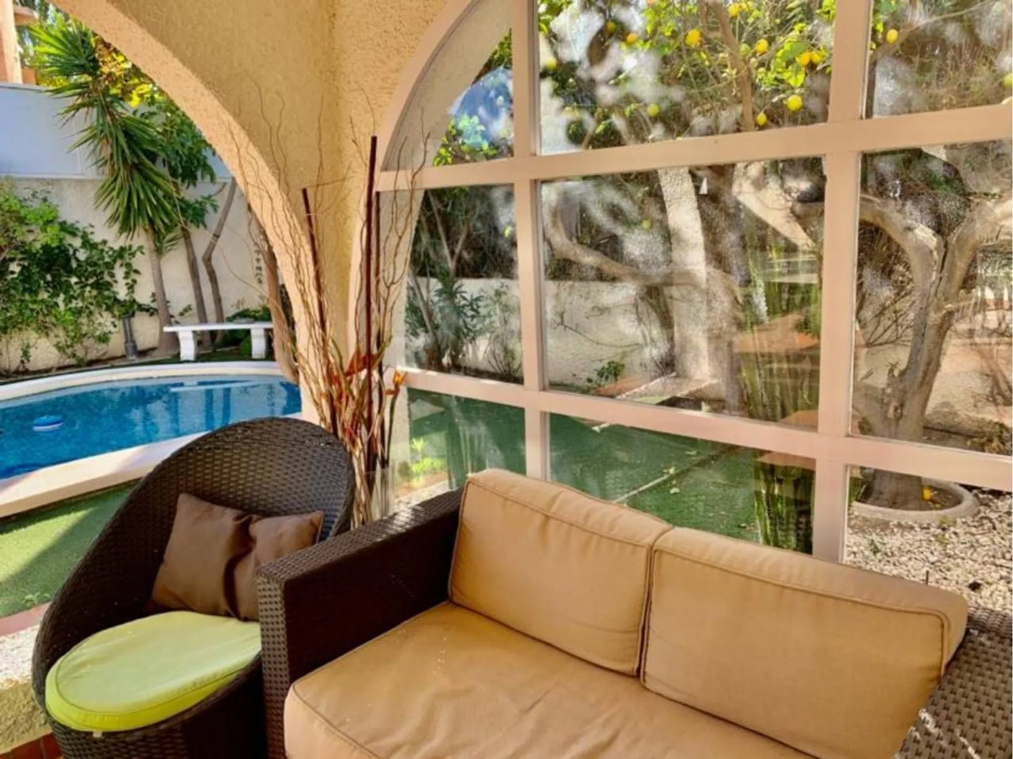 Chalet independiente en el corazón de Cabo de las Huertas, con piscina y jardín privado, barbacoa, parking en superficie. Vivienda distribuida en 2 plantas: Planta 1: amplia terraza, salón comedor con chimenea, 3 habitaciones, baño con ducha, cocina y despensa. Planta 2: 2 habitaciones en suite + vestidor. Dispone de split en salón y radiadores calor azul.