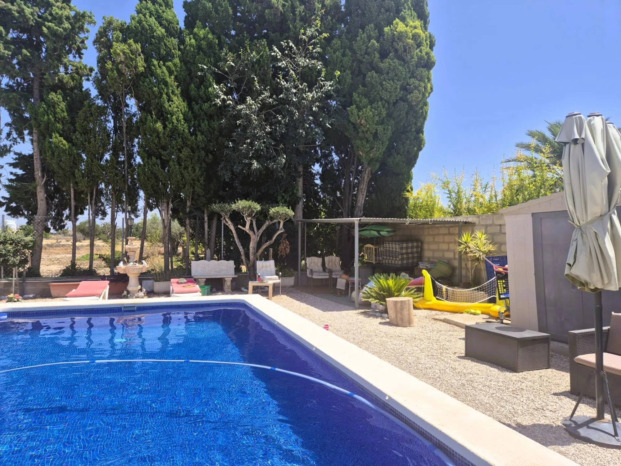 Se vende magnífica casa independiente con piscina y terreno de 800m2 situada en San Juan, que combina comodidad, amplitud y un entorno ideal para disfrutar en familia. Se encuentra en una zona muy tranquila a solamente 2km de la playa y bien comunicada, cerca de todos los servicios: colegios, supermercados, transporte público, zonas verdes y comercios. En el exterior, destaca la piscina privada, perfecta para refrescarse en verano, la zona de barbacoa rodeada de árboles y terraza, ideal para comidas al aire libre o reuniones familiares. La vivienda principal se distribuida en dos plantas. -En la plata baja se encuentra un salón-comedor con cocina abierta, una habitación y un baño completo. -En la primera planta tenemos 3 habitaciones muy luminosas y un baño completo. Una de las habitaciones tiene una terraza privada. Además, la propiedad cuenta con una cocina y salón-comedor anexo con aire acondicionado, ideal para invitados. La propiedad también cuenta con un Garaje cerrado. Una oportunidad única para quienes buscan calidad de vida en un entorno cómodo y acogedor.