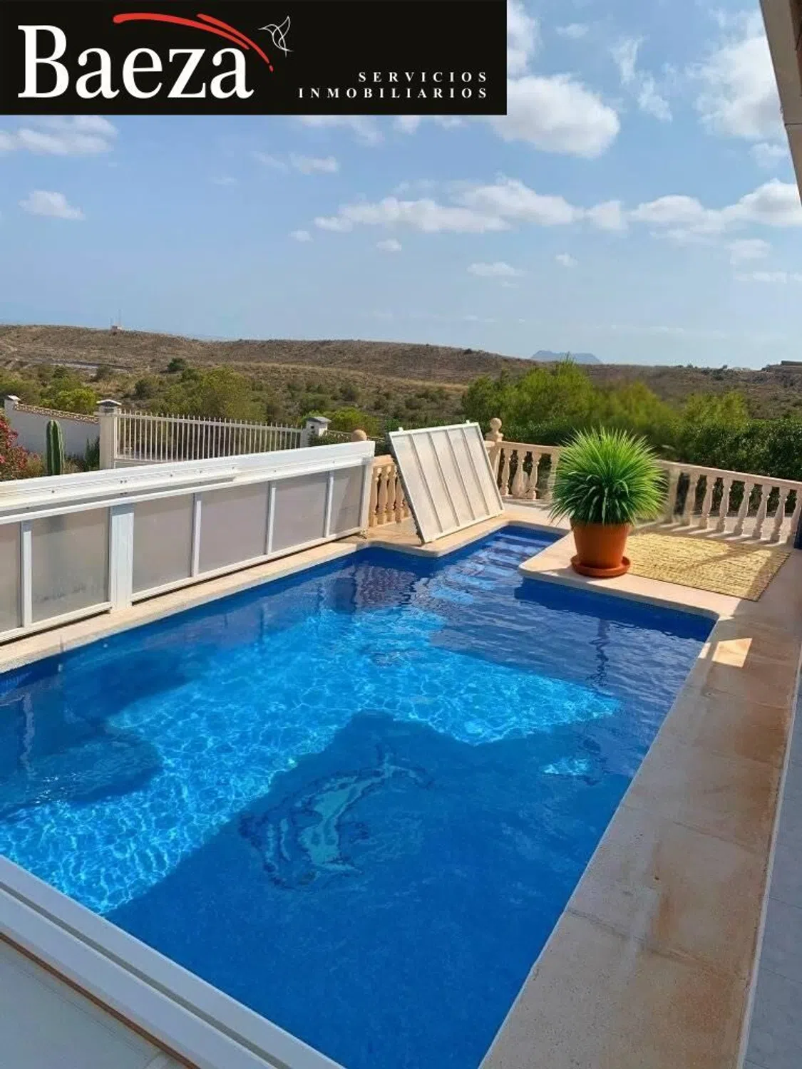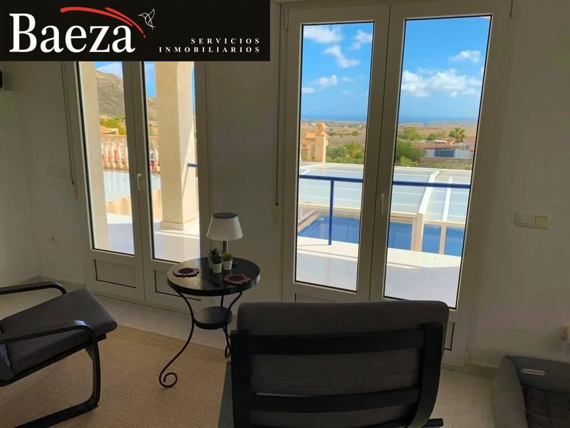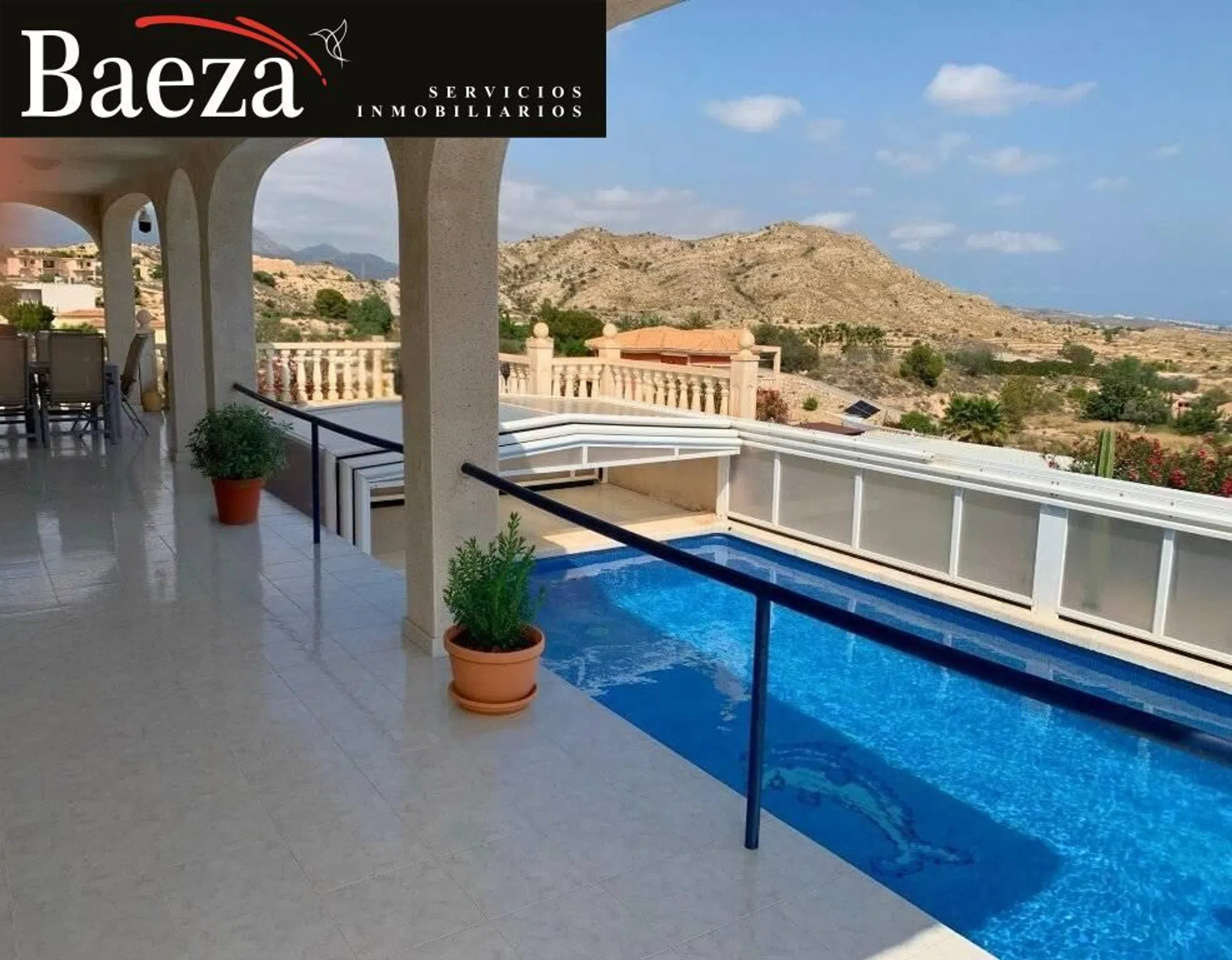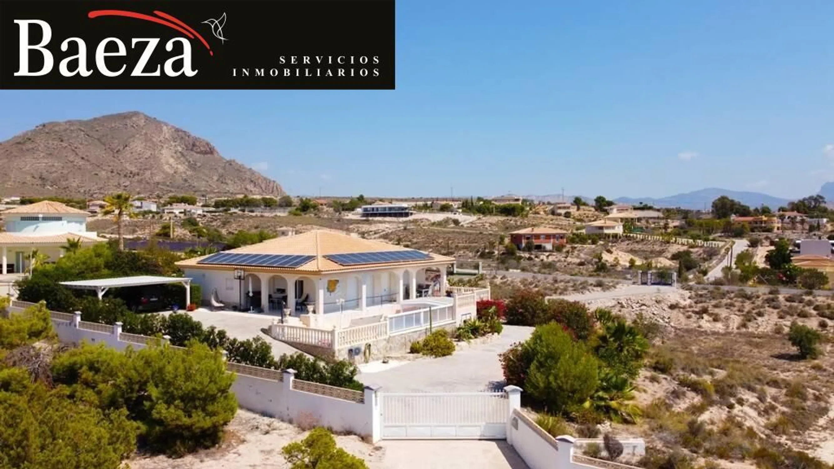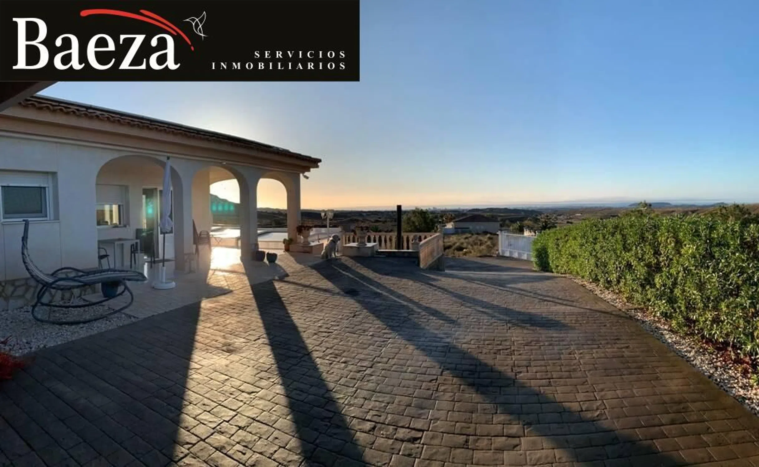 � Baeza Inmobiliaria presenta: Chalet independiente exclusivo con espectaculares vistas al mar y la costa Les presentamos una villa única, situada en un enclave privilegiado junto a una reserva natural, donde la tranquilidad y el confort se fusionan con unas vistas panorámicas difíciles de igualar. Desde esta propiedad podrá contemplar el mar Mediterráneo en toda su esencia, divisar la costa alicantina, la ciudad y el paisaje interior, disfrutando cada día de amaneceres y atardeceres inolvidables. ✨ Descripción de la vivienda La casa se levanta sobre una amplia parcela en posición elevada, lo que le confiere una extraordinaria sensación de amplitud, luminosidad y privacidad. Diseñada para ofrecer comodidad en cada detalle, combina la calidez de un hogar con prestaciones modernas y una construcción sólida. �️ Distribución y equipamiento Espacioso salón-comedor con acceso directo a varias terrazas cubiertas y descubiertas. Cocina independiente totalmente equipada, con zona de comedor. 3 dormitorios amplios y luminosos. 2 baños completos, uno de ellos en suite. 2 terrazas cubiertas, una orientada al sur y otra al oeste, ideales para disfrutar del sol todo el año. Piscina privada de 8 x 4 m con cubierta acristalada que permite alargar la temporada de baño. Garaje en sótano con trasteros y sala técnica, comunicado directamente con la vivienda mediante escalera interior. Acceso adaptado para personas con movilidad reducida gracias a una rampa exterior que conecta ambas plantas. Cochera cubierta con capacidad para 2 vehículos. � Confort y tecnología La villa está equipada con todas las comodidades necesarias para una vida moderna: 3 unidades de aire acondicionado. Calefacción central. Sistema de domótica Smart Home (Loxone) de fácil uso. Acceso sin llave mediante códigos de seguridad. Sistema de vigilancia con 8 cámaras exteriores y 3 interiores. Instalación fotovoltaica con baterías de almacenamiento de 10 kW. Conexión a Internet de alta velocidad vía Starlink. � Exterior y jardín El exterior de la propiedad es un auténtico refugio natural. La parcela ofrece espacio suficiente para el disfrute de los amantes de la jardinería, al tiempo que garantiza privacidad. Desde las terrazas y la piscina, las vistas se convierten en el escenario perfecto para momentos de relax, celebraciones familiares o simplemente para desconectar rodeado de naturaleza. � Ubicación La villa se encuentra en una ubicación exclusiva, tranquila y al mismo tiempo bien comunicada: A solo 10 minutos en coche del encantador pueblo de Mutxamel. A 15 minutos de las largas playas de arena de Playa San Juan y El Campello. Alicante capital se encuentra a 20 minutos. El aeropuerto internacional de Alicante está a tan solo 30 minutos. Conclusión Nos encontramos ante una propiedad realmente singular en el mercado inmobiliario: un chalet independiente con amplia parcela, vistas panorámicas al mar y a la costa, privacidad, tecnología de última generación y un entorno natural incomparable. Una villa diseñada para quienes buscan una vida tranquila sin renunciar a la comodidad y al estilo. � ¡Solicite una visita y descubra por usted mismo el encanto de esta villa de ensueño!
