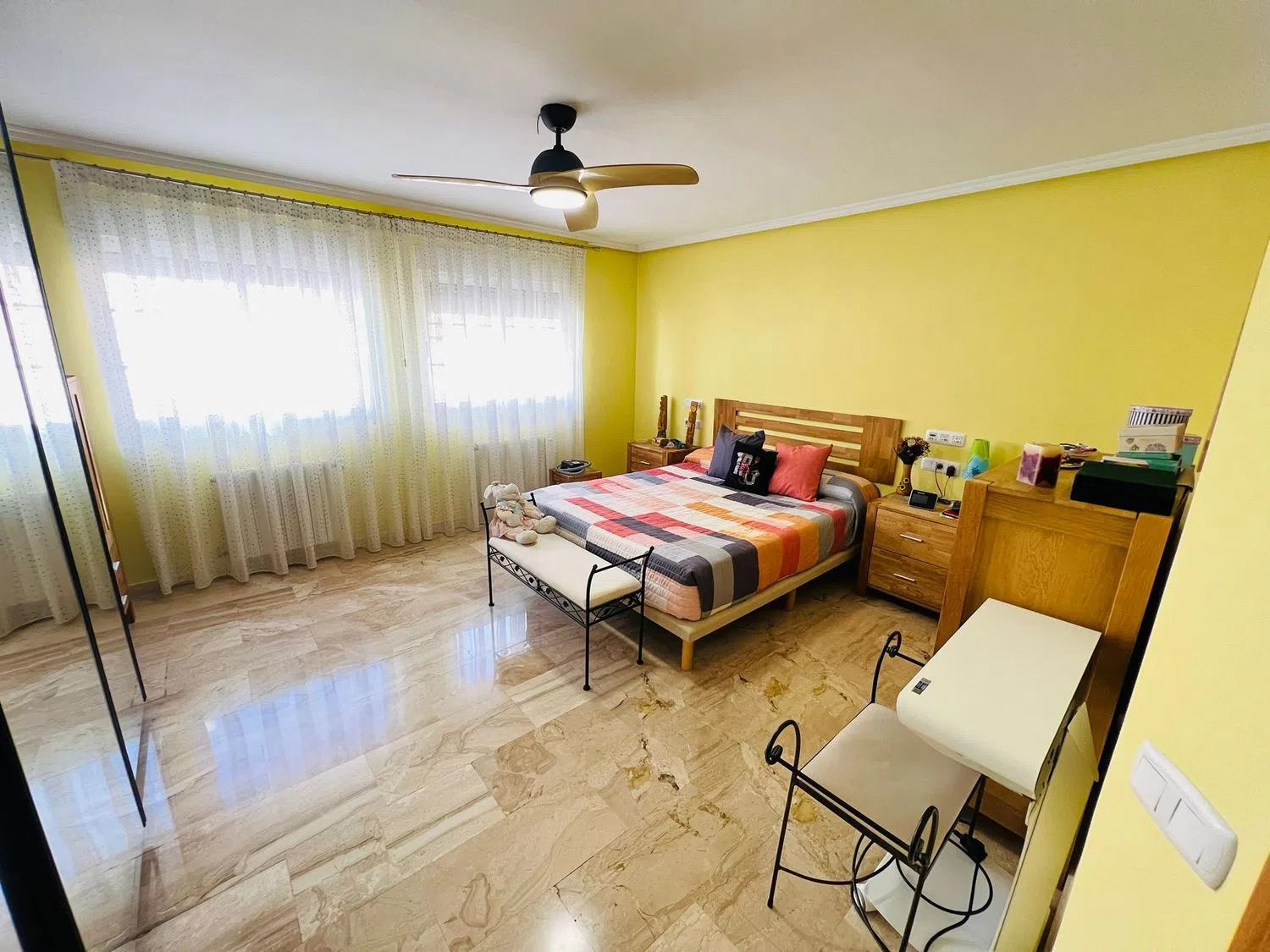 El Mercado Central y el bullicioso centro urbano se encuentran a solo quince minutos a pie, ofreciendo la combinación perfecta de vida metropolitana y un entorno tranquilo. Construida en 2002 con materiales de alta calidad, esta vivienda cuenta con una superficie generosa y bien distribuida, incluyendo seis amplios dormitorios con armarios empotrados para maximizar el espacio.