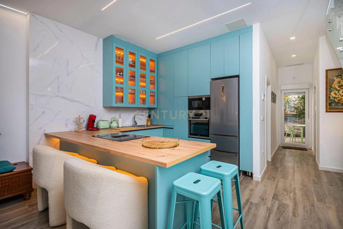 ¿Busca una casa que combine diseño moderno, comodidad y una ubicación inmejorable? Esta espectacular casa unifamiliar de reciente construcción en Alicante lo tiene todo: desde amplios interiores y acabados de alta gama hasta eficiencia energética y una ubicación privilegiada en la ciudad. Entre y sienta la calidez de un luminoso salón de planta abierta con altos techos de 3,10 m. El moderno salón se integra a la perfección con la elegante cocina totalmente equipada, perfecta para la vida familiar y el entretenimiento. En esta planta, también encontrará un dormitorio doble con armarios empotrados y un baño completo, además de acceso a una gran terraza privada con jacuzzi, su oasis personal de relajación. En la primera planta, la suite principal con baño privado y dos dormitorios adicionales con armarios empotrados crean el refugio ideal para toda la familia. La ventilación natural en tres de los baños garantiza un hogar fresco y saludable. En la planta superior, descubra una versátil buhardilla de recreo con techos inclinados de madera y una acogedora chimenea, el lugar perfecto para tardes relajantes. Salga a la terraza de la azotea con barbacoa de gas, ideal para tardes soleadas, reuniones y atardeceres inolvidables. Esta casa no solo es elegante, sino también sostenible, con: •Eficiencia energética A •Calefacción y agua caliente por aerotermia •Aire acondicionado (regulación independiente por planta) •Aislamiento de lana de roca y descalcificador de agua •Cocina de diseño con placa de inducción y campana extractora integrada ¿Y la ubicación? Inmejorable: •A solo 25 minutos a pie de la playa de Alicante •A solo 15 minutos a pie del Mercado Central de Alicante •A 10 minutos a pie del Parque del Tossal, ideal para niños y mascotas •¿Te apetece una excursión cultural? ¡El Museo Arqueológico está solo a solo unos minutos! Además, hay garajes y plazas de aparcamiento disponibles para la compra en la zona, lo que ofrece un extra de comodidad y conveniencia. Con 4 dormitorios, 4 baños, 2 terrazas privadas, jacuzzi y mobiliario incluido, esta casa está lista para que te mudes y empieces a vivir tu sueño mediterráneo hoy mismo. ¡Atractiva opción de alquiler con opción a compra disponible! Esta propiedad ofrece la posibilidad única de un alquiler con opción a compra, lo que le brinda la flexibilidad de mudarse de inmediato mientras avanza hacia la propiedad definitiva. Es la solución perfecta para quienes desean asegurar su hogar soñado en Alicante sin tener que esperar. ¡Contáctanos ahora para concertar una visita y dar el primer paso hacia tu nueva vida en Alicante!