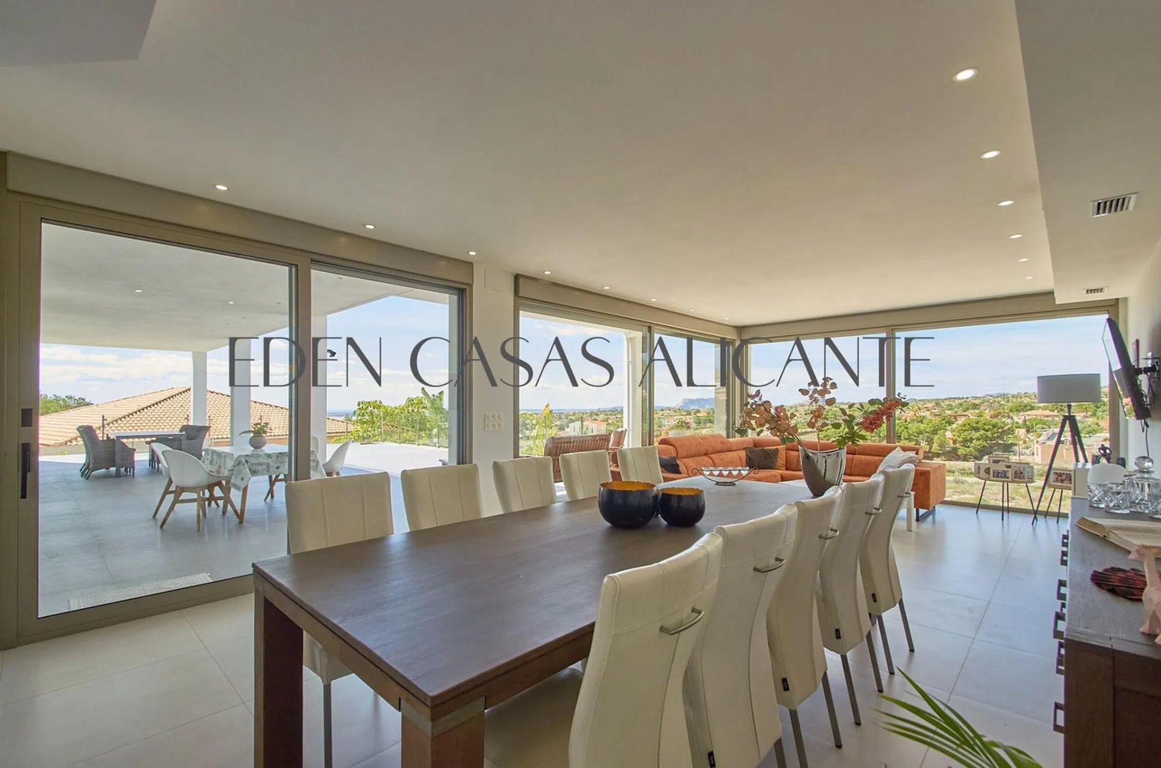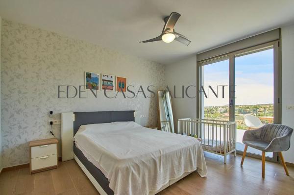 Impresionante villa independiente de 5 dormitorios con vistas panorámicas en Muchamel, Alicante. Descubra la casa de sus sueños en el corazón de la Costa Blanca con esta excepcional villa independiente de 5 dormitorios y 5 baños, idealmente situada en el pintoresco pueblo de Muchamel, Alicante. Ofrece la combinación perfecta de lujo, comodidad y paisajes impresionantes. Esta impresionante propiedad es ideal tanto para vivir en familia como para recibir invitados con estilo. Situada en una generosa parcela, la villa cuenta con un hermoso jardín, una piscina privada y amplias terrazas que ofrecen espectaculares vistas panorámicas de las montañas y la costa circundantes. Tanto si disfruta de un café por la mañana como de una cena al atardecer, las vistas proporcionan un telón de fondo inolvidable. En el interior, la villa cuenta con una distribución luminosa y espaciosa con acabados de alta calidad en todas las estancias. El salón-comedor diáfano está inundado de luz natural, realzada por grandes ventanales y puertas correderas que conectan a la perfección los espacios interiores y exteriores. La moderna cocina, totalmente equipada, cuenta con electrodomésticos de primera calidad y amplio espacio de almacenamiento. Cada uno de los 5 dormitorios es muy amplio y dispone de su propio cuarto de baño, lo que garantiza la privacidad y el confort de todos los huéspedes. Todos los dormitorios tienen armarios empotrados y acceso a la terraza. Otros aspectos destacados son un amplio garaje con espacio para coches y motos. Aire acondicionado empotrado con control individual en cada habitación. Descalcificador de agua que prolonga la vida útil de los electrodomésticos y facilita la limpieza. Un sótano independiente con bar, cine y sala de juegos es el lugar perfecto para relajarse con total privacidad. Se recomienda visitarla, tanto si busca una residencia permanente de lujo como un refugio para las vacaciones, esta villa cumple todos los requisitos. Póngase en contacto con nosotros hoy mismo para programar su visita.