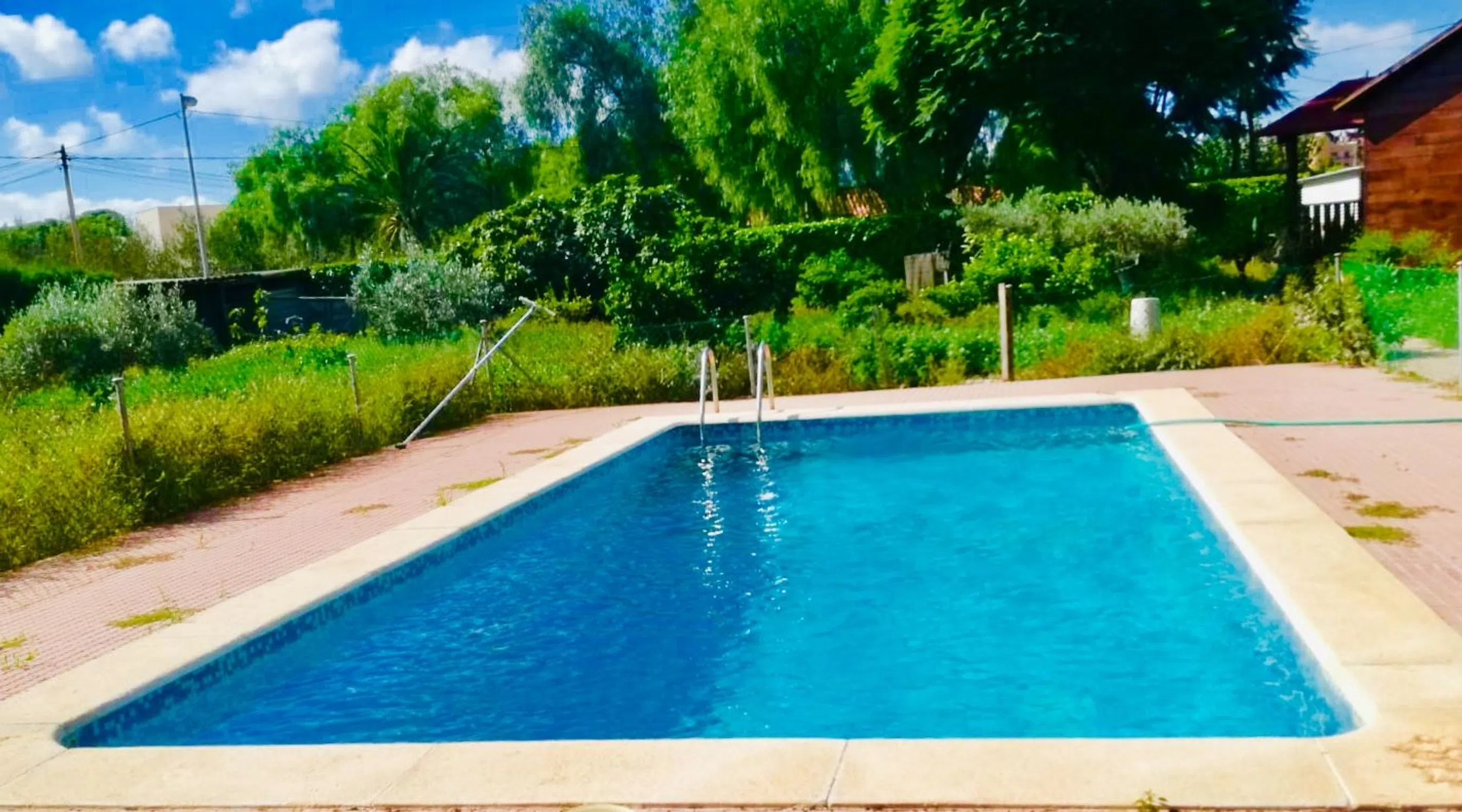 Chalet con jardín y piscina, 300 m2 construídos, 6 habitaciones, 3 baños, plaza de garaje con capacidad para 2 coches, 2 terrazas, barbacoa, a 10 minutos de la Universidad y del Aeropuerto de Alicante. Hay una segunda casa de madera de 80mts en la parcela con entrada independiente por otra calle. Consta de 2 habitaciones, un baño, salón - comedor y cocina americana. También tiene un porche de 17 mts. Dispone de 12 placas solares de 5500kW en total, que proveen de energía limpia y renovable a toda la casa.