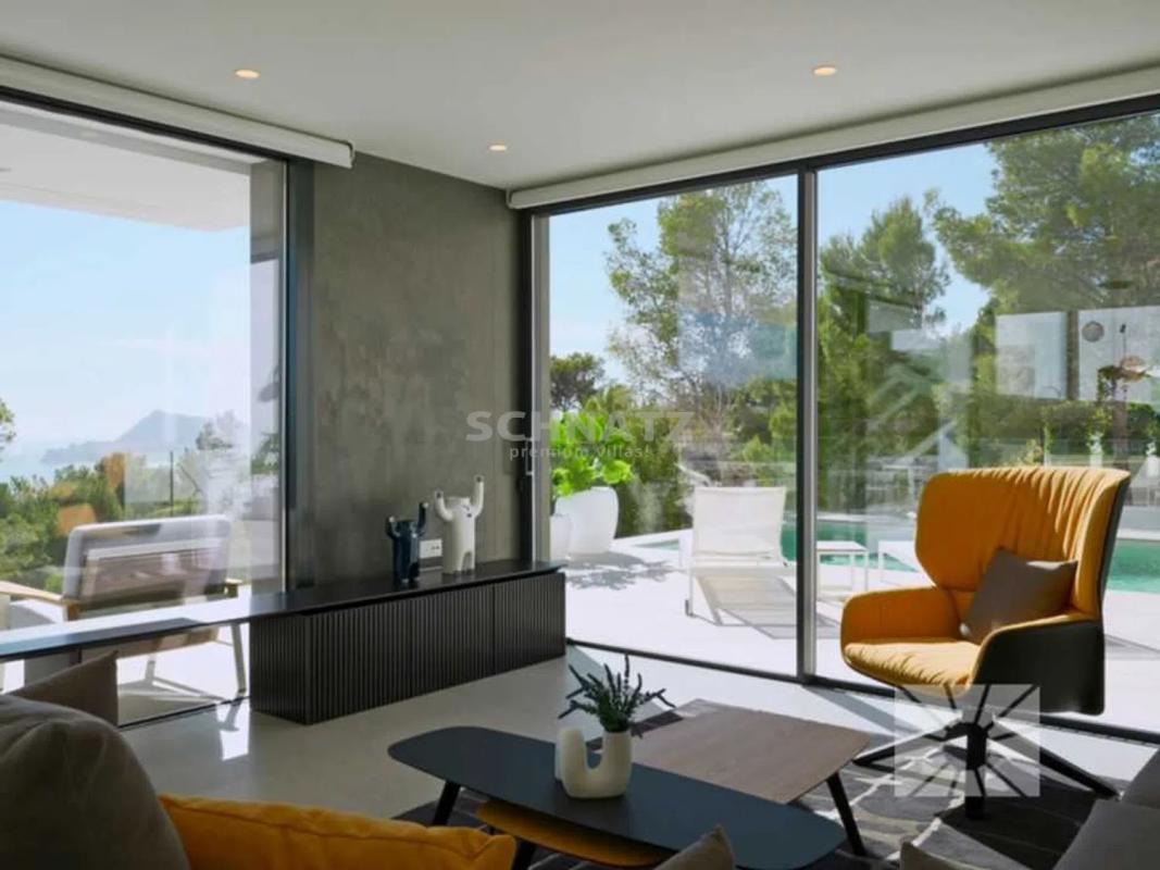 Los espacios al aire libre son protagonistas, con varios porches, un aseo exterior para cortesía, una amplia terraza y una piscina con un lateral infinito que permite disfrutar del mar en todo momento. Esta villa también cuenta con comodidades modernas como ascensor, sistema de seguridad, suelo radiante, aire acondicionado, iluminación técnica y hermosas zonas ajardinadas. Diseño contemporáneo, equipamiento de alta calidad y vistas impresionantes al mar le esperan en esta ubicación privilegiada de la Costa Blanca Norte.