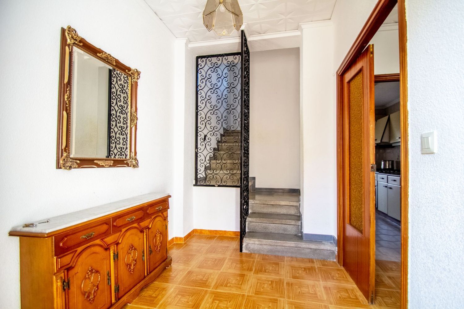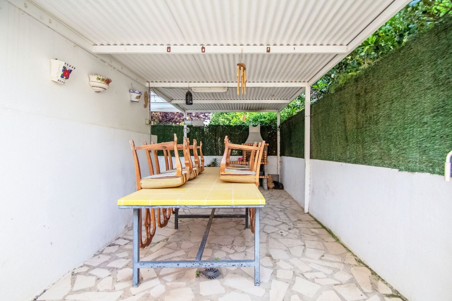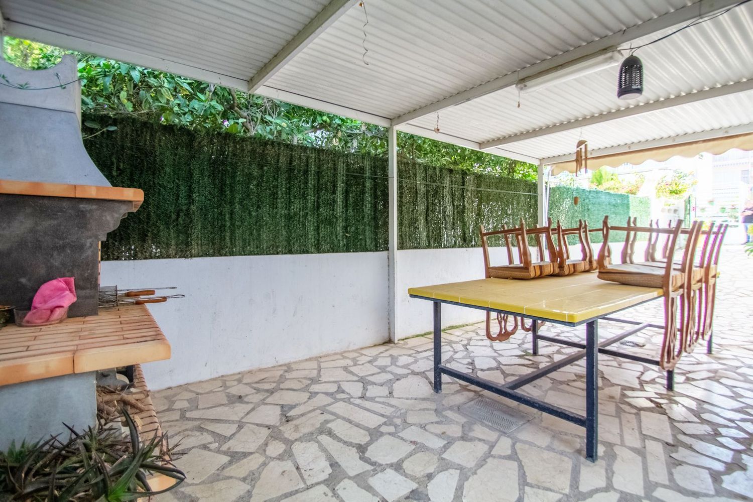 En el nivel semisótano, se encuentra un apartamento de invitados que cuenta con su propio salón, cocina, un dormitorio y un baño, proporcionando privacidad y confort. La propiedad también cuenta con un pequeño terreno privado, donde se ha habilitado una zona de barbacoa, perfecta para reuniones familiares o con amigos, así como espacio para estacionamiento. Su ubicación permite disfrutar de la cercanía a diversas comodidades y servicios en la zona.
