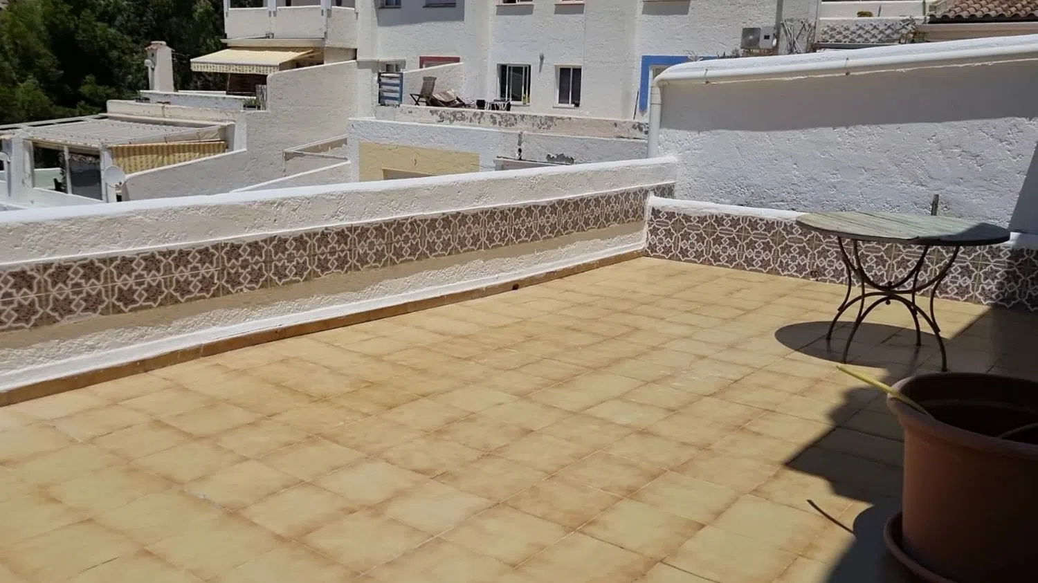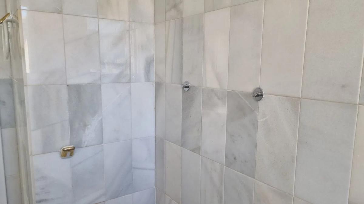 Bungalow de una planta con terraza de 60 metros, dos dormitorios, cocina independiente, baño de mármol, espectacular piscina pegasa al mar, portero físico, entrada directa desde la calle.