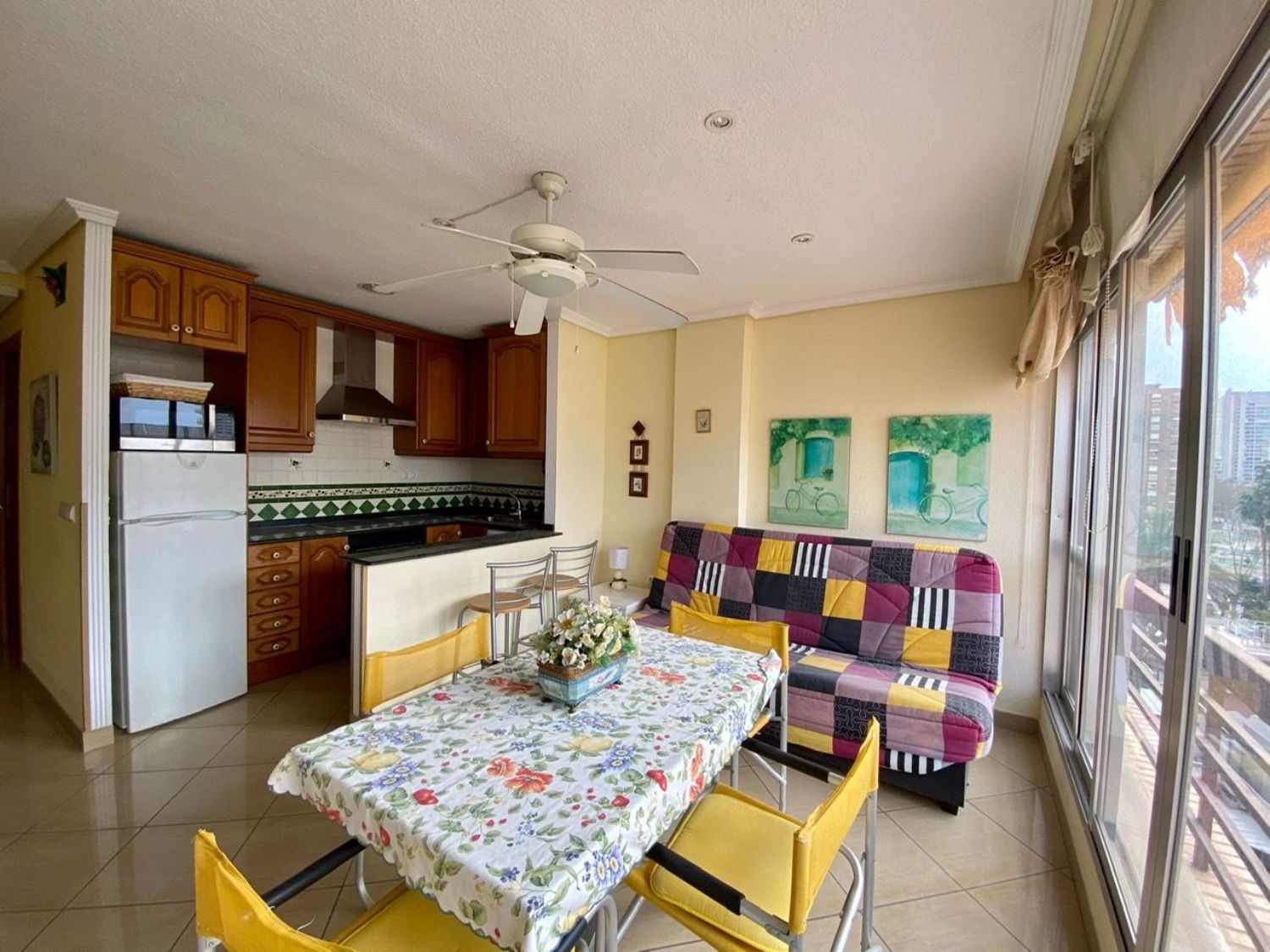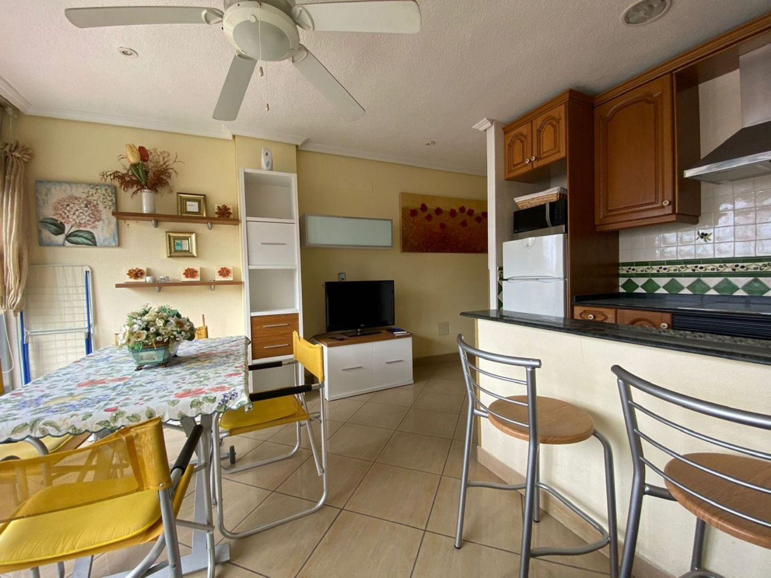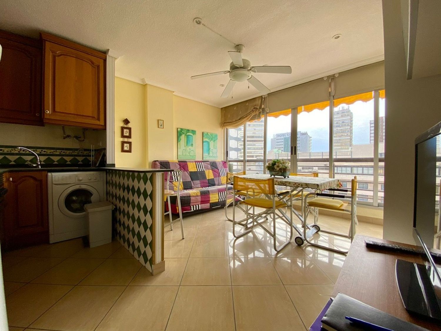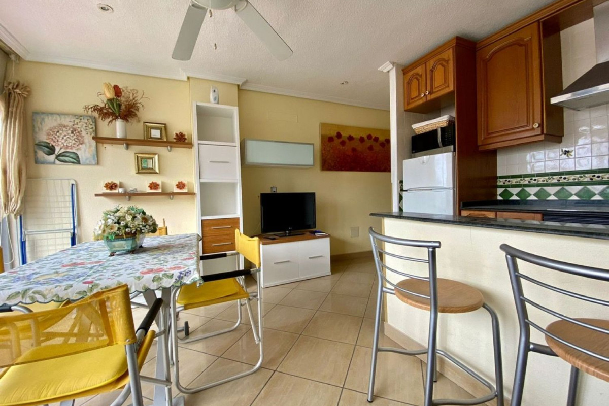 ¡Oportunidad de inversión excepcional! Se ofrece a la venta un estudio recién reformado en la tercera línea de la playa, a pocos pasos de un conocido hotel de la zona. Este acogedor inmueble dispone de un dormitorio doble con armario empotrado y un amplio baño con plato de ducha. La cocina americana se integra perfectamente con el salón comedor, creando un ambiente cálido y funcional.