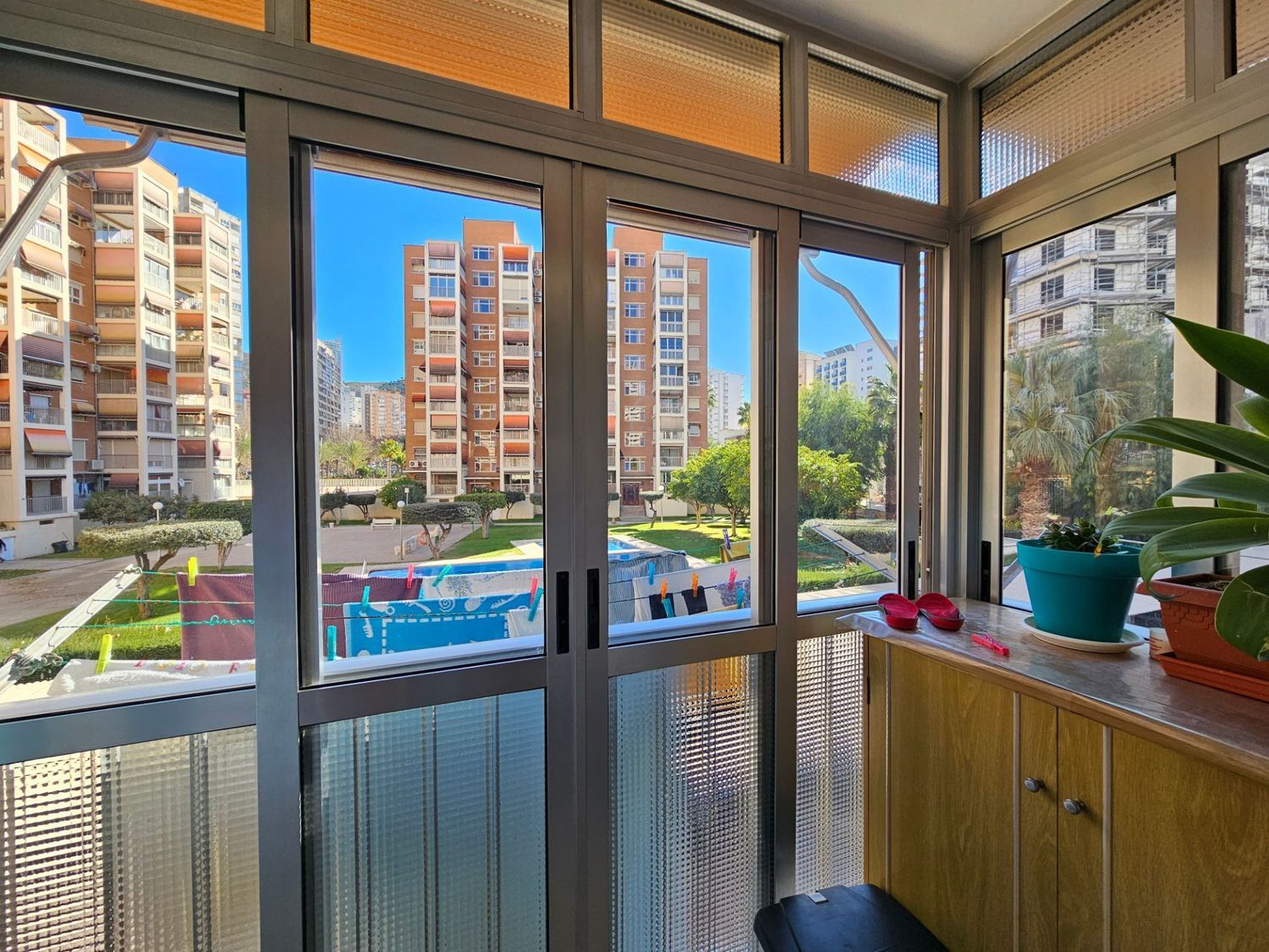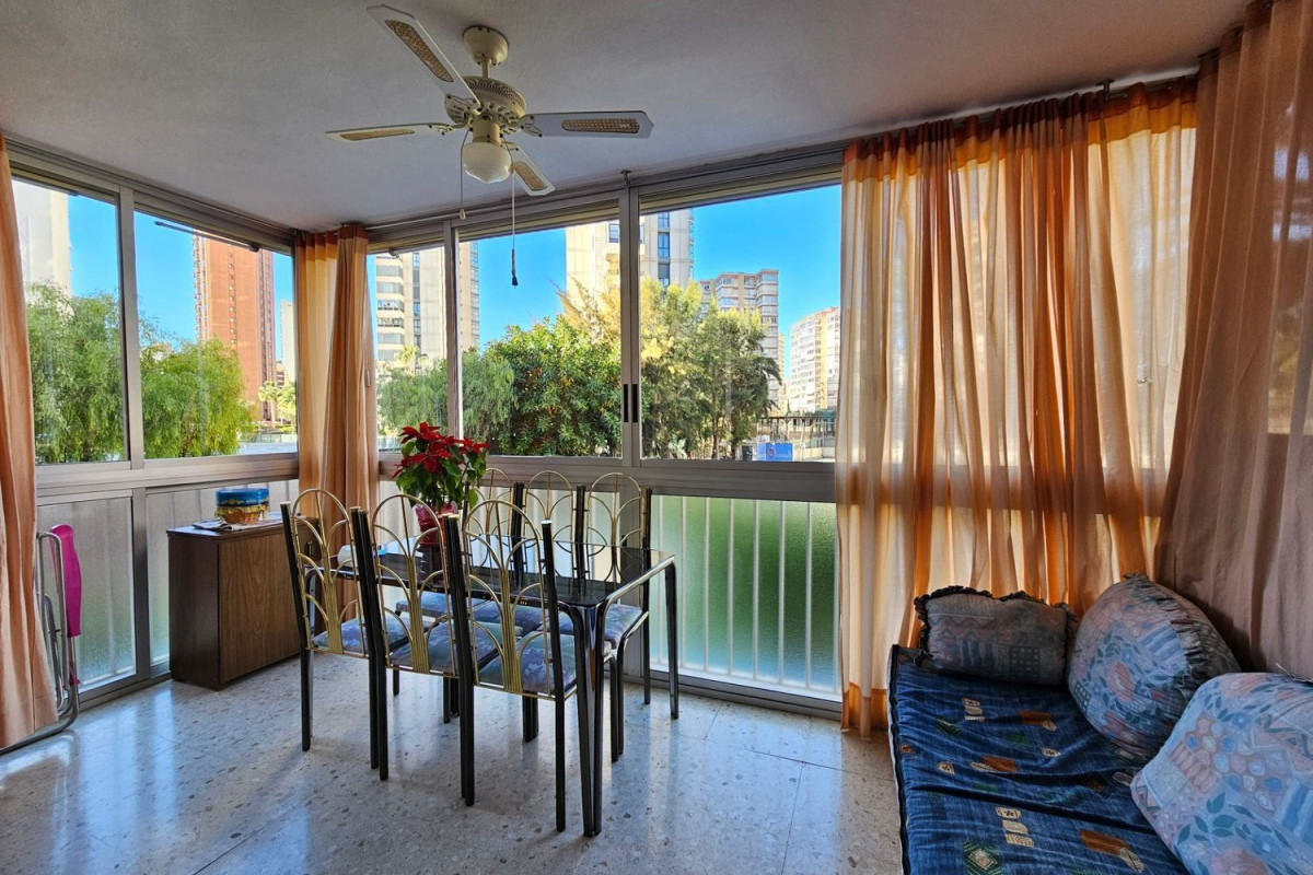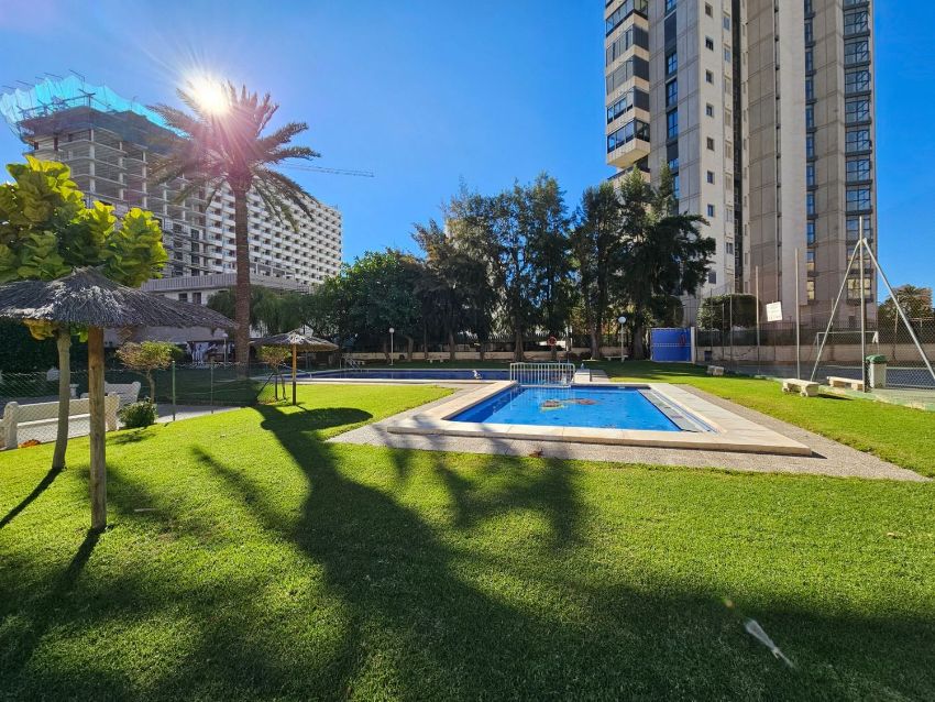Precioso apartamento en la primera planta, ubicado a pocos pasos de una amplia variedad de tiendas, restaurantes y la conocida playa de Levante. El interior del apartamento destaca por su amplio y luminoso salón, que conecta con el comedor a través de grandes ventanales, ofreciendo una hermosa vista hacia el jardín comunitario y la piscina.