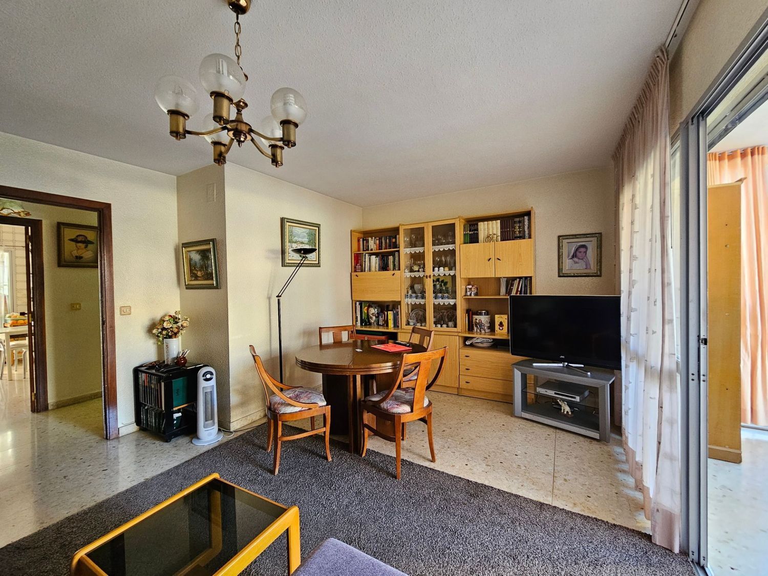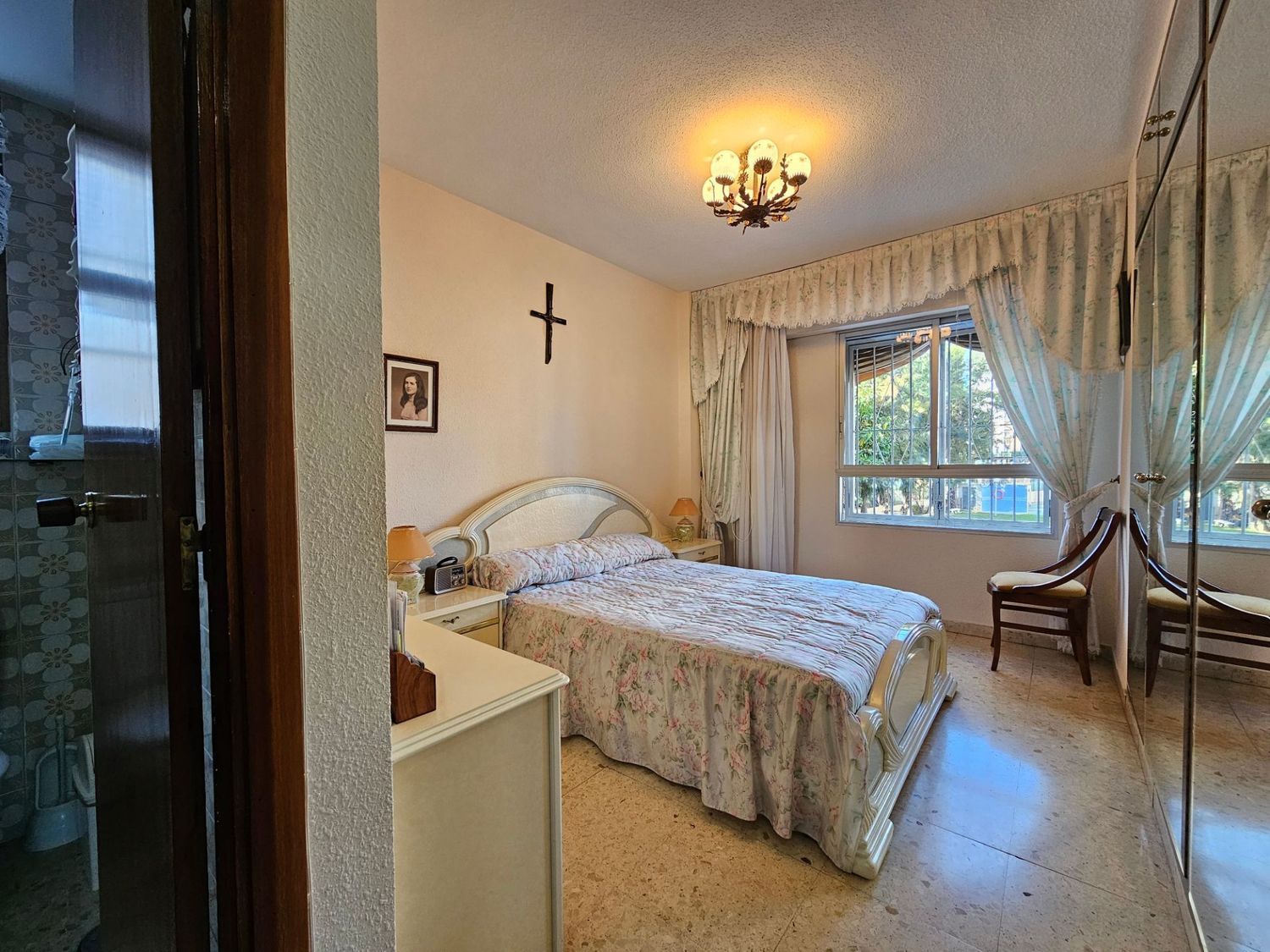 A través del pasillo, se accede a la cocina independiente, equipada con electrodomésticos empotrados, y a un práctico lavadero que alberga la caldera y la lavadora. Este espacioso apartamento cuenta con tres dormitorios dobles, incluyendo un dormitorio principal que dispone de armarios empotrados, así como dos baños equipados con bañera y ducha.