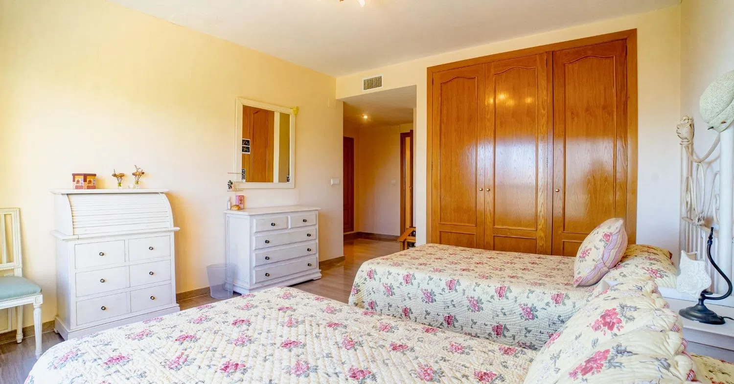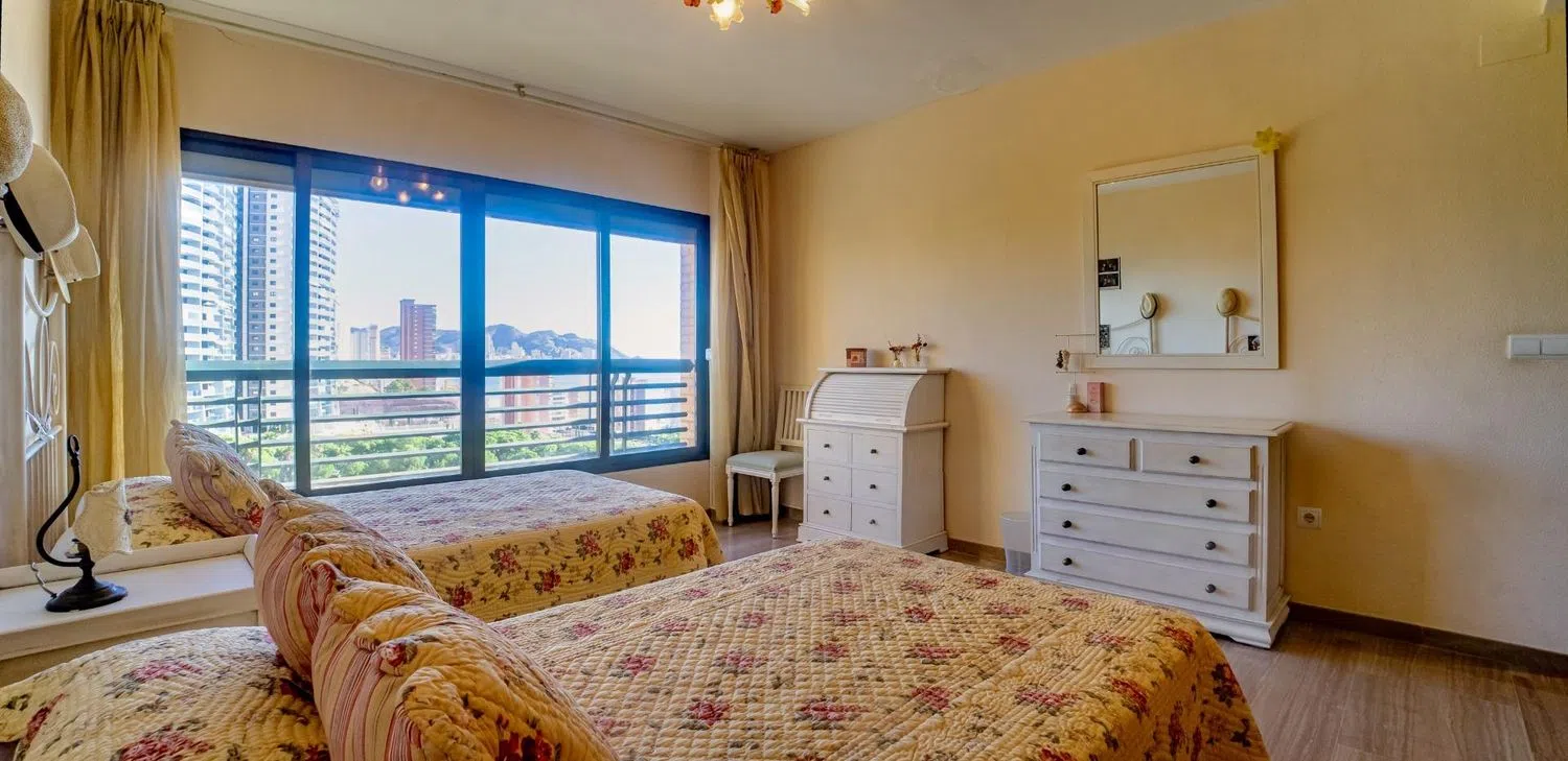 Este impresionante ático de 290 m² destaca por su amplitud y distribución única. Todas las estancias son notablemente espaciosas, ofreciendo un hogar cómodo y elegante. Al entrar, te recibe un amplio vestíbulo que conduce a un salón luminoso y versátil. Este espacio se puede dividir en diferentes zonas: comedor, área de televisión y un rincón de relax. Desde el salón, accedes a un balcón techado con vistas al mar, ideal para disfrutar del clima mediterráneo. Junto al salón, se encuentra una cocina independiente totalmente equipada y una lavandería con generoso espacio de almacenamiento. La vivienda se complementa con 3 dormitorios de gran tamaño, 3 baños (2 en suite) y un aseo. El dormitorio principal incluye un vestidor, baño privado y grandes ventanales que ofrecen vistas espectaculares al mar. Desde una terraza abierta hay una escalera que conecta con el solárium privado. Este espacio exterior es perfecto para disfrutar de momentos al aire libre, con vistas impresionantes al mar, la montaña y el skyline de Benidorm. La vivienda cuenta con aire acondicionado frío/calor, dividido en dos zonas, y ha sido construida con materiales de alta calidad. Su diseño optimiza la entrada de luz natural, creando un ambiente cálido y acogedor. Además, el precio incluye 2 plazas de garaje cerradas. El edificio, con solo 5 plantas, alberga una piscina comunitaria y el coste del agua está incluido en los gastos de comunidad. Este ático ocupa toda la última planta, garantizando privacidad y exclusividad. Ubicado en una zona tranquila y céntrica, a solo un paso de la playa y rodeado de todos los servicios necesarios, este ático es la opción ideal para quienes buscan un hogar familiar con estilo y confort.