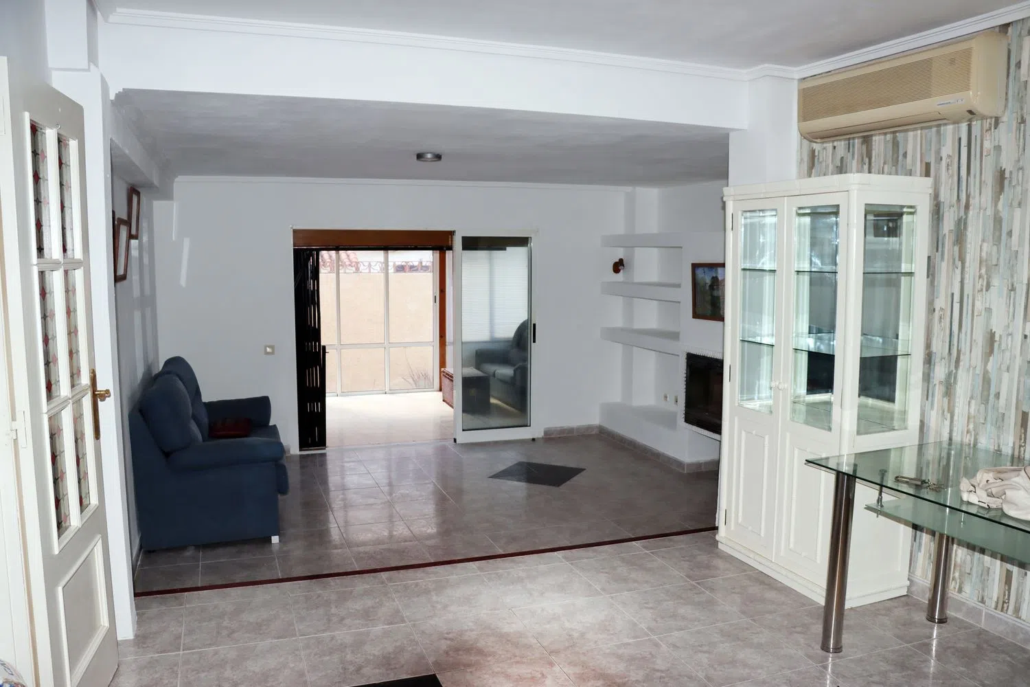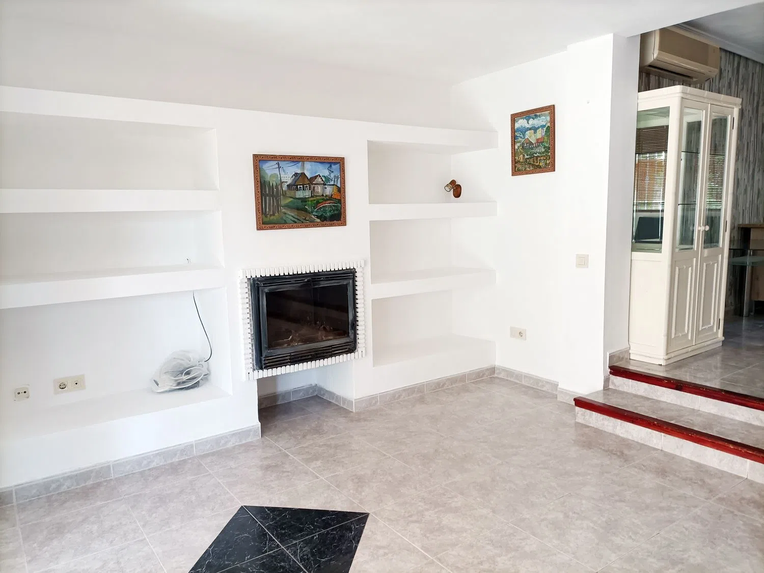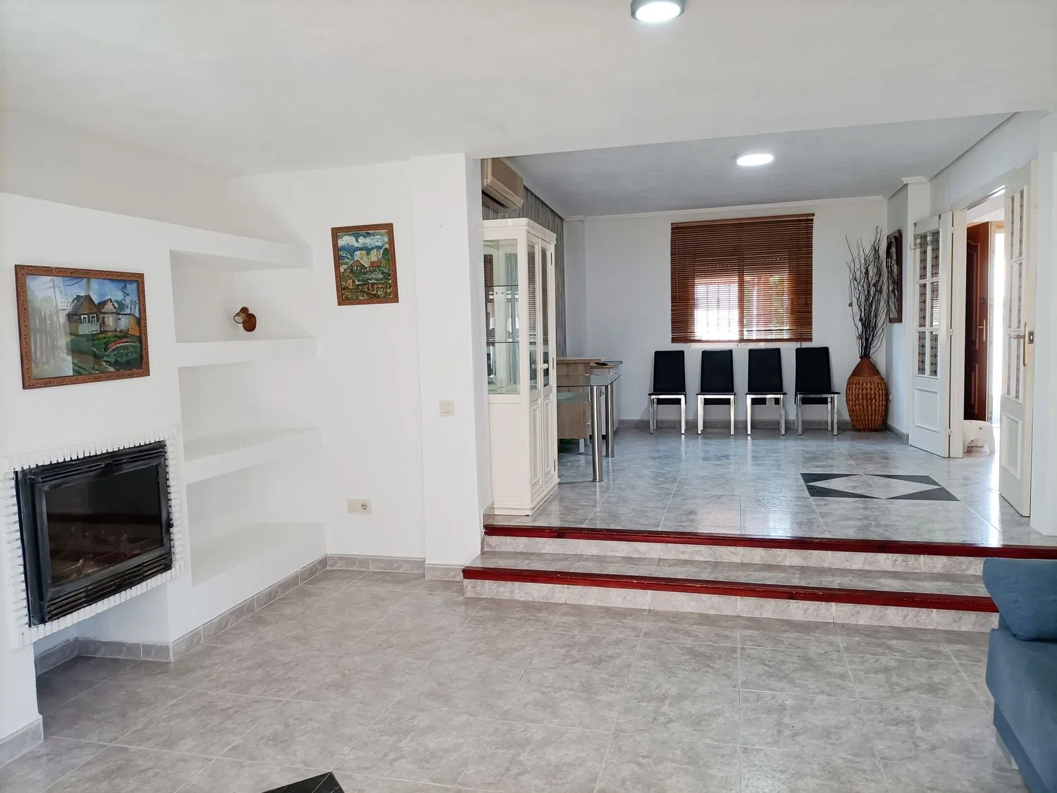 En la planta principal, serás recibido por un amplio recibidor con armario, un baño de cortesía y una cocina completamente equipada que incluye lavadora. El comedor cuenta con aire acondicionado frío/calor y, al lado, el salón, que tiene chimenea, se abre a una terraza acristalada que te conecta directamente con el patio y la zona de tendedero. Además, encontrarás una cómoda habitación de invitados.