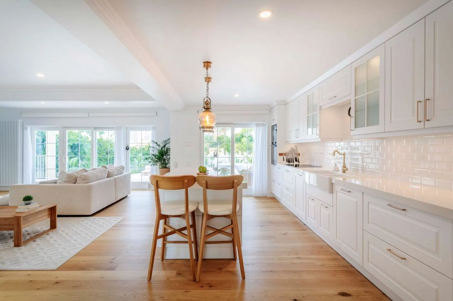 La luz natural inunda cada rincón, y las vistas panorámicas desde la terraza sin acristalar son perfectas para relajarse y absorber el agradable clima mediterráneo. La cocina americana semiamueblada se conecta de manera fluida a un acogedor salón, creando un ambiente ideal para reuniones y momentos en familia.