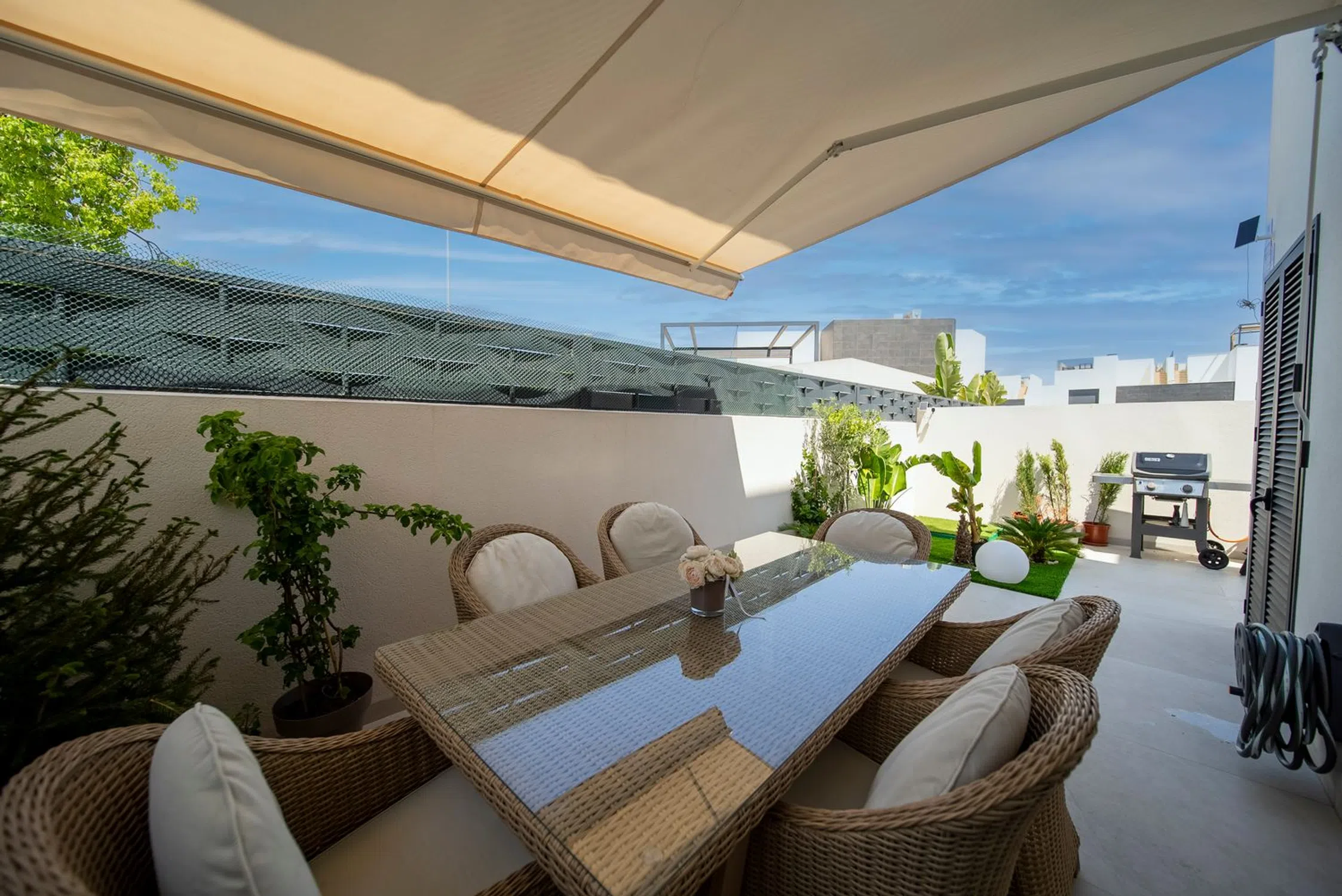 Benijofar moderna Villa independiente de 2 dormitorios y 2 baños en venta con piscina privada, aparcamiento seguro fuera de la carretera y solárium en la azotea cerca del pueblo y de los servicios. >>>>>>>>>>>>>>>>>>>>>>>>>>> Moderna Villa Llave en Mano en Benijófar – Nueva Construcción 2024. ¿Listo para disfrutar del estilo de vida mediterráneo sin complicaciones? Esta casa nueva, completamente amueblada en Benijófar, está diseñada para una vida sin esfuerzo, ya sea que se esté mudando, invirtiendo o simplemente escapando del frío. Terminada en 2024, la villa combina una arquitectura limpia y moderna con una comodidad práctica. Incluye todos los muebles, electrodomésticos, aire acondicionado, sistema de alarma, cámaras y sensores de movimiento, listo para que se mude de inmediato. Aspectos destacados de la propiedad: Superficie construida: 110 m² Parcela privada de 150 m² con plaza de aparcamiento, jardín, zona de barbacoa y terraza totalmente amueblada 2 dormitorios con armarios empotrados 2 elegantes baños, uno con ducha a ras de suelo Cocina y comedor de planta abierta con vistas a la piscina Terraza con toldo retráctil y acceso a un solárium privado en la azotea ¿Por qué Benijófar? Benijófar es un pueblo español encantador y en crecimiento en la Costa Blanca Sur, a solo 10 minutos de las playas de Guardamar y a 30 minutos del aeropuerto de Alicante. Conocido por su sol durante todo el año, su comunidad internacional y su ambiente relajado de pueblo, es la combinación perfecta de la España auténtica y la comodidad moderna. Ya sea que esté buscando una casa permanente, una escapada de vacaciones o una inversión de alquiler, esta propiedad cumple todos los requisitos.