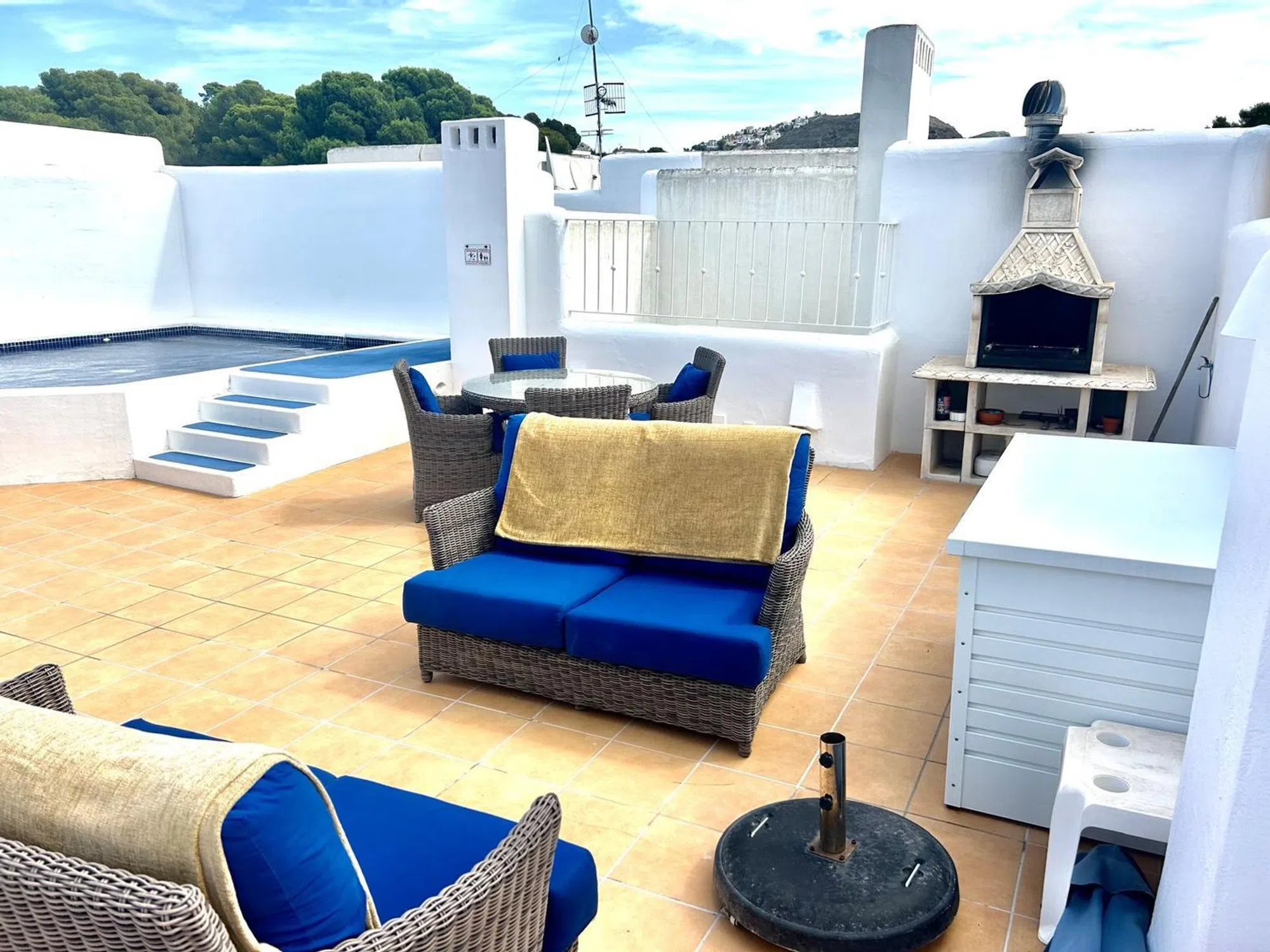 Descubra, de la mano de Nomada Properties, este excepcional ático espacioso de 2 dormitorios y 2 baños, completo con un solárium privado, piscina propia y barbacoa, en una de las zonas más codiciadas de Moraira. Perfectamente ubicado a tan solo unos pasos del vibrante centro de Moraira y su elegante puerto deportivo, este apartamento ofrece lo mejor de la vida mediterránea: comodidad, lujo y vistas impresionantes. Orientado al sur maximizando más si cabe la luz natural y el sol durante todo el año, es ideal tanto para una residencia permanente como para inversiones en alquiler vacacional de alto rendimiento. Desde la entrada principal se abre paso a un amplio salóncomedor diáfano, inundado de luz gracias a sus grandes ventanales con vistas panorámicas al sur hacia el icónico Peñón de Ifach en Calpe y la majestuosa sierra de Bernia. Grandes puertas correderas de cristal que conectan directamente con un balcón generoso, perfecto para comidas al aire libre con una mesa y sillas para toda la familia, creando un espacio ideal para relajarse y disfrutar del clima privilegiado de la Costa Blanca. El salón presume de una elegante chimenea que añade calidez y encanto en las noches más frescas, convirtiéndolo en el corazón acogedor del hogar. Desde el comedor, acceda a una cocina independiente totalmente equipada con muebles de alta calidad, electrodomésticos modernos (incluyendo horno, vitrocerámica, frigorífico y microondas) y un práctico lavadero adjunto con lavadora y secadora para mayor comodidad diaria. Un pasillo interior desde el salón lleva al baño familiar completo (con ducha, lavabo y WC), y a los dos dormitorios dobles luminosos. El dormitorio principal en suite incluye baño privado y vistas directas a la piscina y los jardines comunitarios bien mantenidos, ofreciendo privacidad y serenidad. Desde el balcón del salón, unas escaleras privadas ascienden al espacioso solárium en la azotea, un oasis privado diseñado para el entretenimiento y el relax, con piscina privada para refrescarse en exclusiva, rodeada de espacio suficiente para tumbonas, sofás exteriores y zonas de chillout. Barbacoa integrada para barbacoas inolvidables con amigos y familia. Amplia zona de estar con vistas espectaculares al sur: el mar Mediterráneo, Calpe y el horizonte infinito, perfectas para atardeceres mágicos. Trastero práctico para almacenar equipo de playa, muebles o herramientas, manteniendo todo organizado. La propiedad se completa con un garaje subterráneo doble (espacio para dos vehículos) y ascensor directo desde el aparcamiento a todas las plantas, asegurando accesibilidad total y seguridad. Además de la excepcional piscina comunitaria y resto de zonas comunes, la urbanización cuenta con jardines comunitarios impecables y un entorno tranquilo, sin renunciar a la proximidad a playas, restaurantes, supermercados y todos los servicios de Moraira. Esta es una magnífica oportunidad imperdible para adquirir un ático de lujo con piscina privada y solárium exclusivo, en una ubicación privilegiada que combina paz y accesibilidad. Ideal para familias, parejas o inversores: Residencia permanente: Disfrute de un estilo de vida relajado con todo al alcance. Alquiler vacacional: Alto potencial de rentabilidad gracias a la demanda turística en Moraira, con retornos atractivos durante todo el año. ¡No deje pasar esta joya en la Costa Blanca! Contacte con nuestra agencia inmobiliaria hoy mismo para una visita exclusiva y haga realidad su sueño mediterráneo.