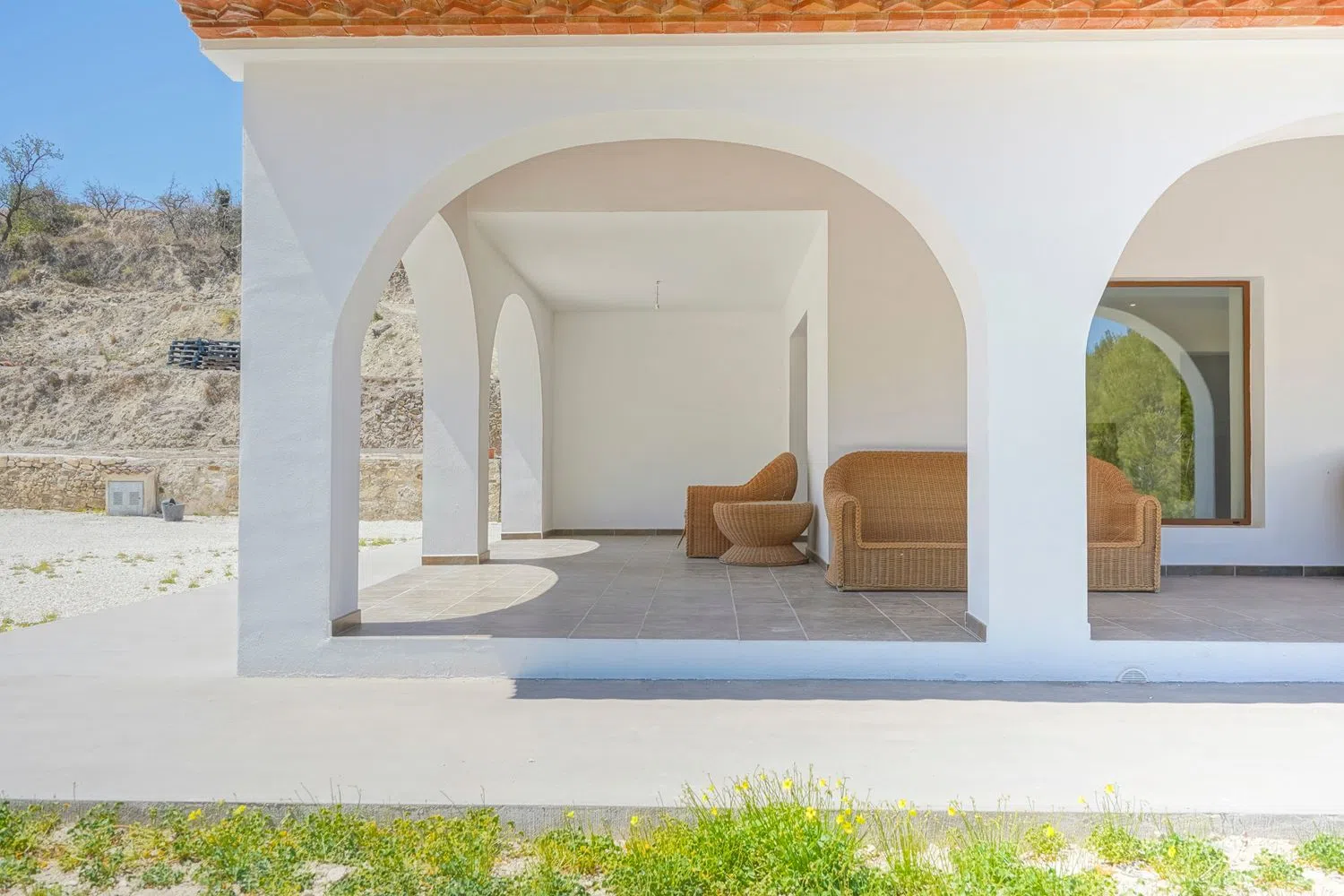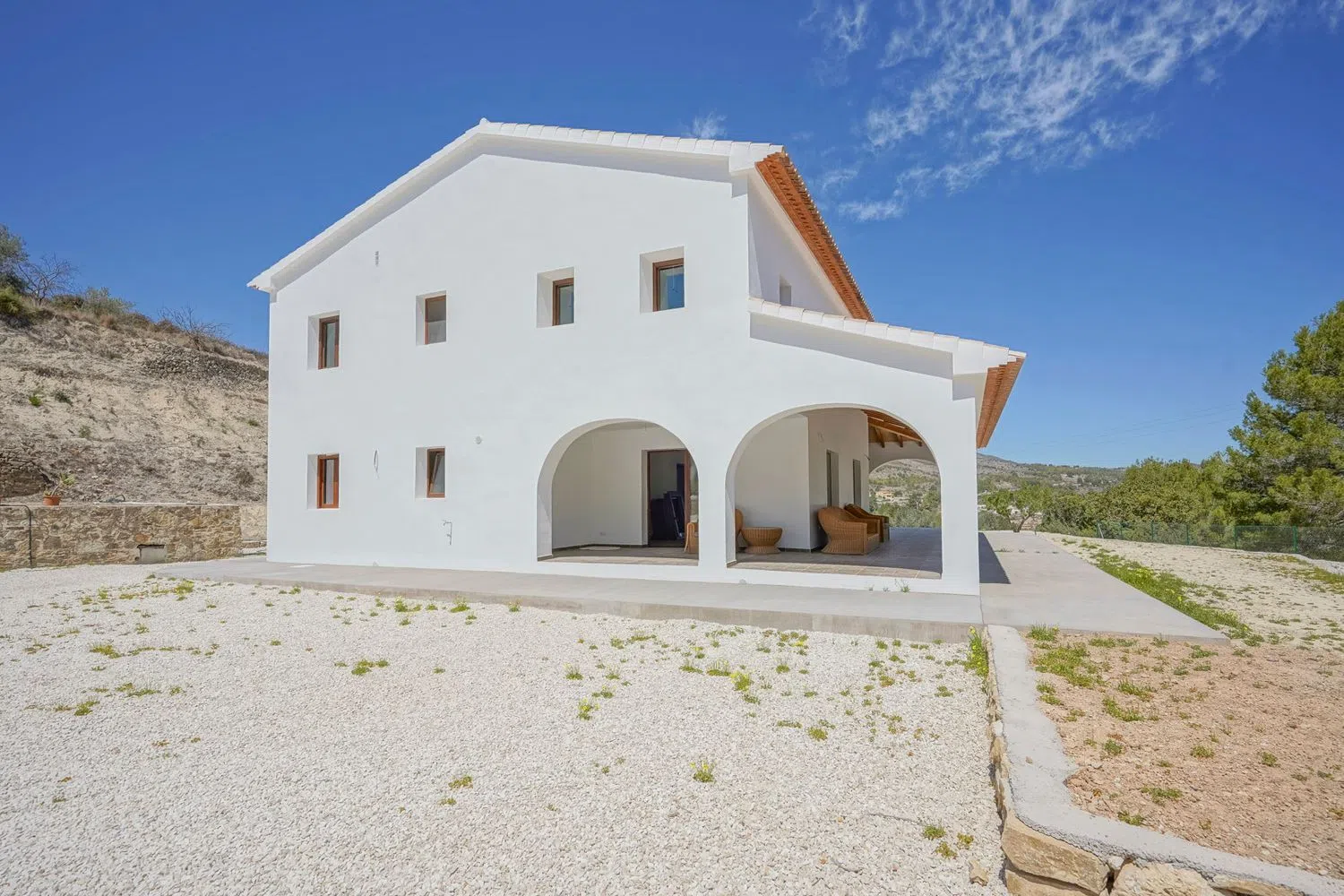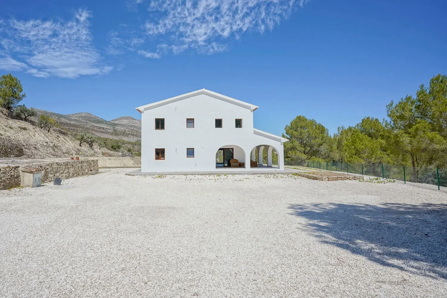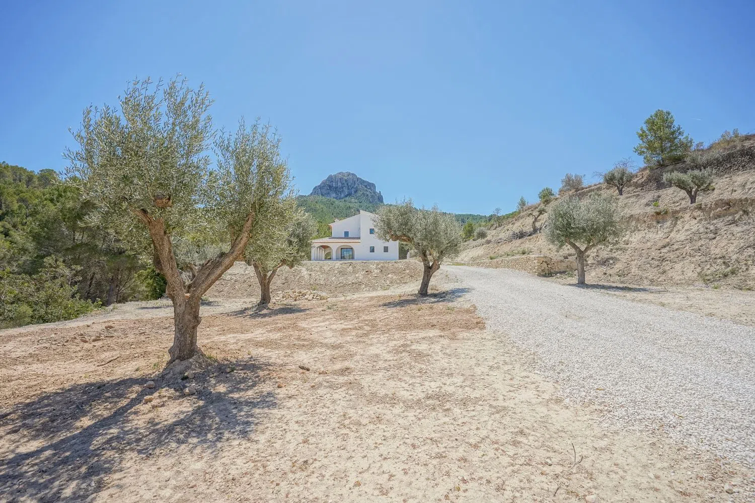 Esta hermosa propiedad se encuentra en una ubicación privilegiada, a solo 10 minutos de los centros de Calpe y Benissa. La construcción tiene una superficie total de 333 m², enclavada en una amplia parcela aterrazada de 11.000 m². Al acceder a través de una entrada automática, un amplio camino rodeado de olivos conduce hasta la villa.