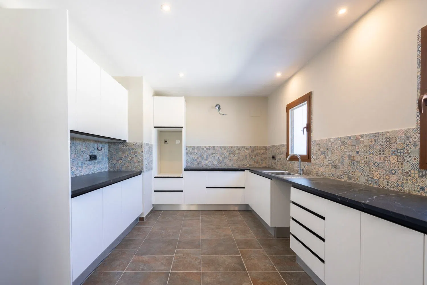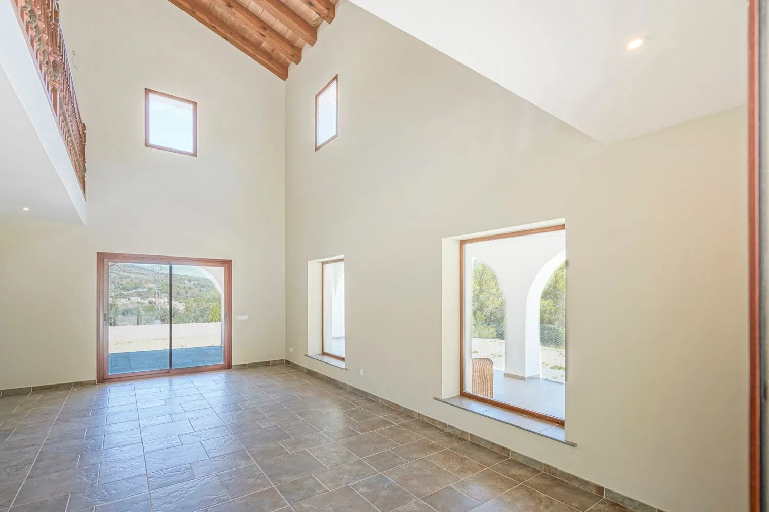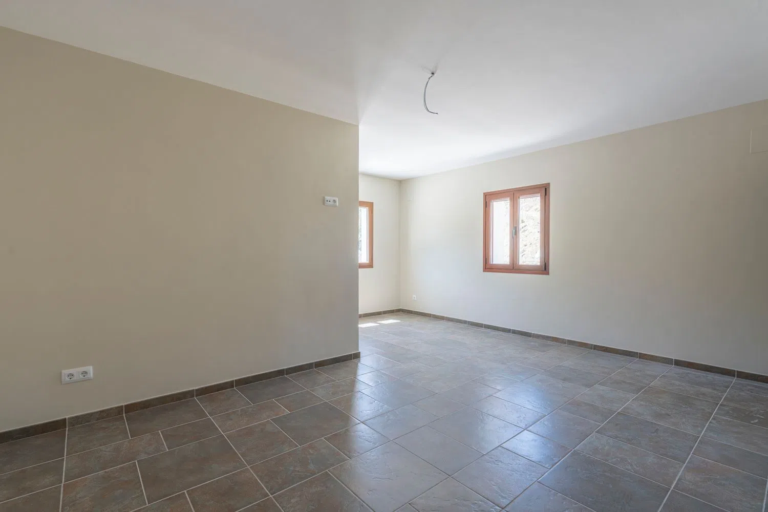 En el nivel superior, se ubica un dormitorio principal que incluye baño en suite y un pequeño vestidor, además de otro dormitorio también con baño en suite. El diseño del cuarto de baño permite la opción de dividirlo en dos, y existe la posibilidad de añadir un dormitorio adicional. Los amplios ventanales que adornan la fachada aseguran un flujo de luz natural excepcional en todas las estancias de la casa.