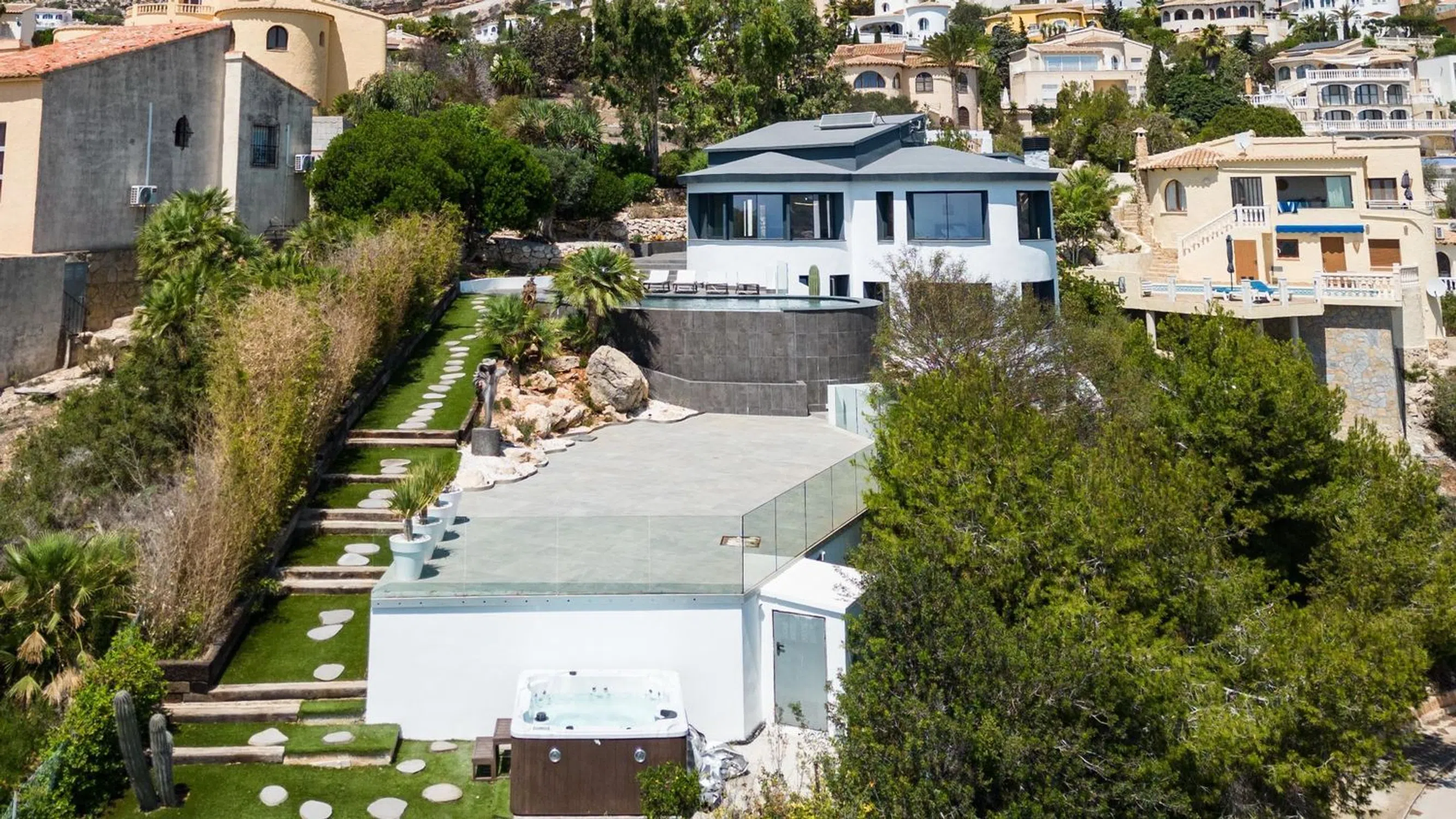 Estamos encantados de presentar Villa Camilia, una propiedad totalmente renovada que ofrece privacidad y unas impresionantes vistas al mar Mediterráneo. Situada en la prestigiosa urbanización Cumbre del Sol, a sólo 5 minutos del colegio internacional Lady Elisabeth, esta villa de 163 m² en una parcela de 1.113 m² ofrece un lujoso estilo de vida costero. Enclavada entre Jávea y Moraira, en Benitachell, goza de vistas panorámicas ininterrumpidas, lo que la convierte en un refugio de serenidad. La villa incluye una espaciosa habitación extra debajo, que puede convertirse en un apartamento independiente. Distribuida en dos plantas, Villa Camilia cuenta con tres dormitorios dobles, un dormitorio individual, tres elegantes cuartos de baño y un trastero. La moderna cocina, con una gran isla central, se abre al luminoso salón-comedor, ideal para reuniones con amigos y familiares. La suite principal cuenta con una bañera de pie libre, un vestidor y un baño en suite, con impresionantes vistas de la piscina y el mar. El exterior de Villa Camilia es un verdadero santuario de relajación. Una piscina infinita privada, con entrada estilo playa, da a una amplia terraza de 80 m², perfecta para tomar el sol o disfrutar de comidas al aire libre. Toda la zona está enmarcada por un hermoso jardín mediterráneo, fácil de mantener gracias a un sistema de riego por goteo. Un jacuzzi exterior y una sauna de infrarrojos, situados en una sala independiente con acceso directo a la terraza, añaden un toque de lujo. Desde todos los rincones de este apacible refugio, las vistas panorámicas de los majestuosos acantilados de la Costa Blanca le dejarán sin aliento. [IW].