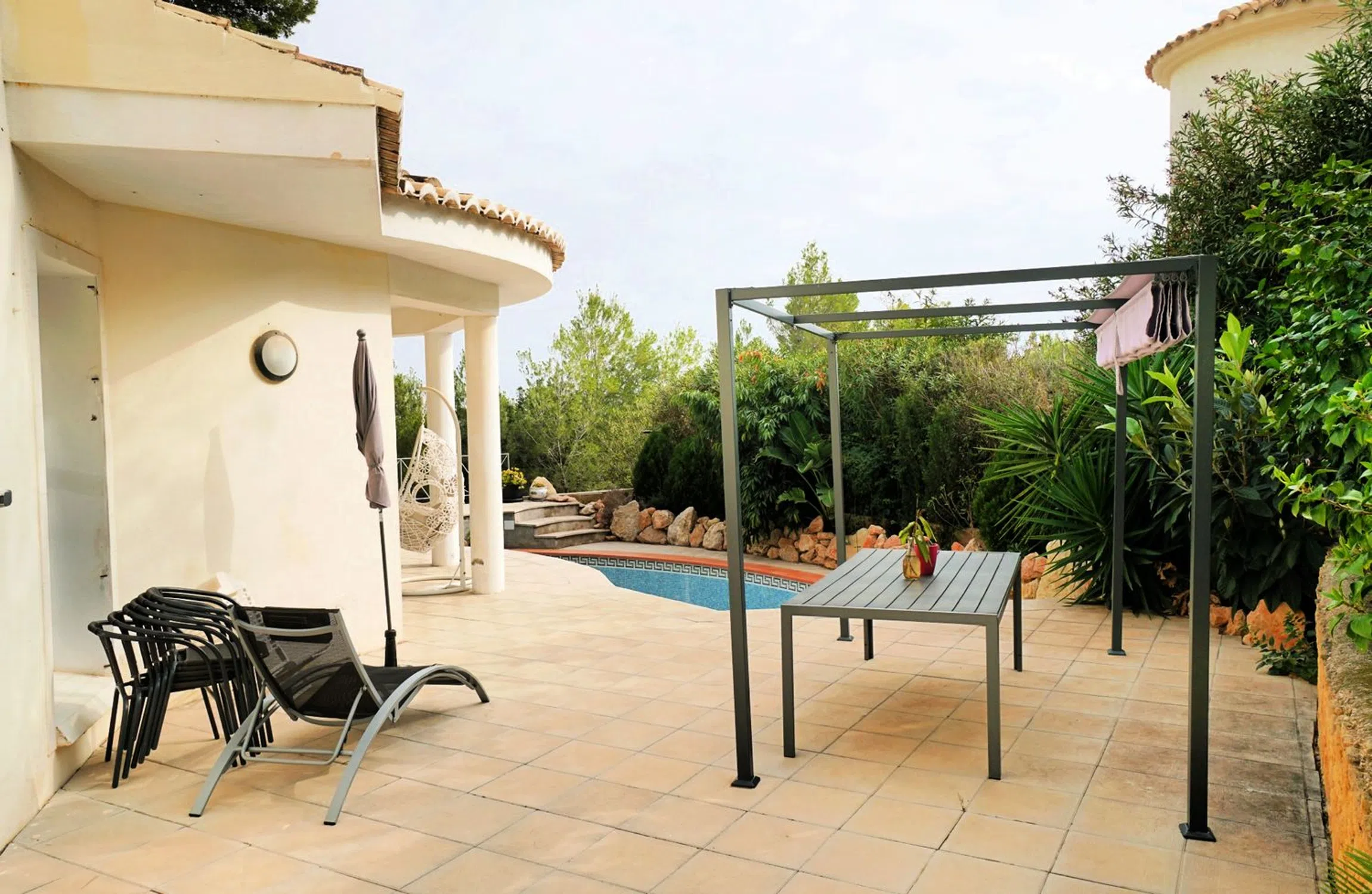 Esta vivienda única forma parte de una tranquila urbanización rodeada de vegetación y rodeada por la magnífica e impresionante cordillera de la Sierra de Bernia. Desde aquí se encuentra a 8 minutos en coche del encantador pueblo de Altea La Vieja, con varios restaurantes excelentes, supermercados, farmacias, una panadería, una tienda de productos naturales, etc. También está cerca del famoso campo de golf de Altea y de colegios de gran prestigio. A solo 12 minutos en coche de las playas de Altea y su amplia oferta de restaurantes, bares, tiendas y mucho más. Esta sólida vivienda de diseño único ofrece 215 m2 de superficie construida en una parcela totalmente vallada y privada de 1.090 m2 con una bonita entrada con puerta automática y orientación sureste. El vestíbulo de entrada nos conduce a la sala de estar abierta con comedor y chimenea, un baño de invitados, una cocina independiente con acceso a las terrazas que rodean la piscina, un dormitorio con baño en suite y un lavadero independiente. La planta superior cuenta con un vestíbulo muy luminoso y acceso a una terraza privada con vistas al mar. Además, hay dos amplios dormitorios con dos baños, uno de ellos en suite, y una oficina. Toda la vivienda dispone de aire acondicionado (frío/calor), calefacción por suelo radiante mediante 14 paneles solares (para una máxima eficiencia energética y un mínimo coste energético mensual), armarios empotrados, ventanas de doble acristalamiento con perfiles de aluminio, etc. En la parte delantera de la villa hay un amplio aparcamiento para varios coches con vistas al mar.