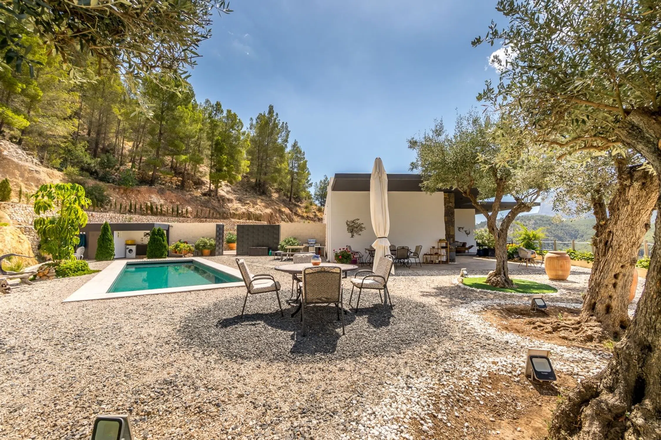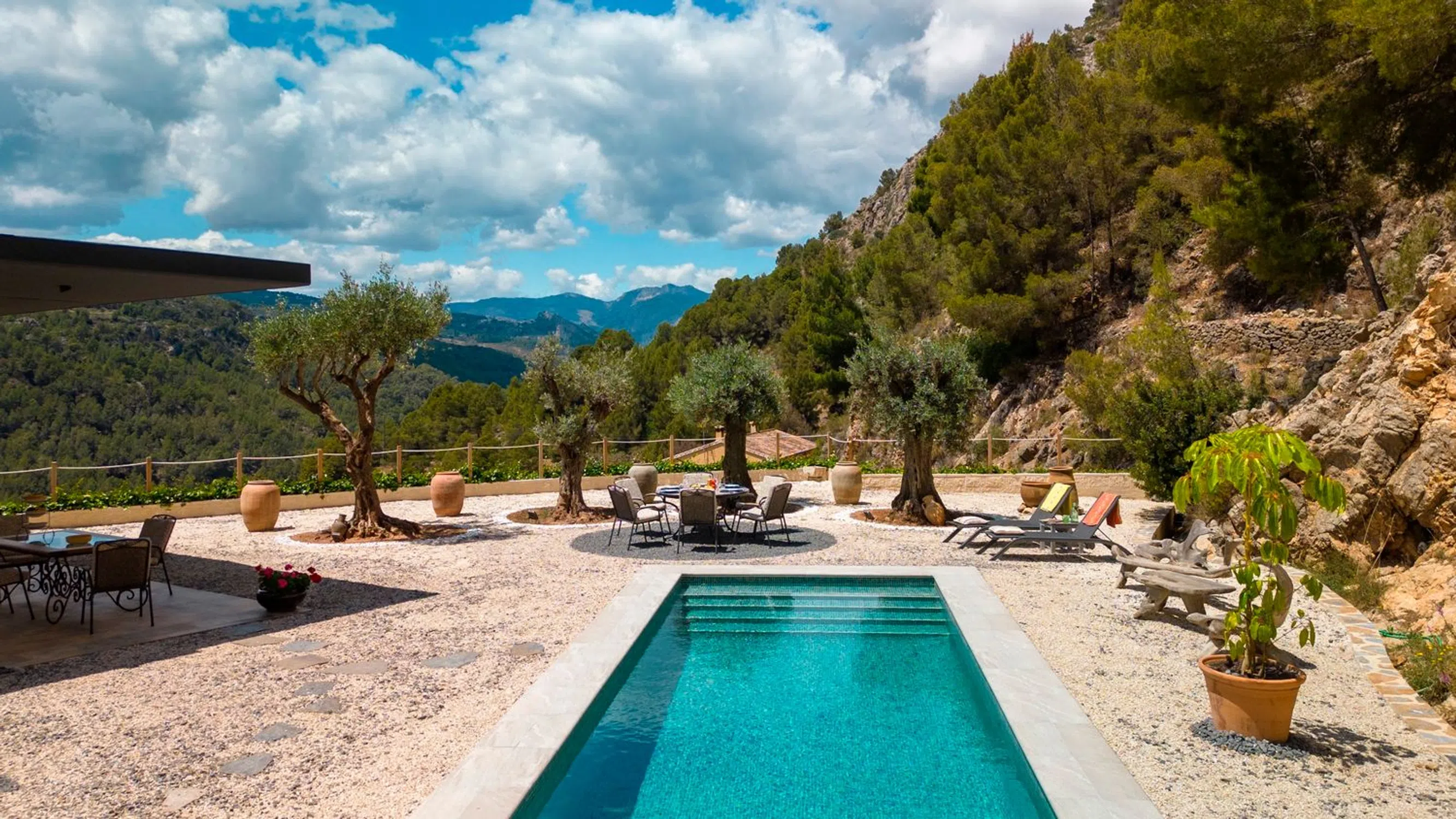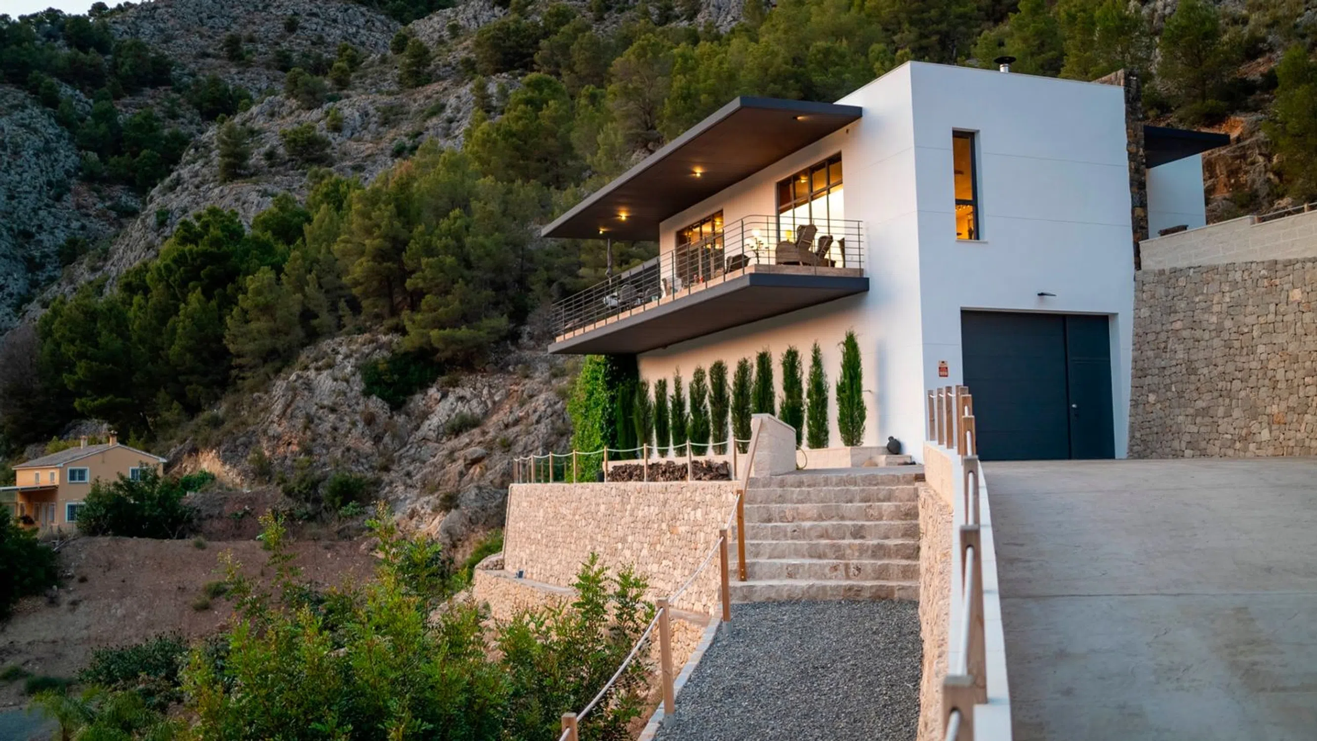 Chalet excepcional en venta en el entorno natural protegido del Valle de Guadalest, un enclave único que regala impresionantes panorámicas a las montañas y al bosque. Aunque administrativamente pertenece a Callosa, en el límite con Guadalest, su silueta destaca en el pintoresco valle. No es un detalle menor, sino un matiz que realza su grandeza. Como bien afirma su propietario: “Quien busca una casa como esta, busca superlativos, no alternativas”.La propiedad se alza sobre una parcela de 13.319 m² cuidadosamente diseñada para un mantenimiento sencillo, con muros de piedra, iluminación ambiental, zonas ajardinadas, árboles frutales y espacios pavimentados. El acceso es directo desde la carretera principal que conecta Callosa con Guadalest, a la entrada del pueblo, mediante una puerta automática compartida con un único vecino. Se trata de una vía tranquila, utilizada casi en exclusiva por residentes, ciclistas o amantes de la conducción panorámica.En el nivel inferior encontramos un amplio garaje de 220 m² con techos de 3,9 m de altura, donde están instalados el sistema de filtrado de aguas residuales y el moderno equipamiento solar con baterías. Hay capacidad para 4 a 6 vehículos y, además, el espacio ofrece múltiples posibilidades: podría transformarse en un apartamento independiente con 1 a 3 dormitorios adicionales, baños y cocina, ya que todas las preinstalaciones están preparadas. La pared suroeste está lista para abrir grandes ventanales y convertirlo en un nivel habitable con vistas espectaculares, incluso con la opción de instalar escalera o ascensor que comunique directamente con la planta principal.La planta principal, con una superficie de 220 m², alberga 3 dormitorios y 2 baños. Destacan las terrazas perimetrales, especialmente la terraza frontal de 3,3 m de vuelo, una auténtica obra de ingeniería desde donde se contemplan montañas infinitas en una paleta de verdes, hasta alcanzar el icónico pueblo de Guadalest. Un escenario que sorprende de día y embruja de noche, en un entorno de silencio absoluto, ideal para quienes buscan desconexión total sin renunciar a la cercanía de los servicios cotidianos.La orientación suroeste, protegida por la montaña a sus espaldas, asegura un microclima estable y libre de los fuertes vientos que suelen afectar a otras viviendas en altura.En la parcela, rodeada de privacidad absoluta, se encuentra una piscina de agua salada de 30 m², equipada con cubierta y sistema electrolítico de calefacción, lo que permite disfrutar de agua templada durante gran parte del año. Junto a ella, una cocina exterior cubierta, lavadero y ducha al aire libre. En la parte trasera hay espacio para más de 10 vehículos, además de diferentes rincones, sombreados o soleados, que invitan a relajarse y disfrutar de las vistas únicas del valle.En definitiva, esta propiedad no solo es una vivienda: es un refugio exclusivo en plena naturaleza, pensado para quienes buscan lo extraordinario.