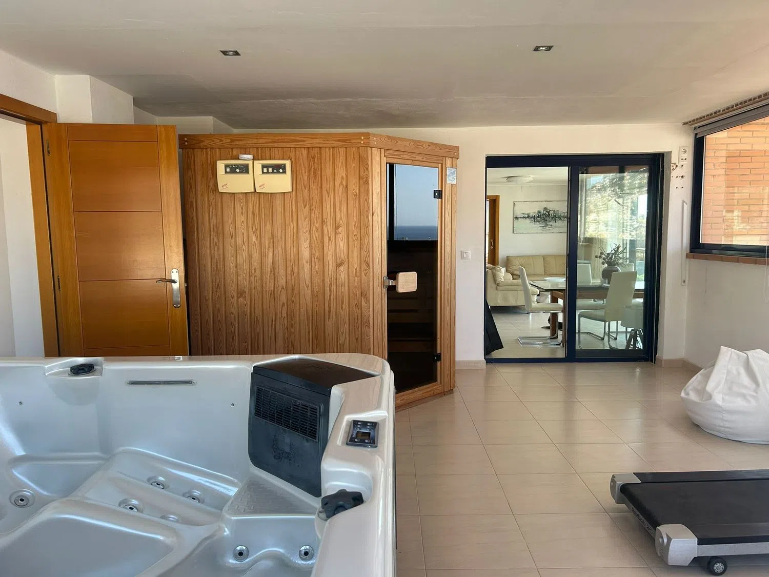 La planta superior te sorprenderá con un amplio salón comedor de 50 m² que brinda vistas panorámicas al mar, acompañado de una cocina moderna de 20 m², ideal para disfrutar de momentos gastronómicos. También encontrarás un dormitorio adicional, una práctica habitación vestidor y un baño. Además, incluye una exclusiva área de relajación, completamente equipada con jacuzzi, sauna y gimnasio, desde la cual accederás a una amplia terraza con impresionantes vistas de 360º, contemplando la belleza del entorno natural.