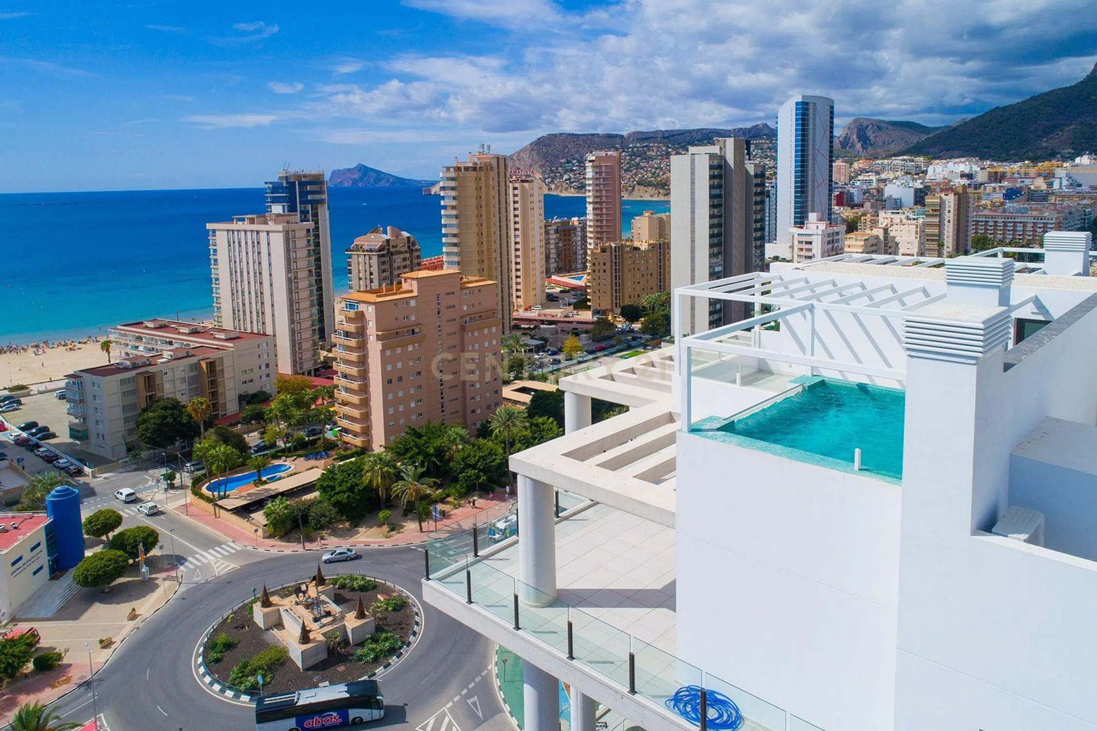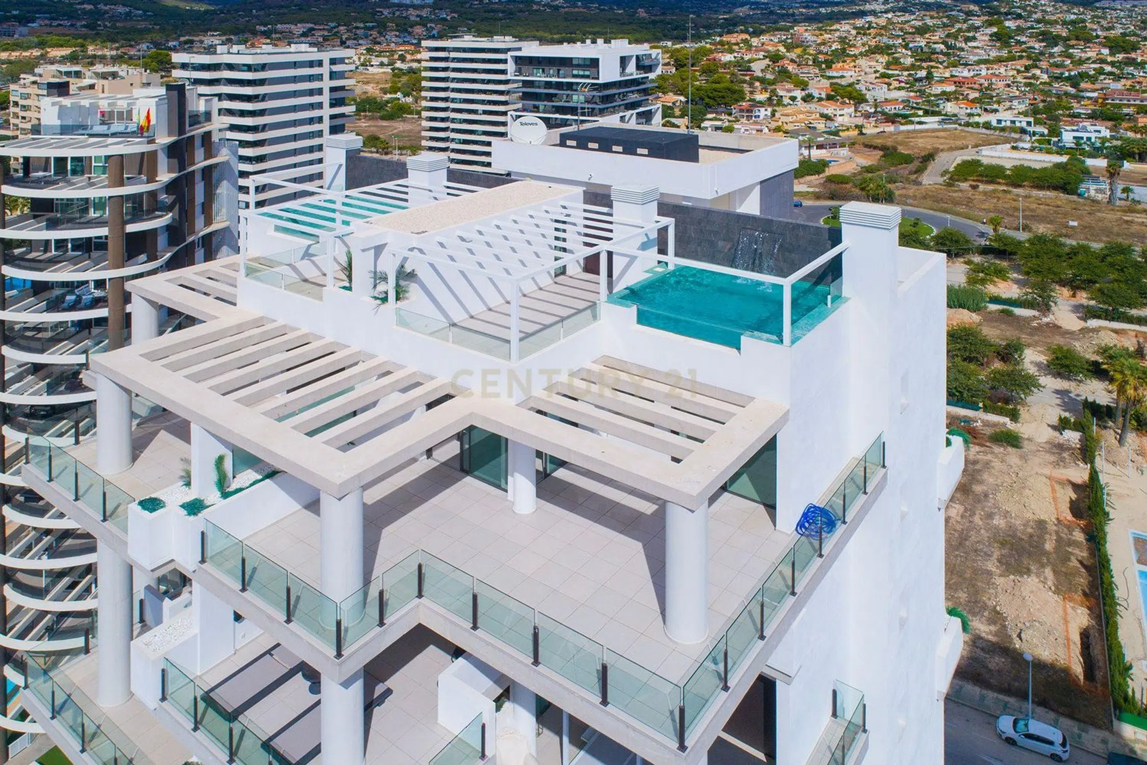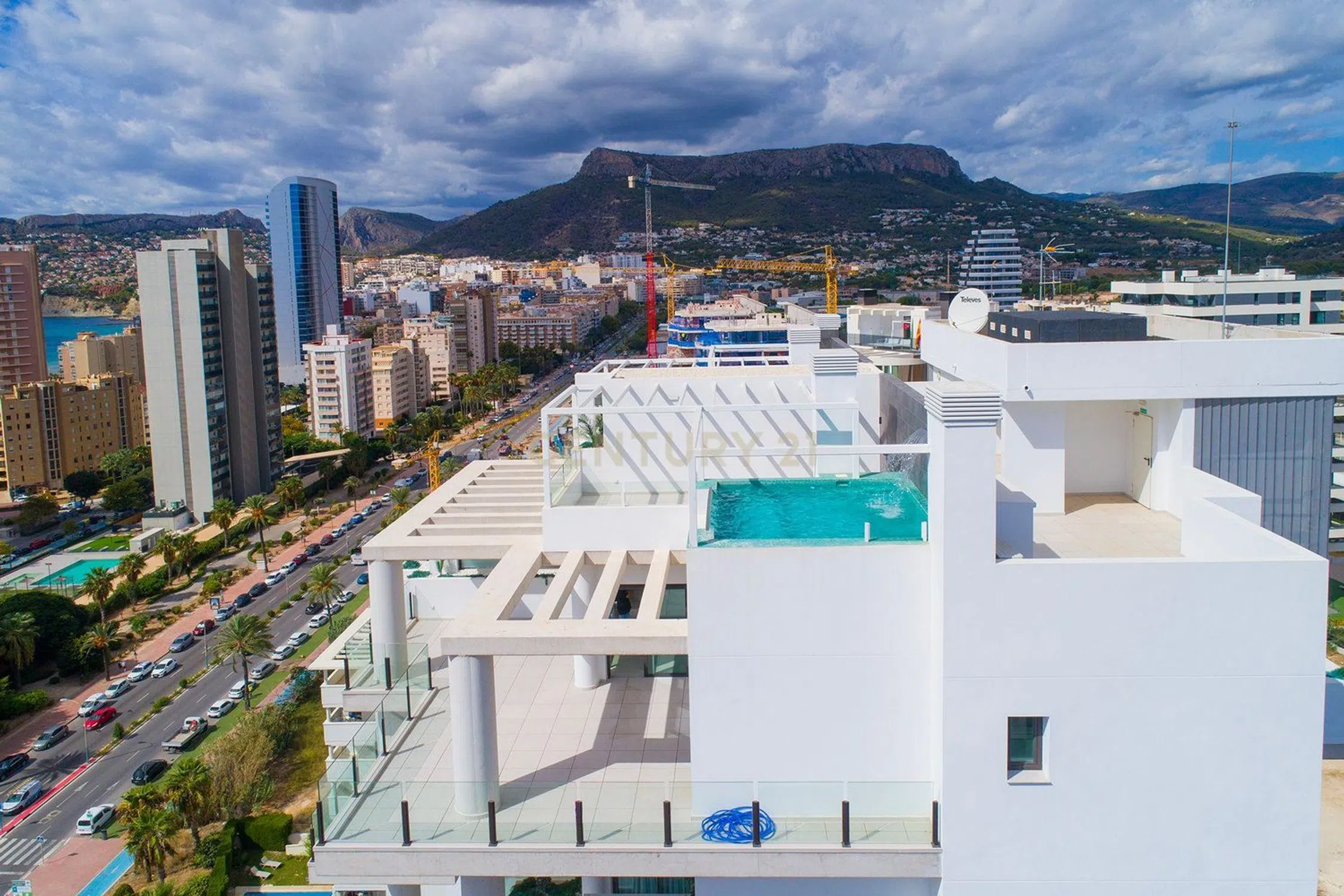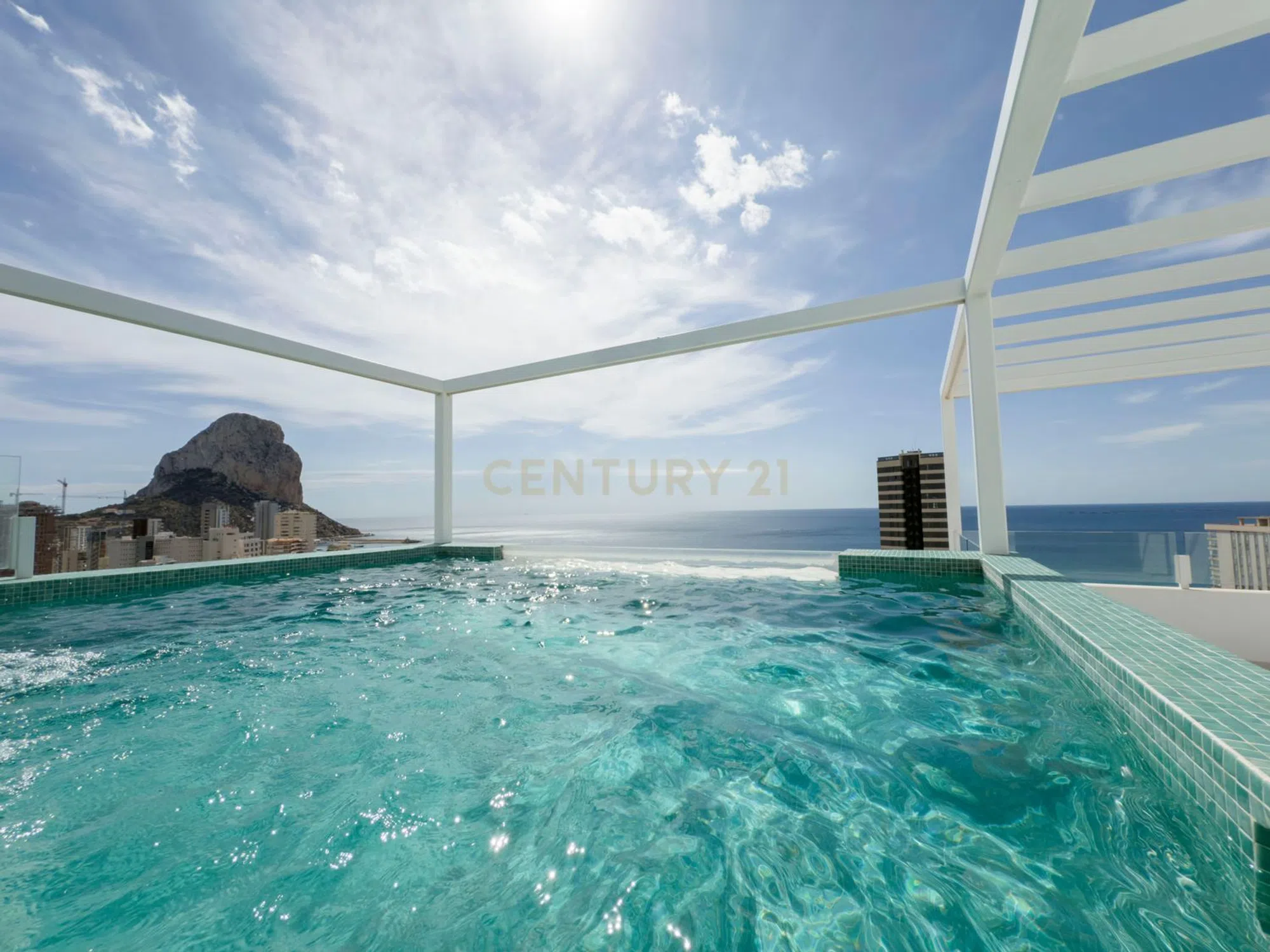 Ático dúplex con espectaculares vistas 360º al mar, Peñón de Ifach, Salinas y al pueblo de Calpe. Situado en el edificio de nueva construcción a solo 150 m de la Playa Arenal y cerca de todos los servicios. La vivienda cuenta con 172 m² (85 m² interiores y 88 m² de terrazas), incluyendo una terraza principal de 58 m² y una terraza-solárium de 30 m² con piscina privada de 16 m². Dispone de 3 dormitorios, 2 baños (uno en suite), amplio salón-comedor con cocina abierta y acceso directo a las terrazas. Equipamiento de alta gama: electrodomésticos integrados, lavadero, aire acondicionado por conductos, doble acristalamiento, puerta de seguridad y videoportero. El edificio ofrece piscina comunitaria para adultos e infantil, jardines y zonas de relax. Incluye 2 plazas de garaje (una con preinstalación para coche eléctrico) y trastero.