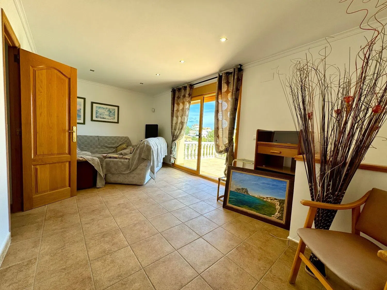 La planta alta revela otro luminoso salón que da acceso a una amplia terraza, donde podrás disfrutar de vistas panorámicas de las montañas y el mar, convirtiéndose en el rincón perfecto para pasar noches de verano bajo las estrellas. Este nivel también alberga dos habitaciones adicionales y un baño completo, creando un espacio ideal para familiares o invitados.