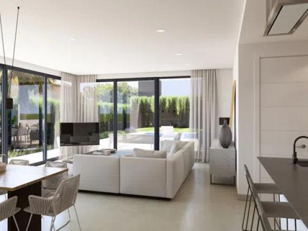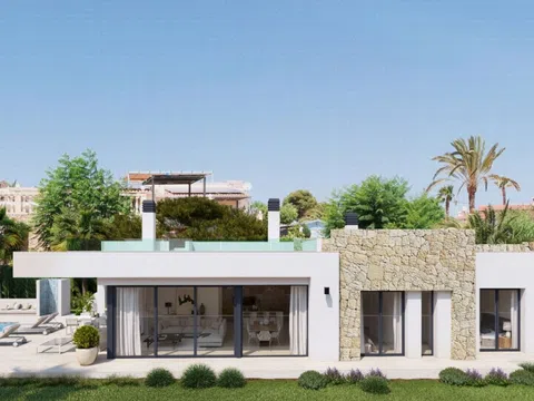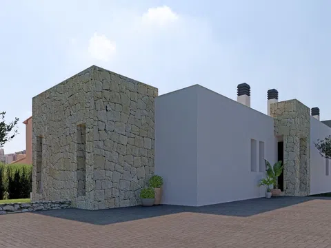 Descubre esta impresionante villa, situada en una tranquila zona residencial y a solo unos pasos de todos los servicios esenciales. Su diseño ha sido meticulosamente pensado para ofrecer una vida práctica y confortable, permitiéndote disfrutar al máximo de cada rincón del hogar. La villa cuenta con tres amplias habitaciones y tres baños, todo distribuido en una sola planta, lo que proporciona una sensación de amplitud y comodidad. Uno de los aspectos más destacados de esta propiedad es su solárium, un espacio perfecto para relajarse y disfrutar del maravilloso clima mediterráneo. Además, en el sótano encontrarás un amplio local que puede adaptarse a diversas necesidades, como espacio de almacenamiento o incluso un área de entretenimiento. La parcela es completamente llana, facilitando el acceso y el uso de los espacios exteriores. El diseño de la villa se divide en dos áreas claramente diferenciadas: una zona de vida, donde se desarrollan las actividades diarias, y otra de descanso, que invita a la tranquilidad y la relajación. La construcción ha sido realizada con materiales de primera calidad, prestando atención a cada detalle y asegurando que la villa se integre perfectamente en su entorno mediterráneo. En cuanto a la climatización, la villa está equipada con un sistema de aire acondicionado por conductos y calefacción central por suelo radiante, utilizando aerotermia para una mayor eficiencia energética. Además, cuenta con paneles solares que contribuyen a su calificación energética A, convirtiéndola en una opción sostenible y económica. La zona exterior es igualmente encantadora, con una piscina que invita a disfrutar de momentos de ocio y relax. No dejes pasar la oportunidad de hacer de esta villa tu nuevo hogar. Actualmente, está en proceso de construcción, con una fecha de finalización prevista para finales de 2026.
