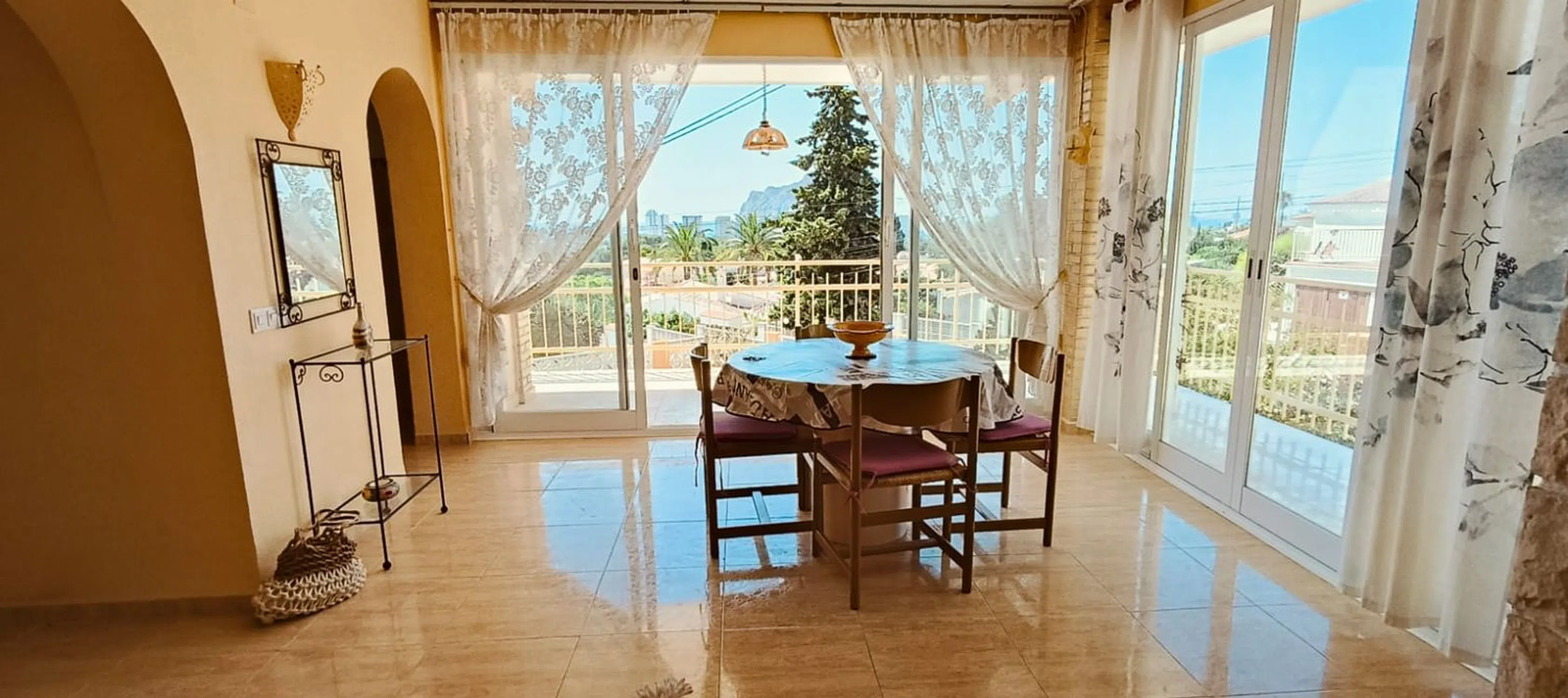 Ubicada a 3 km de la playa Arenal y de la playa La Fossa, en una urbanización residencial, con orientación al sur y muy buenas vistas al mar, este chalet se presente para convertirlo en una preciosa villa moderna. Con su arquitectura encantadora y vistas al horizonte, este chalet representa una oportunidad para disfrutar de un estilo de vida mediterranea y comodidad en la hermosa ciudad de Calpe, Alicante. Detalles de la PropiedadLa vivienda cuenta con un generoso espacio de 203 m² construidos, distribuidos de manera eficiente para maximizar el bienestar. Con 4 amplias habitaciones y 2 baños, hay suficiente espacio para disfrutar de la intimidad y la convivencia familiar. Consta de dos apartamentos con la entrada individual, con cado uno cocina, salón-comedor, dos dormitorios, baño y terraza con vistas al mar Exteriores y JardínEl encantador jardín que rodea la villa es un lugar perfecto para relajarse y disfrutar del clima soleado de la región. La piscina privada se convierte en un refugio ideal para los días calurosos, mientras que las terrazas, tanto cubiertas como al aire libre, ofrecen múltiples espacios para cenar al aire libre o simplemente contemplar el atardecer sobre el paisaje circundante. Diseño InteriorLa cocina, en un elegante estilo francés, es un espacio ideal para aquellos que disfrutan de la gastronomía y la convivencia. La luminosidad del interior, combinada con los acabados elegantes, crean una atmósfera acogedora que invita a ser habitada. Además, el salón cuenta con acceso directo a las áreas exteriores, contribuyendo a una transición fluida entre el interior y el excepcional entorno natural. Ubicación PrivilegiadaCalpe, conocida por sus impresionantes playas y su famoso Peñón de Ifach, ofrece una calidad de vida inigualable. La zona de La Cometa II es ideal para quienes buscan tranquilidad sin renunciar a la proximidad de servicios, restaurantes y actividades al aire libre. La ubicación de la villa proporciona una combinación perfecta de privacidad y acceso a las maravillas de la Costa Blanca. Con todas estas características, esta villa no es solo un lugar para vivir, sino un auténtico santuario donde cada día puede ser disfrutado al máximo en un entorno de belleza natural y sofisticación. No pierda la oportunidad de hacer de esta propiedad su nuevo hogar en el corazón del Mediterráneo.