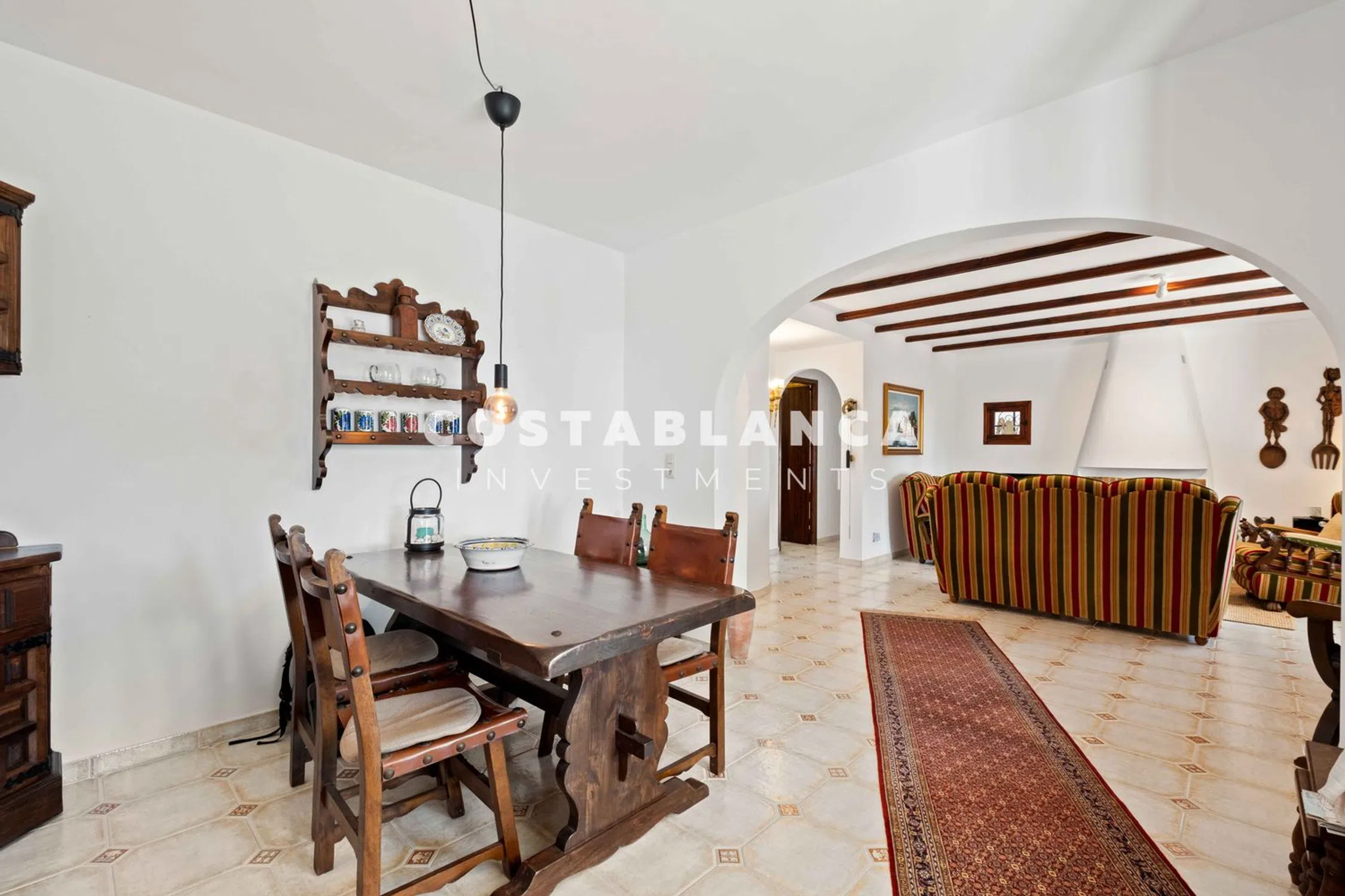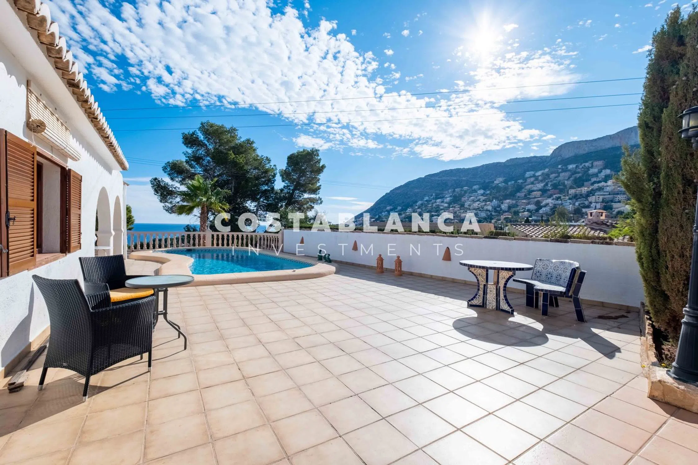 Gran Villa con Alojamiento Independiente para Invitados y Hermosas Áreas al Aire Libre Esta generosa villa se encuentra en un terreno combinado de aproximadamente 1,700 m² en una posición elevada y tranquila, ofreciendo bellas vistas al mar y una privacidad excepcional. Todo el espacio habitable se distribuye en un solo nivel, garantizando comodidad, accesibilidad y una conexión fluida entre el interior y las áreas exteriores. Dos entradas independientes, una desde el frente y otra desde la parte trasera, proporcionan un acceso práctico y flexible a la propiedad. La casa principal, con alrededor de 130 m² construidos y originalmente construida entre 1973 y 1975, ofrece una atmósfera cálida y confortable. Cuenta con una luminosa sala de estar, una cocina funcional y de dos a tres dormitorios dependiendo de la distribución deseada. Dos baños completan el interior, lo que hace que el hogar sea adecuado tanto para uso familiar como para recibir invitados. Varias mejoras recientes aseguran comodidad moderna, incluyendo unidades de aire acondicionado nuevas en toda la casa, calefacción central a gas para vivir todo el año, un exterior recién pintado y diversas obras de mantenimiento ya completadas. El resultado es una propiedad bien cuidada con una estructura sólida y un gran potencial para futuras modernizaciones o ampliaciones. Las áreas exteriores son uno de los puntos destacados de la villa. El amplio terreno ofrece múltiples terrazas, vegetación madura y varios espacios diseñados para relajarse, comer al aire libre y disfrutar de las vistas panorámicas al mar en total tranquilidad. Un apartamento de invitados separado añade privacidad y versatilidad, ya sea para la familia, visitantes o posibilidades de alquiler. Distancias • Playa (Puerto Blanco): 1.3 km • Aeropuerto de Alicante: 77 km • Aeropuerto de Valencia: 125 km.