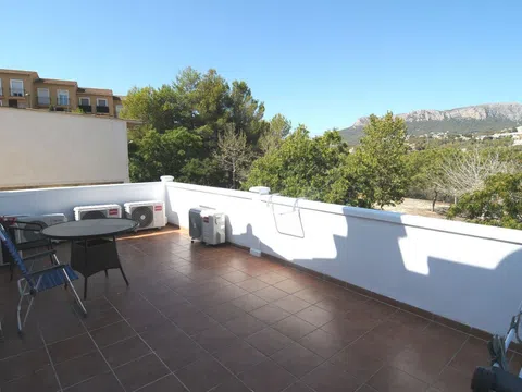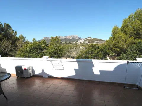 Bungalow de 3 dormitorios en venta en Calpe, Costa Blanca, con piscina comunitaria y estupendas vistas a las montañas, a solo 3,5 km de Calpe. Renovado en el año 2024. Este bungalow de 135 m2, Esta situado en un complejo residencial cerrado, orientado al Sur- Oeste, a 2,5 km del supermercado Aldi, a 2,9 km de la playa de La Fossa y a 3,5 km del centro de Calpe. Distancia al Aeropuerto de Alicante: 73 km La urbanizacion posee una estupenda piscina comunitaria y zonas ajardinadas. El Bungalow tiene un jardin privado de 350m2 con cocina de verano y barbacoa, garaje y se distribuye de la siguiente manera: Planta principal: Se compone de un salon- comedor, una cocina abierta con isla, 2 dormitorios, 1 terraza y un baño con ducha, inodoro suspendido y lavabo. También hay un trastero. Planta superior: Se compone de un amplio dormitorio con armario empotrado, una terraza con vistas a las montañas y 1 baño en suite con ducha, inodoro suspendido y lavabo. Extras: -Termosifón con placa solar para el agua caliente. - Doble acristalamiento - Aire acondicionado frio- calor - Puerta de seguridad Llámenos para una visita o más información. Trabajamos para que encuentre la casa de sus sueños. Le enseñaremos esta propiedad si le interesa, o buscaremos para usted hasta encontrar lo que busca. ¡Después, nos encargaremos de todo el papeleo necesario hasta la entrega de las llaves! [IW].