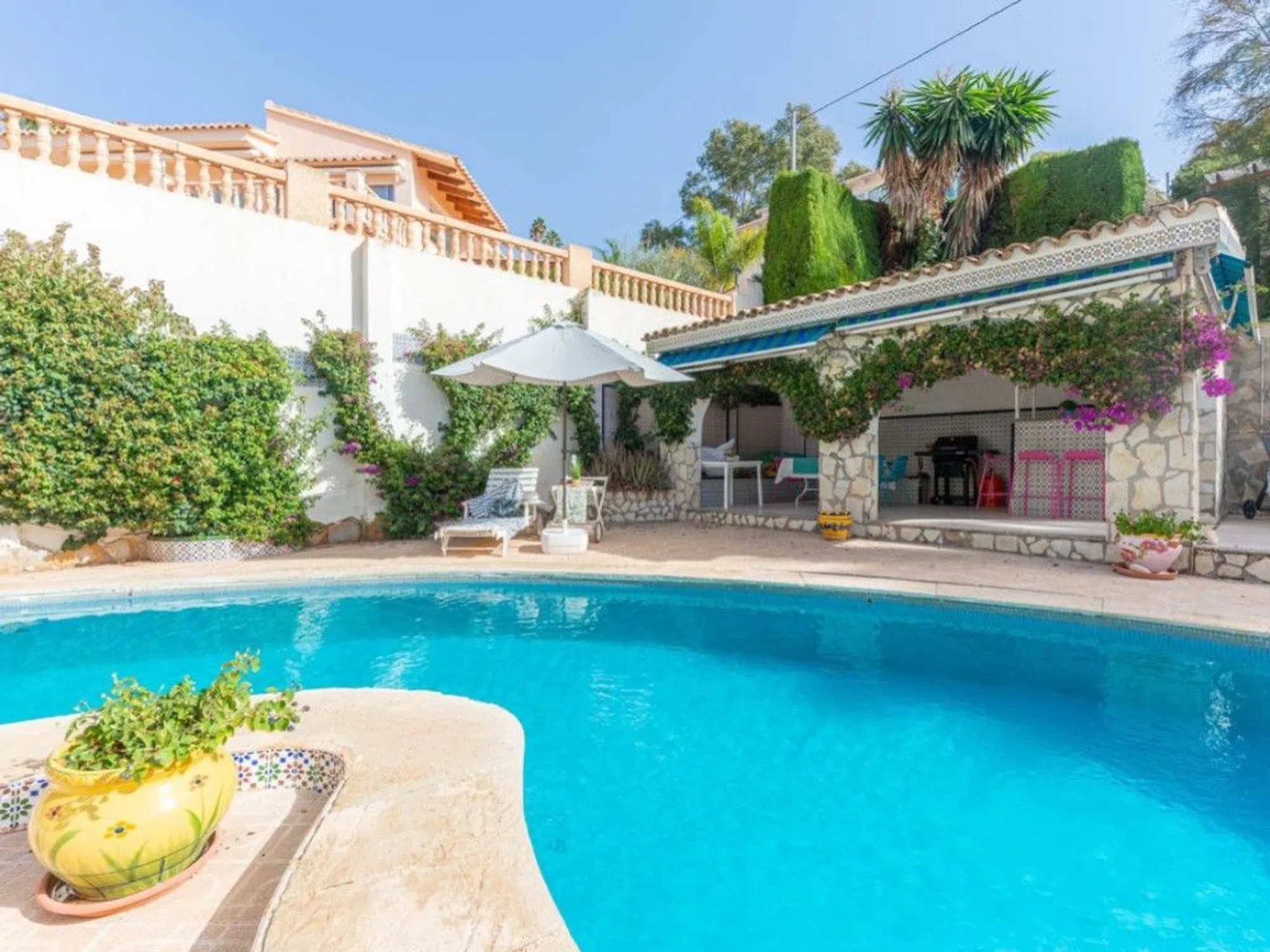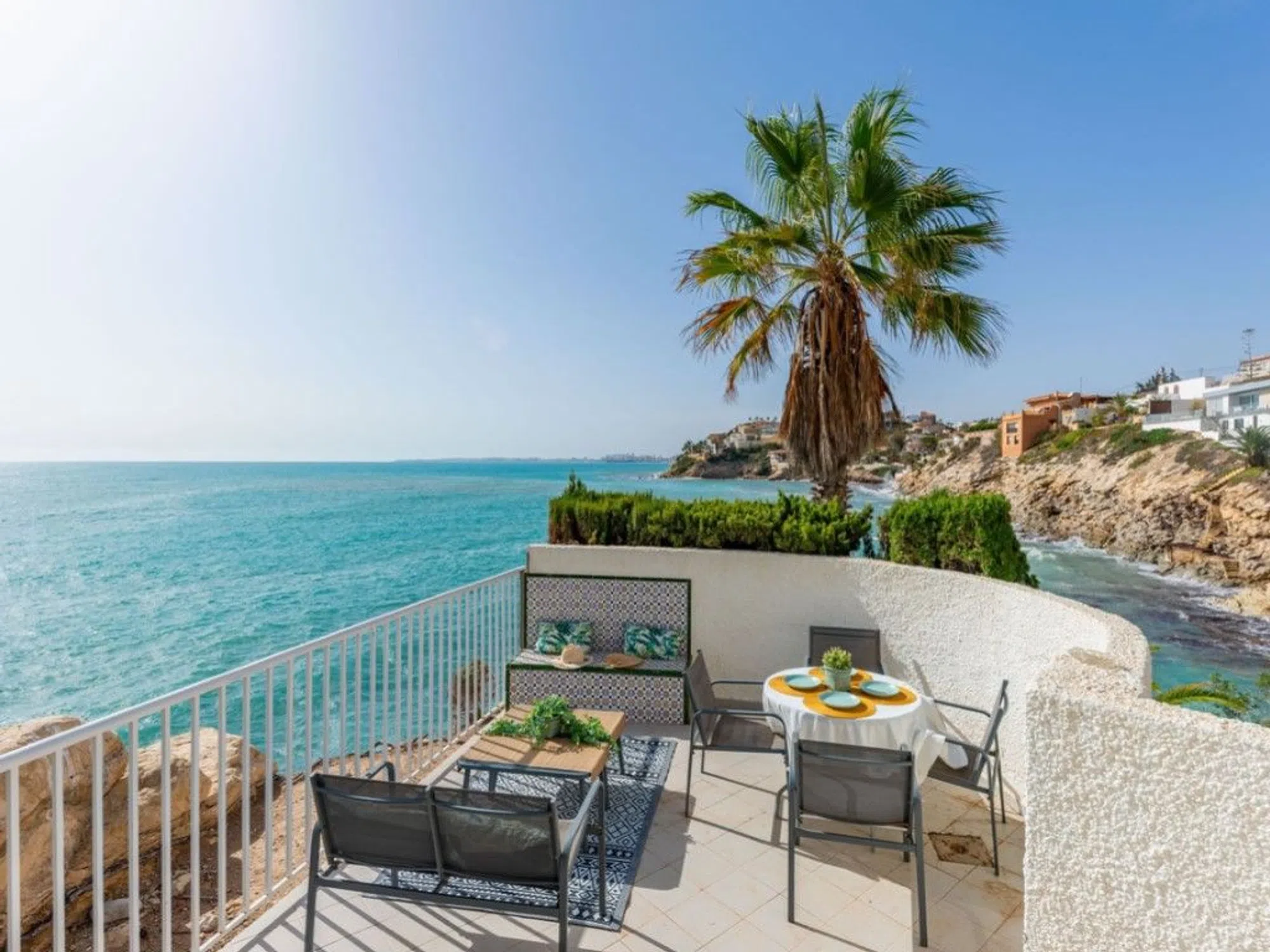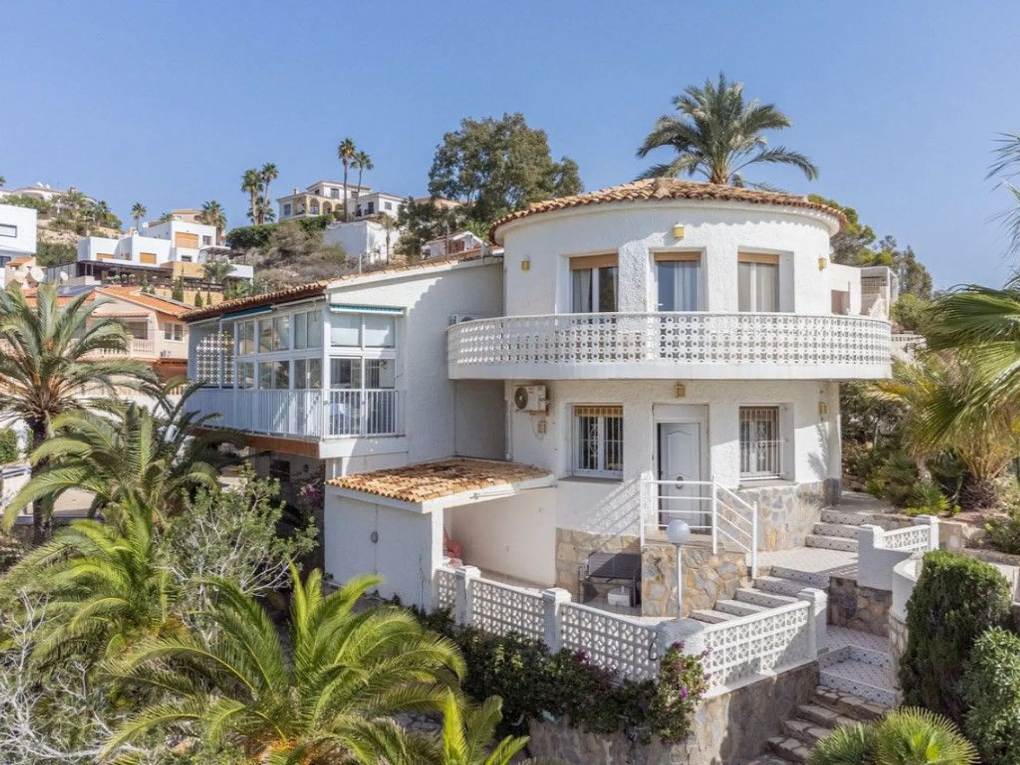 Ubicada en la primera línea de la codiciada Costa Blanca Norte, en la exclusiva zona residencial de Coveta Fumá, Villa El Faro es una propiedad verdaderamente impresionante. Con una superficie de aproximadamente 200 metros cuadrados, esta propiedad se encuentra sobre un terreno y roca que se adentra en el mar, ofreciendo una ubicación única junto al mar. Esto, combinado con su diseño arquitectónico en parte redondeado, realza su carácter y atractivo distintivo. El terreno mide alrededor de 959 m². Convenientemente situada a solo unos pasos de la playa 'Platja dels Carrabiners, ' esta notable villa también da a una pequeña cala, accesible mediante una escalera a lo largo del borde de la propiedad. Villa El Faro está a un corto trayecto en coche del encantador pueblo pesquero de Villajoyosa al norte y de la pintoresca localidad costera de El Campello al sur. Ofrece impresionantes vistas al mar y se encuentra a poca distancia a pie de la playa y de la estación de tranvía cercana. Con acceso desde una calle residencial y en proximidad a la carretera nacional N-332, esta villa única se encuentra a solo 5 minutos en coche de la autopista Alicante-Valencia, lo que garantiza excelentes conexiones de transporte. La propiedad se accede a través de una puerta de entrada automatizada que conduce a una entrada de vehículos. **Planta Baja: ** - Encantador salón circular con chimenea y acceso a las terrazas exteriores. - Cocina independiente completamente equipada y comedor con acceso a una terraza cerrada con vistas a la cala y al mar. - Dos dormitorios, uno de ellos espacioso. - Cuarto de ducha independiente. **Planta Inferior: ** - Dos dormitorios dobles con armarios empotrados y un cuarto de ducha compartido. - Garaje cerrado y zona de almacenamiento. **Planta Superior: ** - Gran dormitorio circular con baño en suite que incluye lavabo doble. **Características Exteriores: ** - Varias terrazas, tanto abiertas como cubiertas. - Piscina de forma de riñón. - Zona de comedor exterior cubierta, con cocina y barbacoa. - Escalera adyacente a la propiedad que lleva a la cala. La propiedad está orientada al sur, maximizando la luz solar durante todo el día. Villa El Faro es ideal para una familia que desee disfrutar de la vida junto al mar o para un inversor que busque aprovechar su potencial de alquiler vacacional; la propiedad dispone de LICENCIA TURÍSTICA. ref: R4853623.