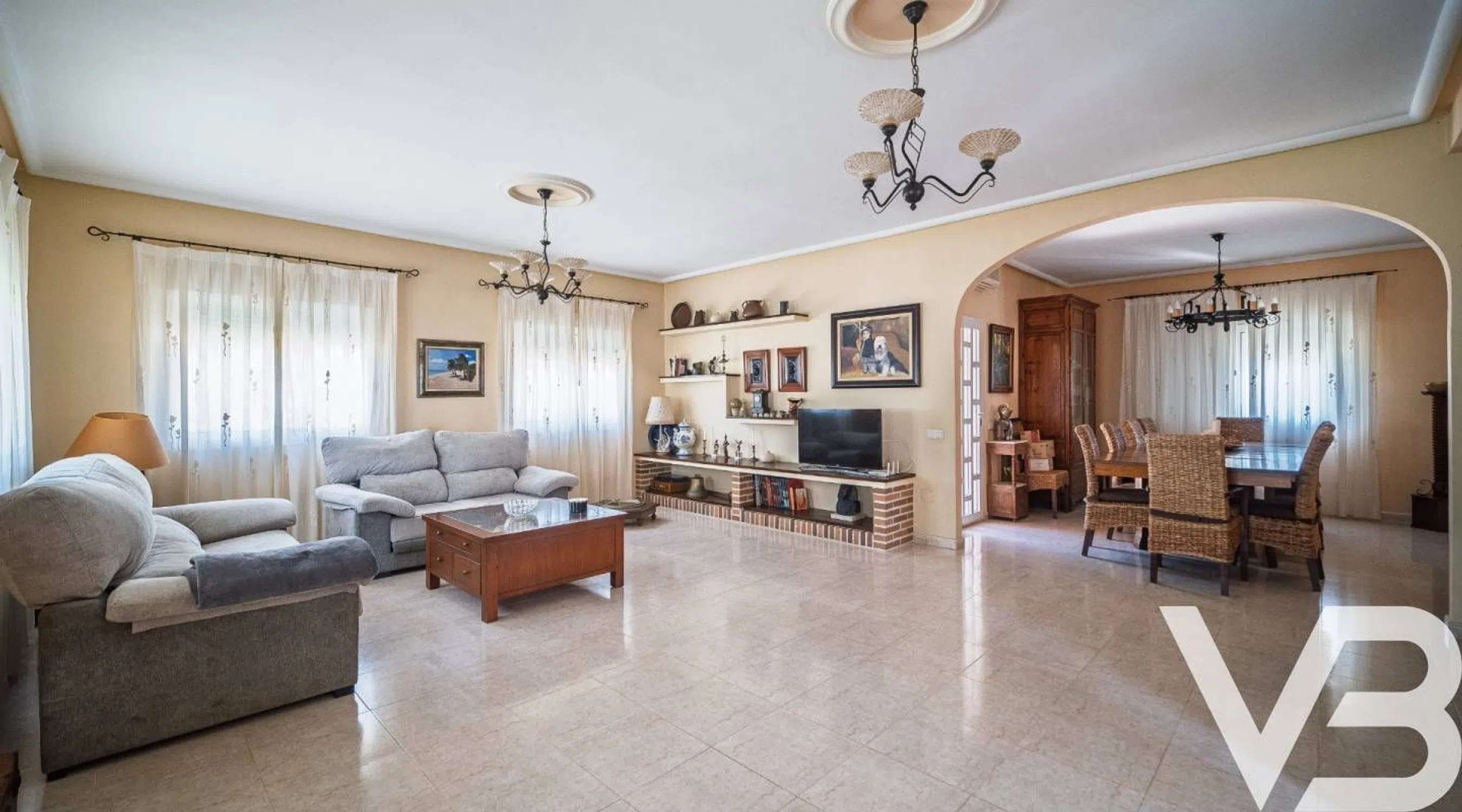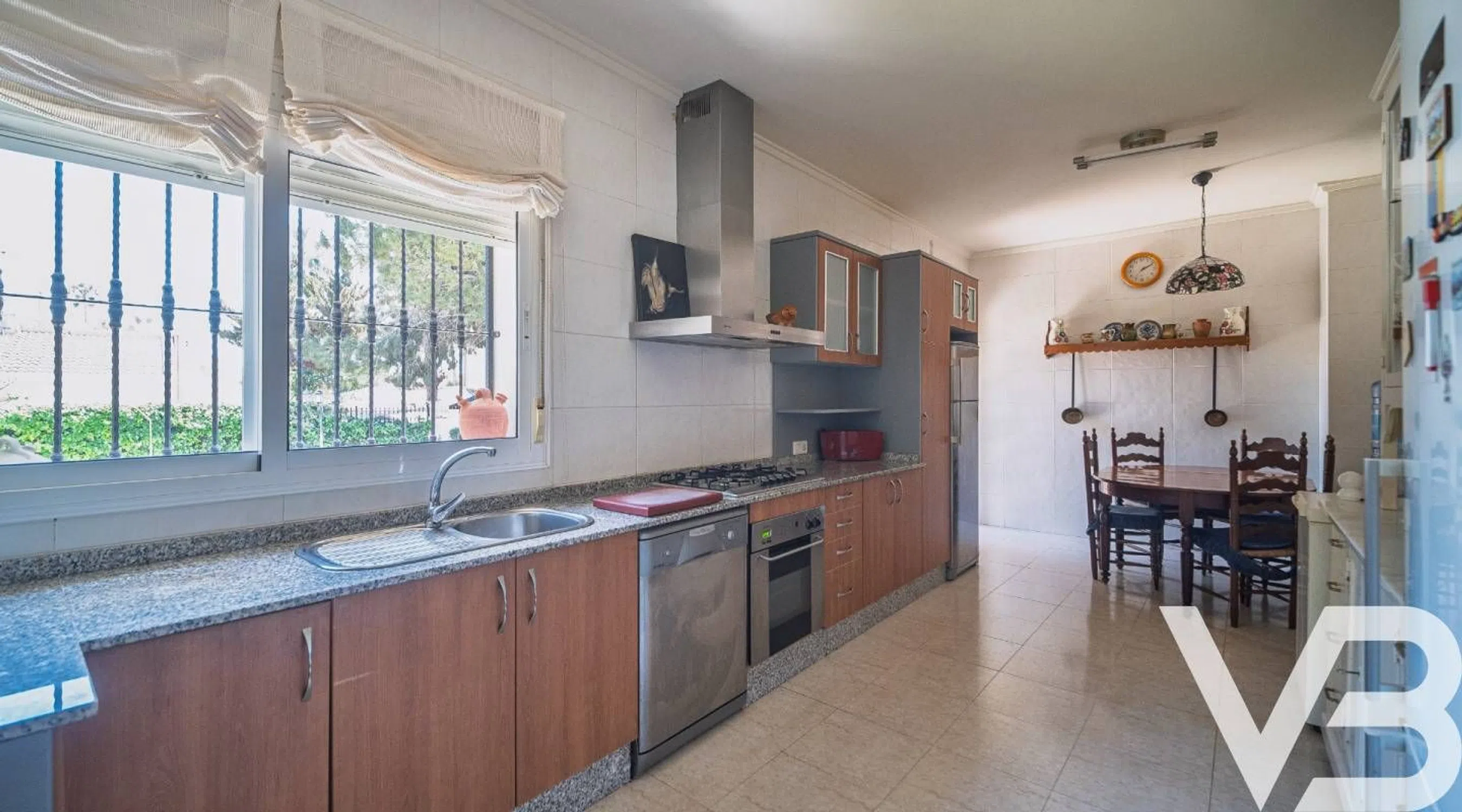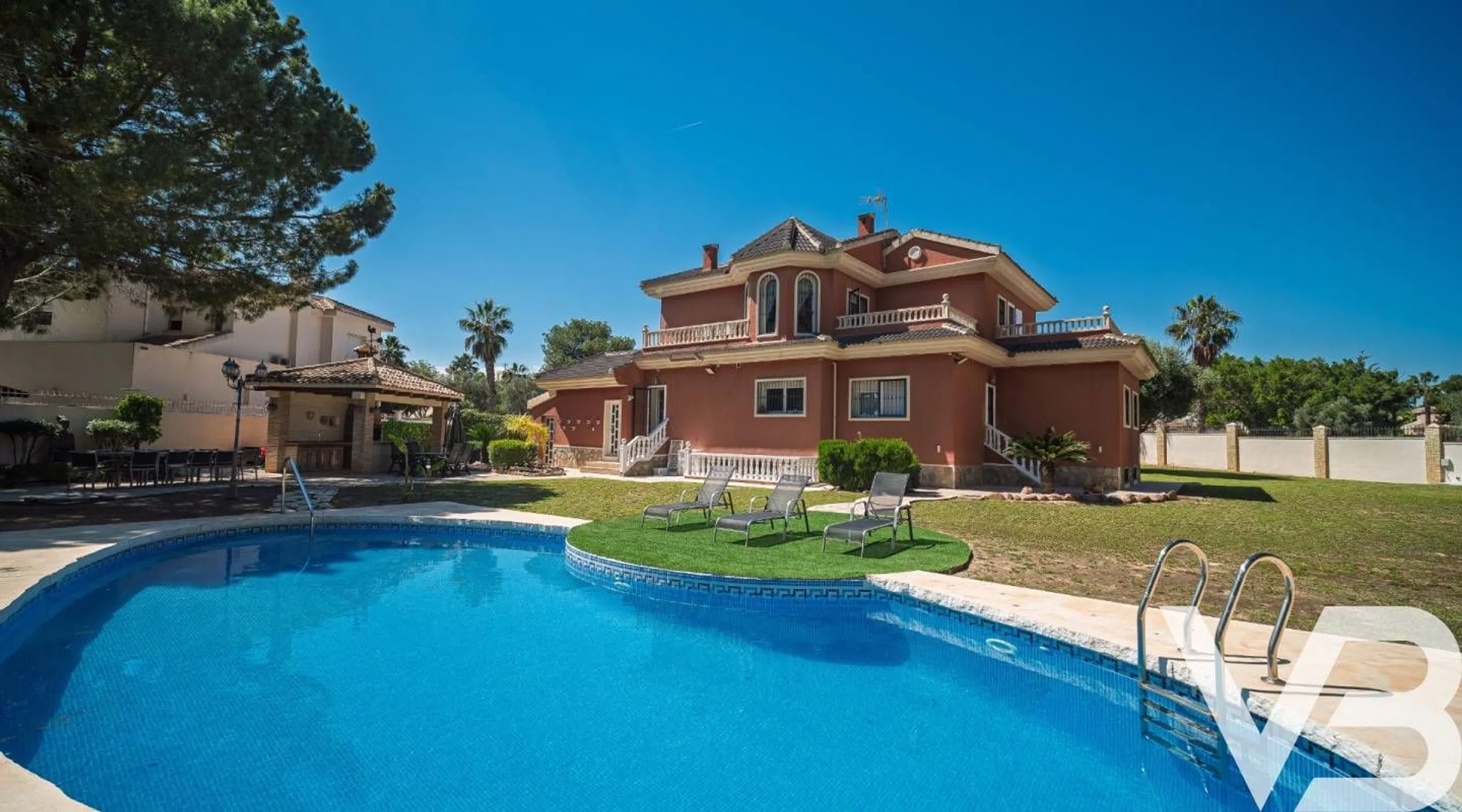 Ubicada en una de las zonas más exclusivas y demandadas de Doña Pepa, Ciudad Quesada, esta impresionante villa de estilo tradicional ofrece elegancia atemporal, amplios espacios habitables y total privacidad en una generosa parcela de 1.500 m². Con una superficie construida de 422 m², la propiedad se distribuye en dos plantas más sótano, ofreciendo versatilidad y confort para familias numerosas o quienes disfrutan de recibir invitados. En la planta principal se encuentra un amplio y luminoso salón, una cocina independiente completamente equipada, un dormitorio de invitados y un baño completo, todo diseñado con materiales de calidad y un estilo acogedor. En la planta superior dispone de dos dormitorios en suite, cada uno con baño privado y mucho espacio, además de un dormitorio adicional para invitados, ideal para familia o amigos. El sótano es otro de los grandes atractivos de la vivienda, con un segundo salón, baño, lavadero y acceso directo a la zona de piscina, creando una perfecta conexión entre interior y exterior. Además, cuenta con garaje privado que ofrece amplio espacio de almacenamiento y estacionamiento seguro. El extenso jardín es un verdadero oasis privado, combinando zonas de césped natural, amplias terrazas y rincones ideales para relajarse, cenar al aire libre o disfrutar del sol. La piscina está estratégicamente ubicada para aprovechar el máximo de horas de sol y preservar la intimidad. Esta villa representa una oportunidad única de adquirir una vivienda que combina el encanto mediterráneo clásico con amplias dimensiones y una ubicación privilegiada cerca de todos los servicios, restaurantes y comercios. Una propiedad única que hay que visitar para apreciar todo su potencial.