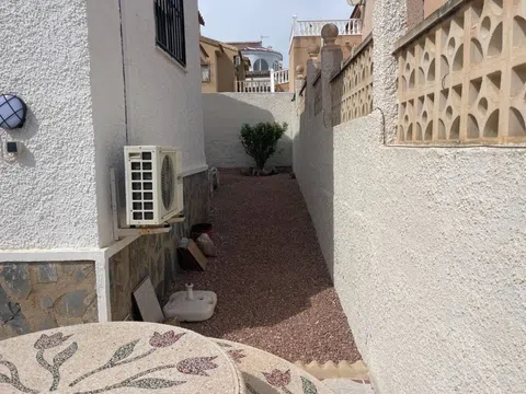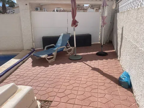 Esta elegante villa independiente de 2 dormitorios y 2 baños está situada en la prestigiosa zona de La Marquesa y ofrece un entorno tranquilo y pintoresco con proximidad al campo de golf e impresionantes vistas a la piscina y al jardín. Diseñado para la comodidad y conveniencia, la villa cuenta con una amplia sala de estar, una cocina independiente totalmente equipada, y un cuarto de baño adicional. Los armarios empotrados proporcionan un amplio espacio de almacenamiento, mientras que el aire acondicionado y los ventiladores de techo garantizan un clima agradable durante todo el año. El espacio exterior privado es un verdadero punto culminante, con una parcela totalmente embaldosada, una piscina privada, un solarium y una terraza orientada al suroeste, perfecta para disfrutar del sol mediterráneo. El aparcamiento fuera de la carretera y el camino de entrada privado se suman a la comodidad de la villa. Las características adicionales incluyen: Internet de fibra óptica para una conectividad de alta velocidad Electrodomésticos incluidos para su uso inmediato Muebles negociables para facilitar la transición Muy cerca de escuelas, tiendas y servicios esenciales Situado a sólo 5 minutos de La Marquesa Golf, a 10 minutos de las impresionantes playas, ya 35 minutos del aeropuerto, esta villa es un hogar ideal para los amantes del golf, turistas o residentes permanentes. ¡Con su excelente estado, hermoso entorno y ubicación inmejorable, esta villa es una visita obligada!