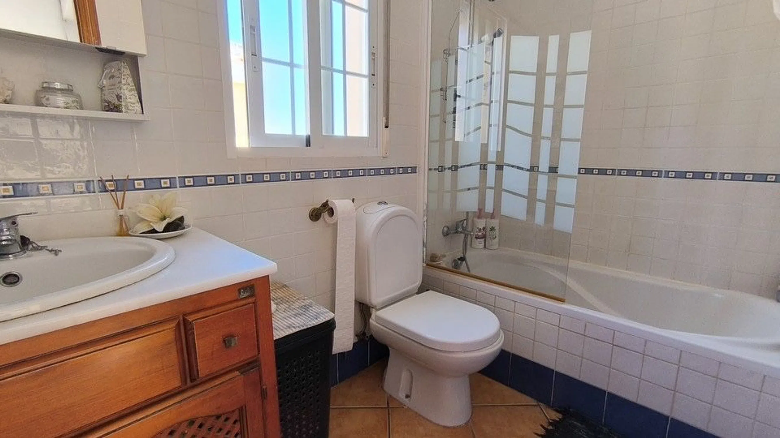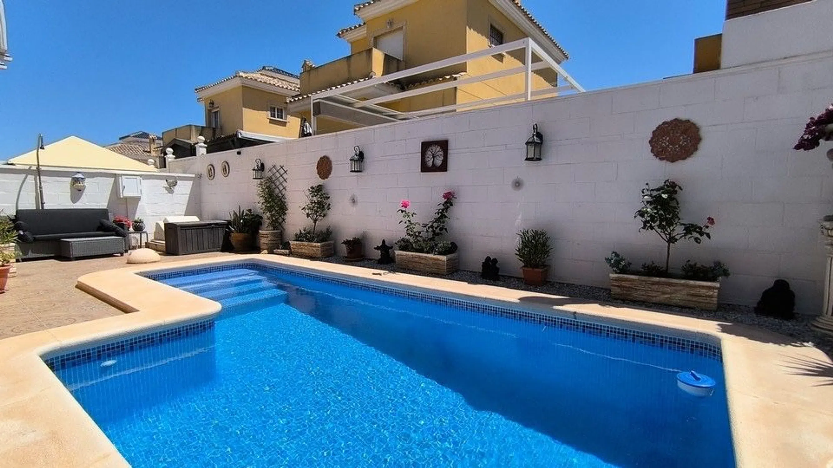 Descubra esta encantadora villa independiente de 2 dormitorios y 2 baños con piscina privada en Lo Crispin. A solo cinco minutos a pie del centro comercial local con bares y restaurantes, la villa ofrece comodidad y conveniencia. La casa se encuentra en una parcela generosa con estacionamiento fuera de la carretera y una cochera que proporciona sombra esencial. Diseñado para un fácil mantenimiento, el espacio al aire libre cuenta con secciones de grava, áreas plantadas maduras y varios lugares para sentarse donde puede relajarse y descansar. Entre a un salón y comedor de planta abierta, luminoso y espacioso. El acogedor quemador de leña crea un ambiente acogedor, mientras que la sala de invierno acristalada agrega espacio adicional para vivir durante todo el año. Una cocina separada con un lavadero contiguo conduce directamente al área de la piscina, ideal para el entretenimiento al aire libre. En la planta baja, encontrará un dormitorio doble de buen tamaño, un baño familiar y un práctico armario de almacenamiento debajo de las escaleras. Arriba hay otro dormitorio doble, un segundo baño y dos terrazas soleadas. Ambos dormitorios ofrecen armarios empotrados. La propiedad incluye aire acondicionado en todas partes para mayor comodidad durante todo el año. El área de la piscina privada es perfecta para tomar el sol o refrescarse en los meses de verano. También hay una piscina comunitaria, a 80 metros de la propiedad, que es un lugar ideal para conocer a los vecinos. Lo Crispin disfruta de un excelente acceso a los servicios circundantes. La Finca Golf Resort está a solo 10 minutos en coche. El impresionante Parque Recorral en Rojales está a solo 8 minutos en coche. ¿Le apetece un día de playa? Las doradas arenas de Guardamar son accesibles en solo 20 minutos. Esta villa independiente con piscina privada en Lo Crispin, Algorfa, es perfecta como hogar permanente, escapada de vacaciones o inversión. Se recomienda encarecidamente la visita.