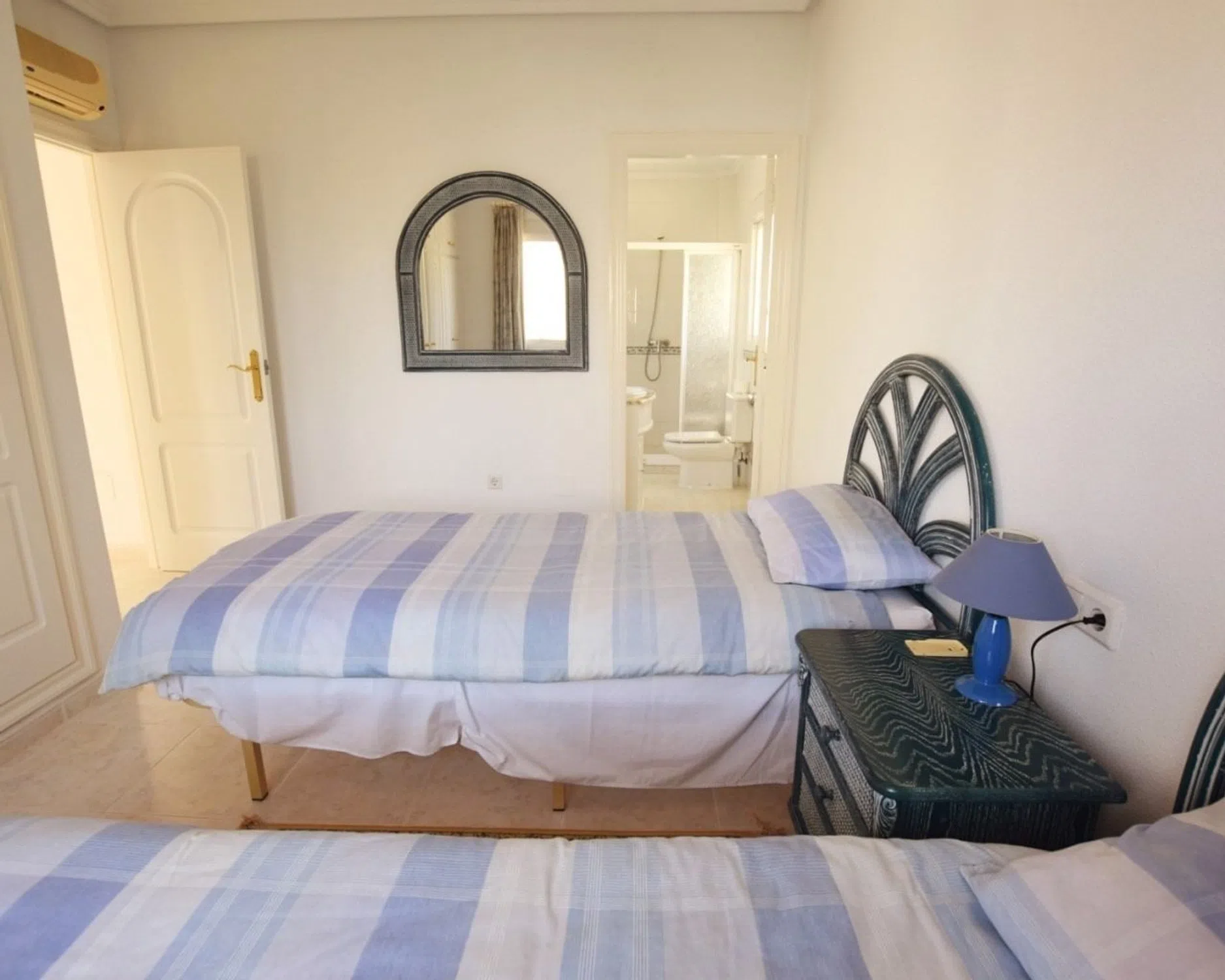 Esta magnífica villa independiente de gran tamaño se presenta a la venta en excelentes condiciones y se ha mantenido a un nivel muy alto. La propiedad ofrece un alojamiento de 4 dormitorios y 3 baños distribuidos en dos plantas. En la planta baja hay un gran salón doble de planta abierta con múltiples puertas francesas en la zona curva del salón que se abren al jardín y a la zona de la piscina. Una puerta acristalada se abre a una cocina de buen tamaño totalmente equipada con una puerta independiente que da al jardín exterior. Un pasillo conduce a dos grandes dormitorios dobles y un baño familiar. También hay una gran zona de almacenamiento debajo de las escaleras. Una gran escalera conduce al rellano del primer piso que tiene una puerta acristalada a una pequeña terraza privada. Una puerta se abre a un dormitorio de invitados completo con baño con ducha y aseo. Otra puerta se abre a una suite de dormitorio principal muy grande y un área de baño en suite excepcionalmente grande. Las puertas del patio se abren a una gran terraza curva orientada al sur con vistas a la piscina, los jardines y más hacia las salinas. Una escalera adicional conduce a un solárium con excelentes vistas. El exterior de esta propiedad tiene mucho espacio al aire libre para estacionamiento cubierto fuera de la carretera, una piscina de 12x6 y tiene la ventaja adicional de una cocina exterior totalmente autónoma, cubierta y con cortinas de vidrio. La propiedad está orientada al sur y se beneficia del sol y se encuentra muy bien al final de una tranquila calle sin salida en la popular zona residencial de Pueblo Bravo. Se recomienda encarecidamente la visita.
