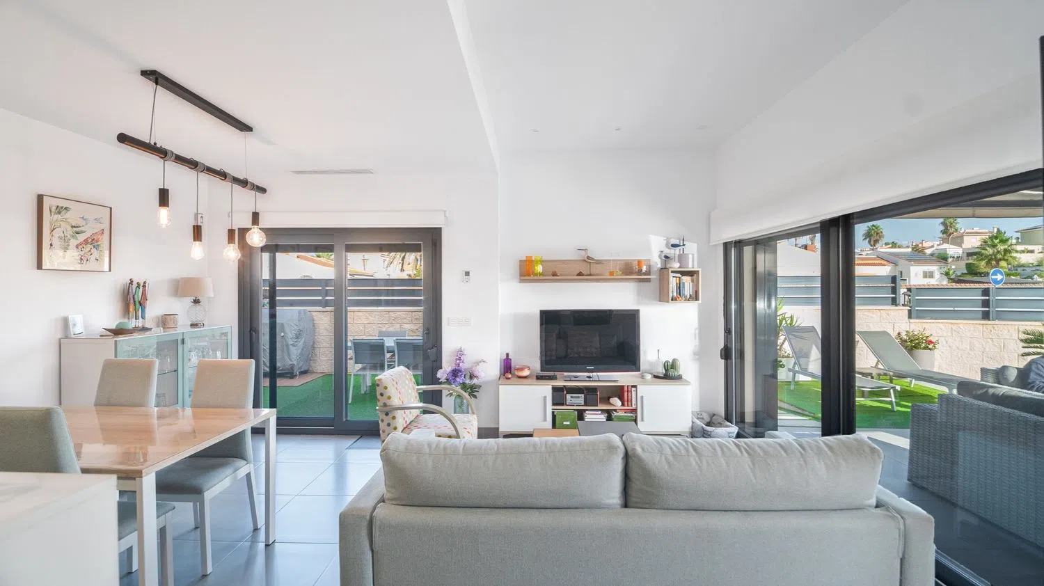 Ubicado en una codiciada zona, este impresionante chalet adosado ofrece una fusión perfecta de diseño moderno y funcionalidad. Con una generosa parcela de esquina, la propiedad garantiza privacidad y una abundante entrada de luz natural. La villa cuenta con tres dormitorios bien equipados y tres baños contemporáneos, asegurando comodidad y conveniencia tanto para familias como para invitados. El interior presenta una distribución diáfana y elegante, con una cocina estilizada equipada con electrodomésticos de alta gama que se integra armoniosamente con el comedor y el salón.