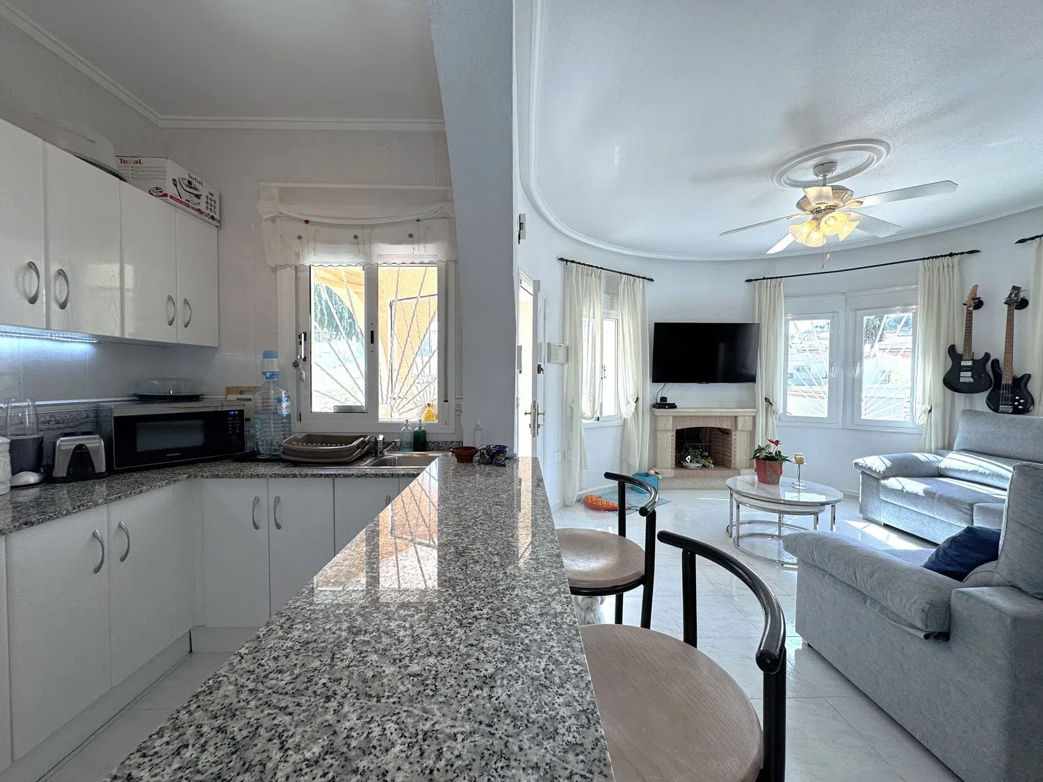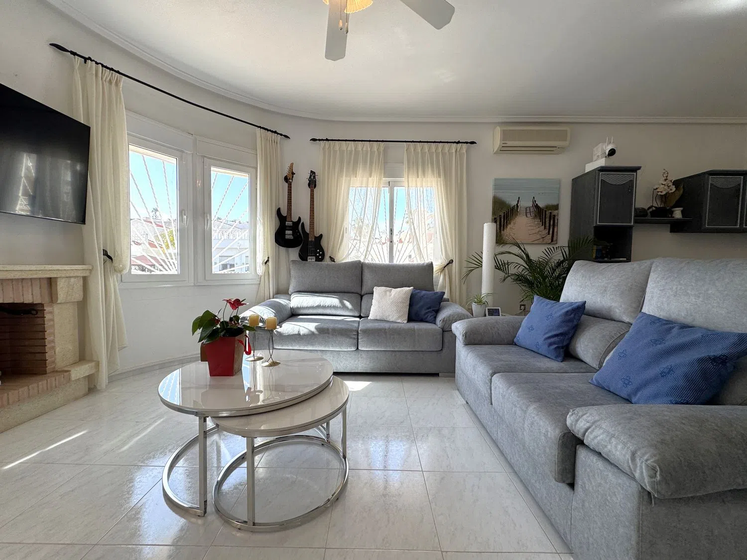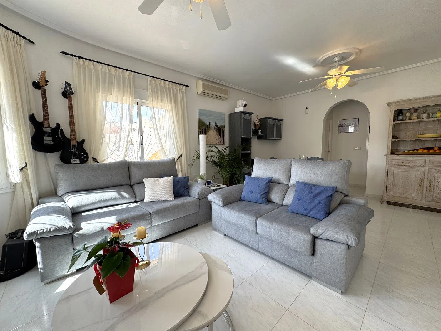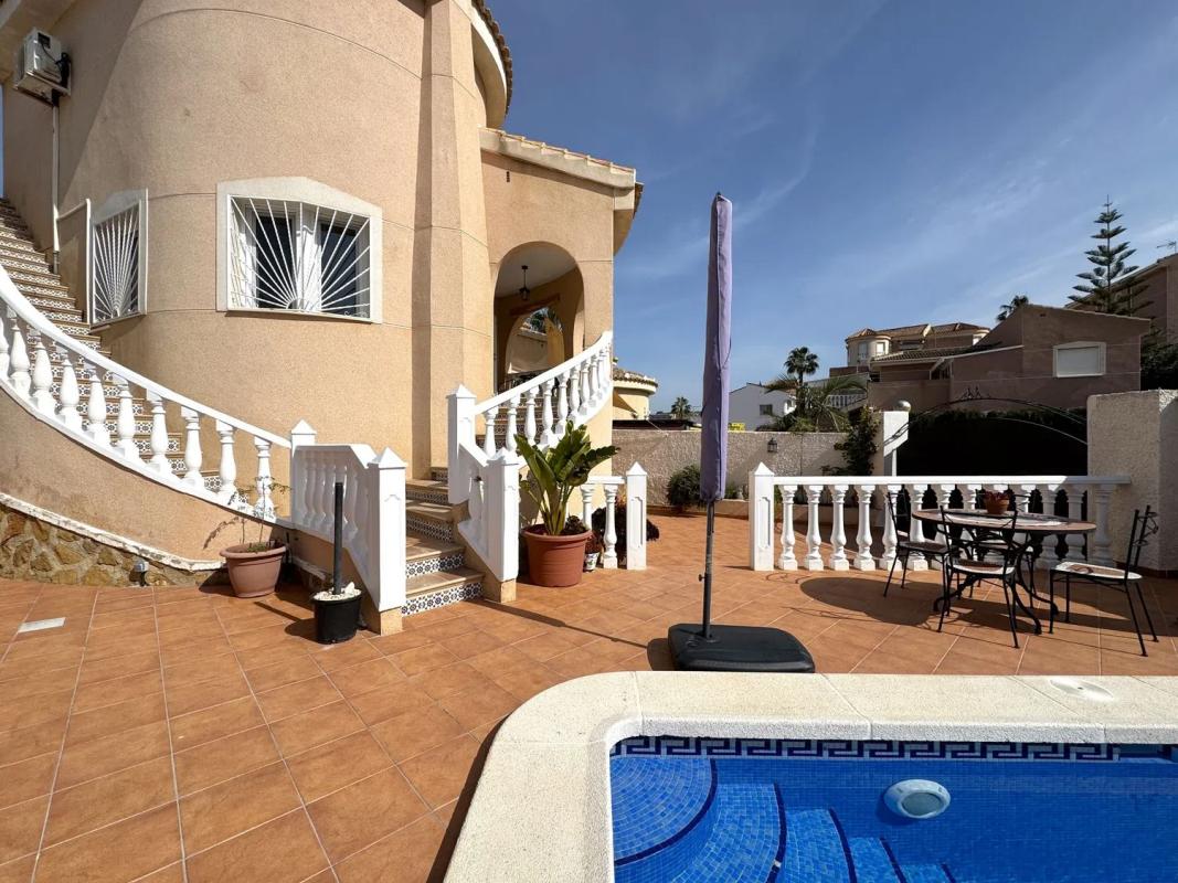 Bedrums Real Estate ofrece a la venta este chalet amueblado, acogedor y con acabados de primeras calidades, cercano al campo de Golf La Marquesa, en Ciudad Quesada, Rojales. Cuenta con una distribución de 2 dormitorios, un cuarto de baño, cocina equipada de estilo americana, salón-comedor, porche y una gran terraza exterior. Incluye instalación y 3 máquinas de A/A, ventiladores de techo con lámpara, armarios empotrados, chimenea, carpintería exterior de aluminio-climalit, suelos cerámicos. La vivienda tiene una superficie construida de 85 m2, orientación Sur, es totalmente exterior y disfruta de luminosidad y luz natural en sus estancias. Sita sobre una parcela de 266 m2 con muros de obra, piscina, barbacoa, solárium, jardín, aparcamiento para vehículos y suelo pavimentado. Además posee un semisótano con espacio suficiente para ser usado como trastero o almacén. La propiedad fue construida en 2004 y mantiene un estado de conservación excelente. La zona donde se ubica es ideal para residir todo el año, dispone de todo tipo de servicios en sus alrededores, mercadillos donde poder disfrutar de productos locales, zonas de restauración y ocio, supermercados, centro de salud, etc. Si nos desplazamos encontramos el mar y las playas más cercanas a 7 km, el municipio de Guardamar del Segura a 9 km y la ciudad de Torrevieja a 10 km.