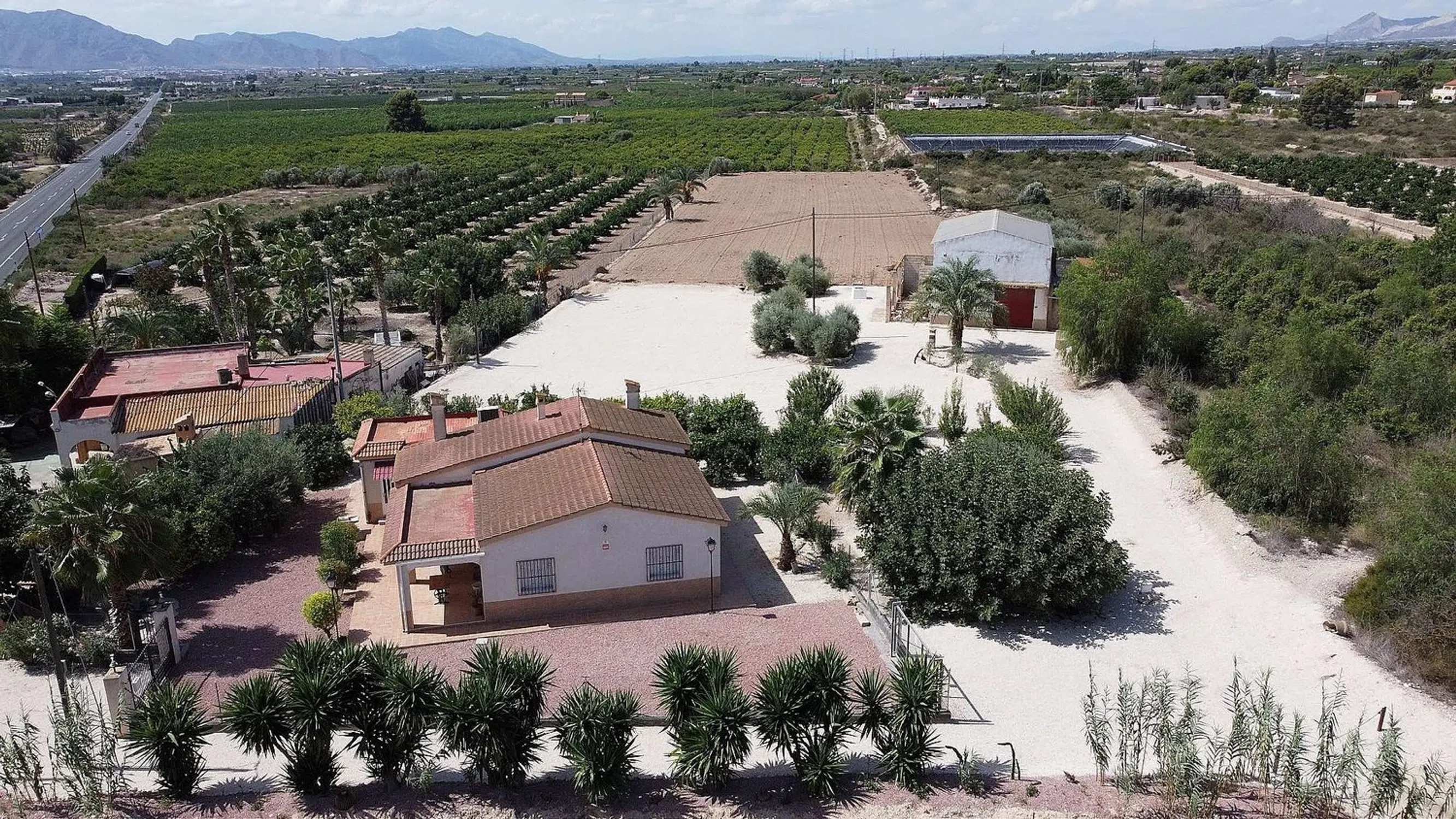 NO SE ALQUILA Casa de Campo Independiente cerca de Crevillente, con una parcela de 10.000m2 y un precioso jardín maduro con árboles frutales, hortalizas y palmeras. La casa tiene 3 dormitorios, salón, cocina americana, despacho, chimenea y terraza. En la planta baja hay un gran comedor/garaje abierto para eventos familiares numerosos y una sala con frigorífico que se utiliza para guardar flores (el negocio familiar). Hay una gran piscina con terraza cubierta, cocina exterior y comedor, con office y despensa. También una pequeña cancha de fútbol y otra edificación destinada a almacén y corral de animales. En la parcela también hay un gran depósito que se puede utilizar para regar las plantas. Hay luz y agua de red. Situada a 5 minutos en coche de las localidades de Crevillente y Albatera. Crevillent, situada en medio de la Sierra de Crevillent, es una bonita ciudad con mucha historia para explorar, naturaleza para recorrer y festivales para vivir. El campanario de la iglesia de la Plaza Vieja y la iglesia parroquial de Nuestra Señora de Belén se alzan contra los edificios más bajos. Una vez que te hagas una idea de cómo es la parte más histórica de Crevillent, es hora de centrarte en todo lo que puedes ver en la ciudad. Independientemente de cómo te guste pasar tu tiempo libre, Crevillent tiene algo para ti. Los aficionados a la historia estarán encantados de saber que hay varios museos para visitar. Comienza en el Museo Mariano Benlliure, antes de dirigirte al Museo Arqueológico de Crevillent y al Museo de Semana Santa. Y asegúrate de no perderte los restos arqueológicos de Penya Negra, un importante yacimiento que se remonta al período ibérico. Si aprecias la artesanía fina, adéntrate en el mundo de las alfombras de Crevillent, que son la estrella de la industria local. Y si te gusta disfrutar de las mejores cosas de la vida, no dejes de probar una coca (un dulce parecido a una pizza) con anchoas, sardinas o verduras. Crevillent también tiene mucho que ofrecer a los amantes de la naturaleza. Pasea por Els Pontets en busca de la foto perfecta o recorre preciosos senderos por la Sierra de Crevillent, donde encontrarás parques, miradores naturales y fascinantes formaciones rocosas, además de una zona de gran valor medioambiental, El Hondo, que acoge todo tipo de especies.