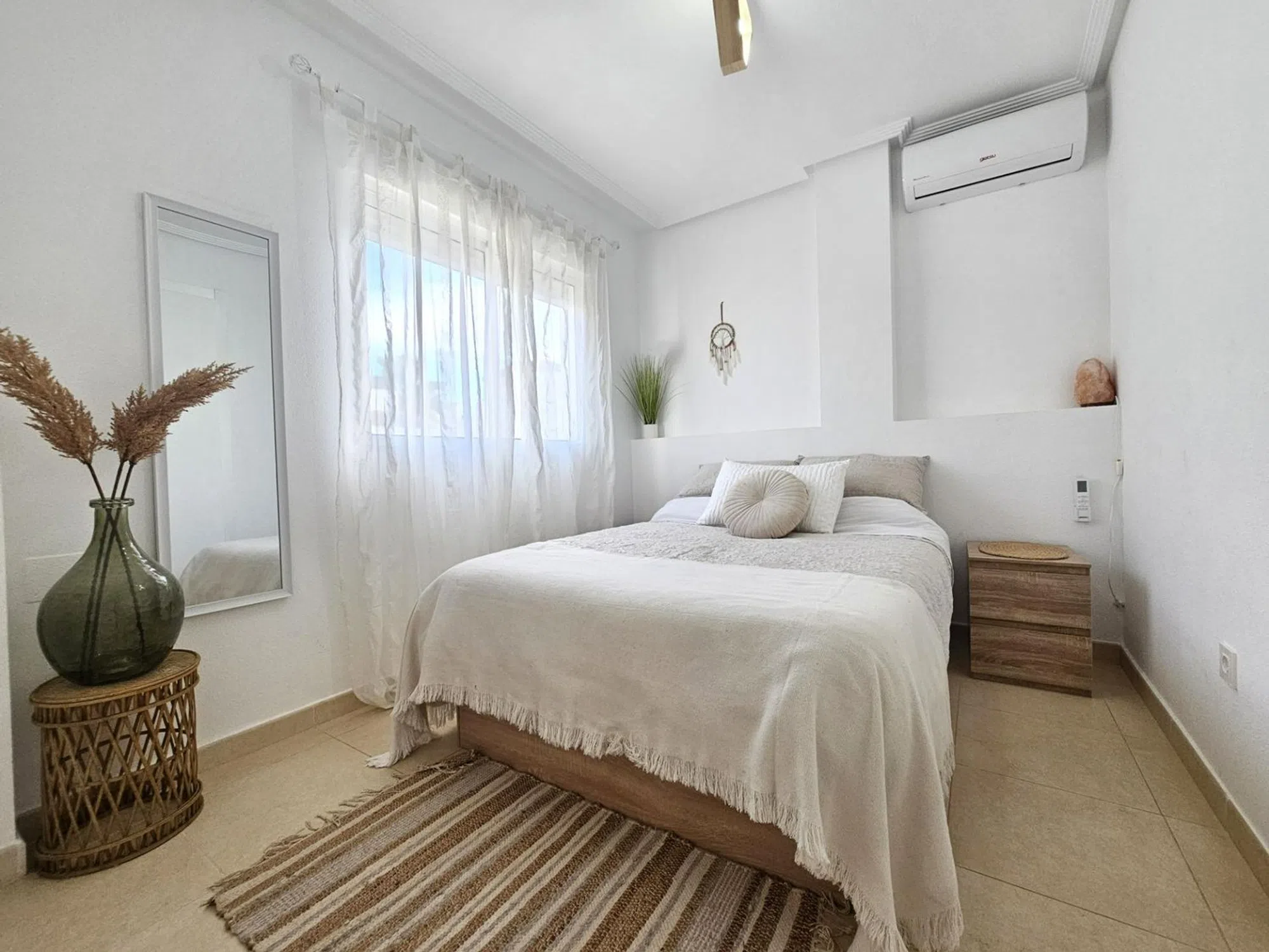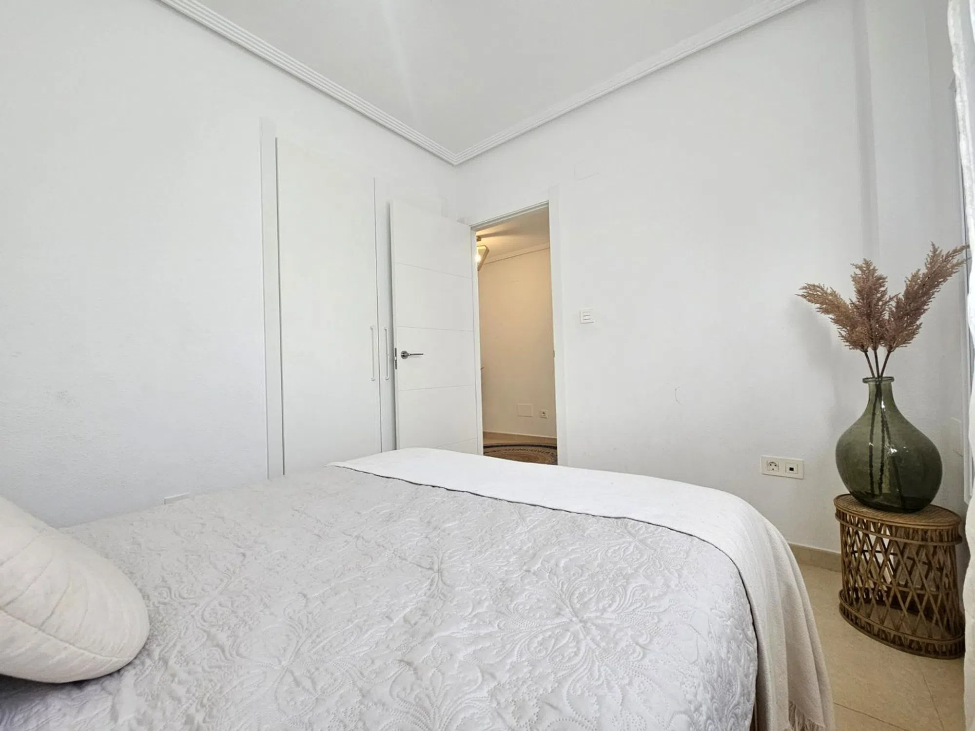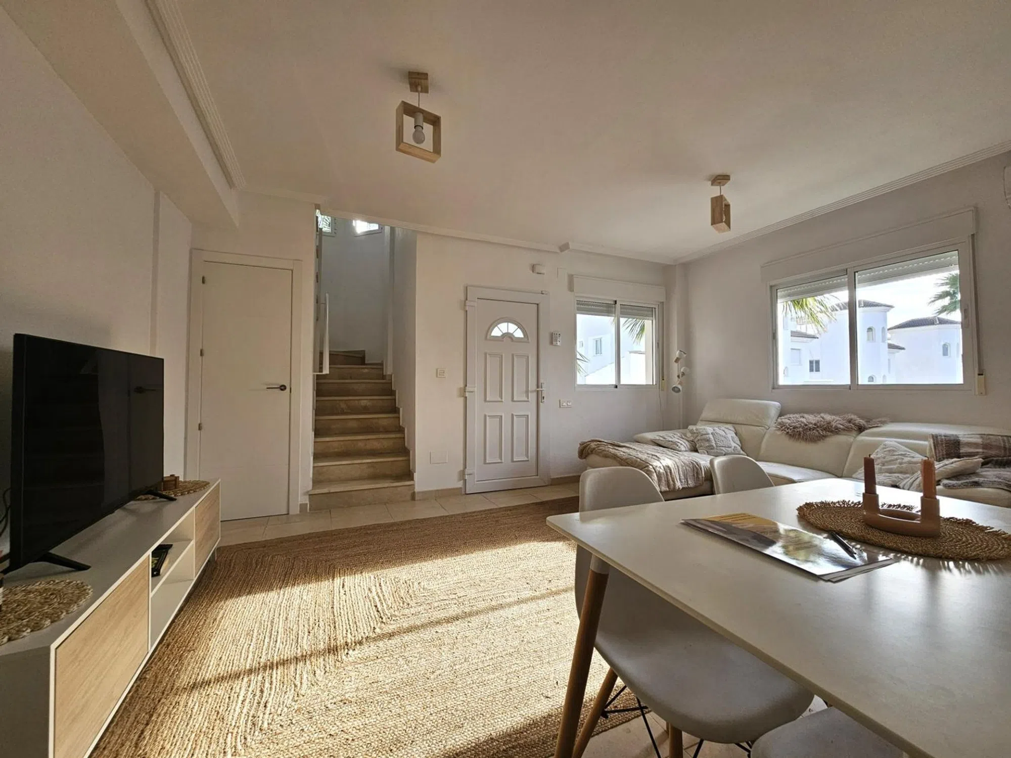 ¡Bienvenido a la casa de tus sueños en San Fulgencio, Alicante! Esta encantadora villa adosada ofrece la combinación perfecta de confort y lujo. Con 3 dormitorios y 3 baños, esta residencia luminosa y acogedora es ideal para familias o para aquellos que aprecian la vida espaciosa. La cocina independiente está totalmente equipada, ofrece mucho espacio de almacenamiento y tiene acceso a un pequeño patio trasero. Cada habitación cuenta con aire acondicionado frío/calor, lo que garantiza un ambiente agradable durante todo el año. Lo más destacado de esta propiedad son sus impresionantes áreas al aire libre que invitan a la relajación y el entretenimiento en medio de magníficas vistas panorámicas. Un jardín de bajo mantenimiento con césped artificial, terraza y hermosas palmeras y árboles frutales son perfectos para tomar un café por la mañana. El dormitorio principal en el primer piso da acceso a una gran terraza orientada al sureste con vistas a la piscina comunitaria y a las montañas en la distancia. El solárium ofrece 25M² para organizar una reunión nocturna bajo las estrellas o tomar el sol todo el día. Además, tenemos 2 baños en suite y 1 baño familiar. Debajo de las escaleras podemos encontrar un cómodo trastero. Ubicado a solo 5 km de playas vírgenes, puede disfrutar de días soleados junto al mar cuando lo desee. Además, estar cerca de los servicios locales significa que todo lo que necesita está al alcance de la mano. Meticulosamente mantenida y en buenas condiciones, esta casa promete una experiencia de mudanza sin preocupaciones. No pierda esta oportunidad de poseer un pedazo de paraíso: ¡programe su visita hoy y entre en un estilo de vida más brillante!
