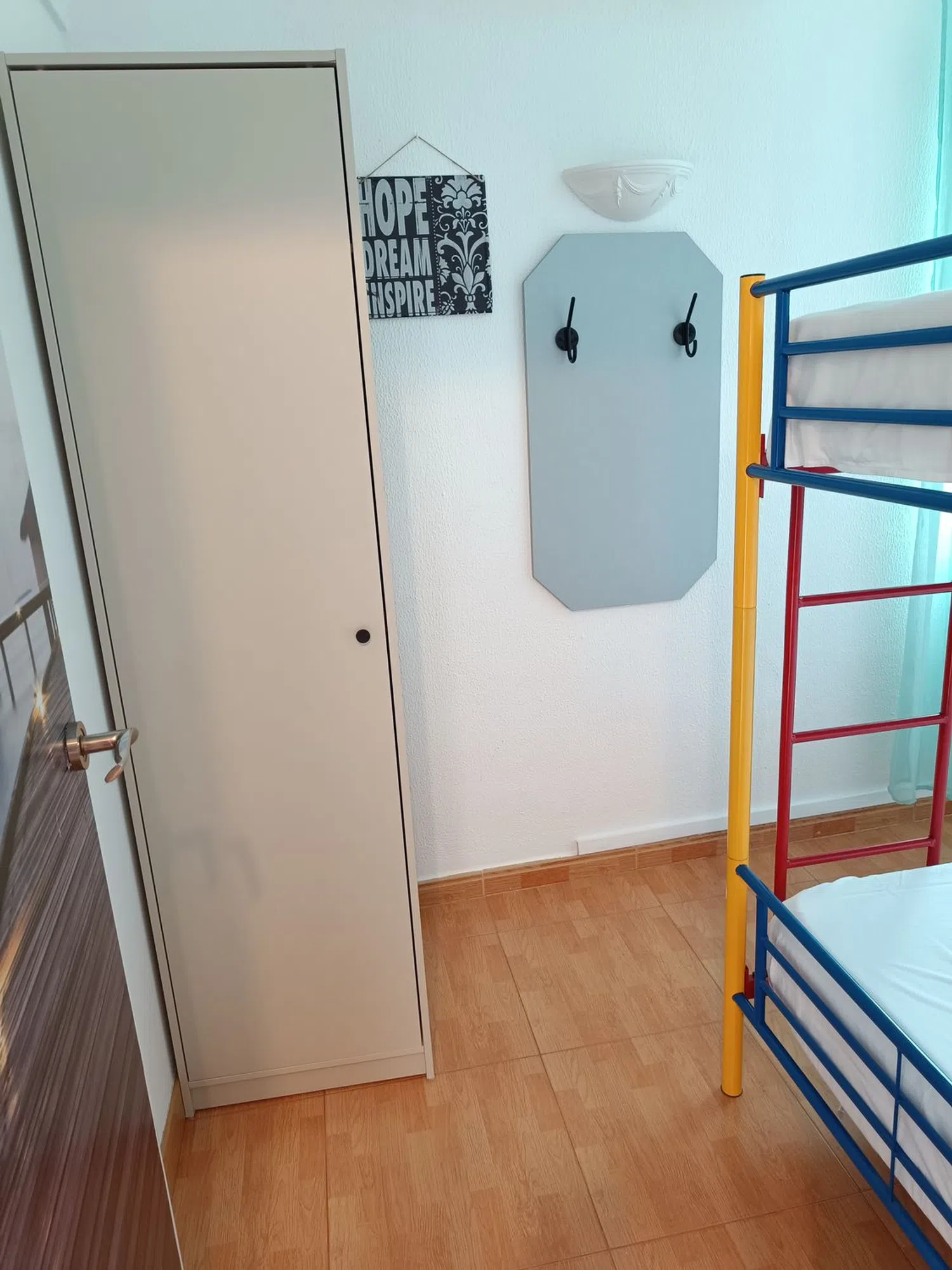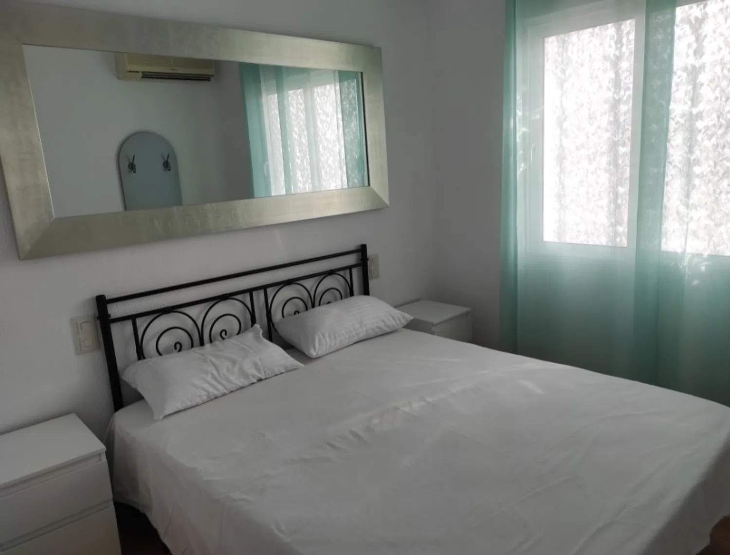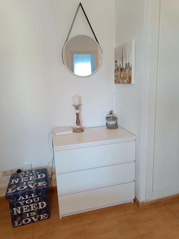 El apartamento, diseñado para ser accesible con pocas escaleras, es un entresuelo que ofrece comodidad. Dispone de espacio de estacionamiento en la entrada. Consta de dos habitaciones y un baño, y aunque no tiene balcón, cuenta con un moderno sistema de aire acondicionado tipo Split, instalado recientemente en junio de 2024, que proporciona tanto frío como calor en el salón. La cocina ha sido reformada y está equipada con nevera, lavadora y lavavajillas, lo que la hace ideal para estancias prolongadas.