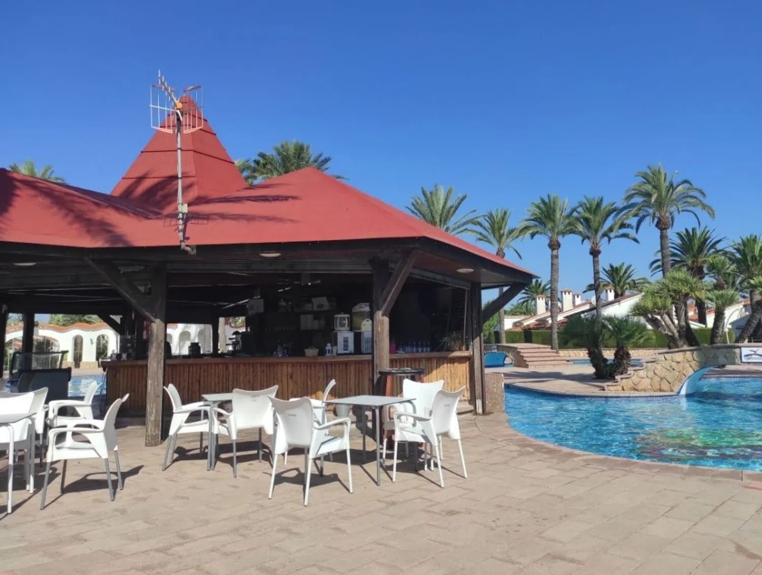 La playa, con su fina arena, se encuentra a solo 400 metros, aproximadamente a cinco minutos a pie. En la costa cercanas hay varios chiringuitos y restaurantes que ofrecen deliciosas opciones gastronómicas. En los alrededores, se pueden encontrar supermercados, farmacias y diversas tiendas, así como una amplia variedad de restaurantes. A la entrada de la urbanización hay una parada de autobús que conecta rápidamente con el pueblo, donde se puede explorar el puerto, el castillo y disfrutar de la vida nocturna. Se solicita no contactar a inmobiliarias.