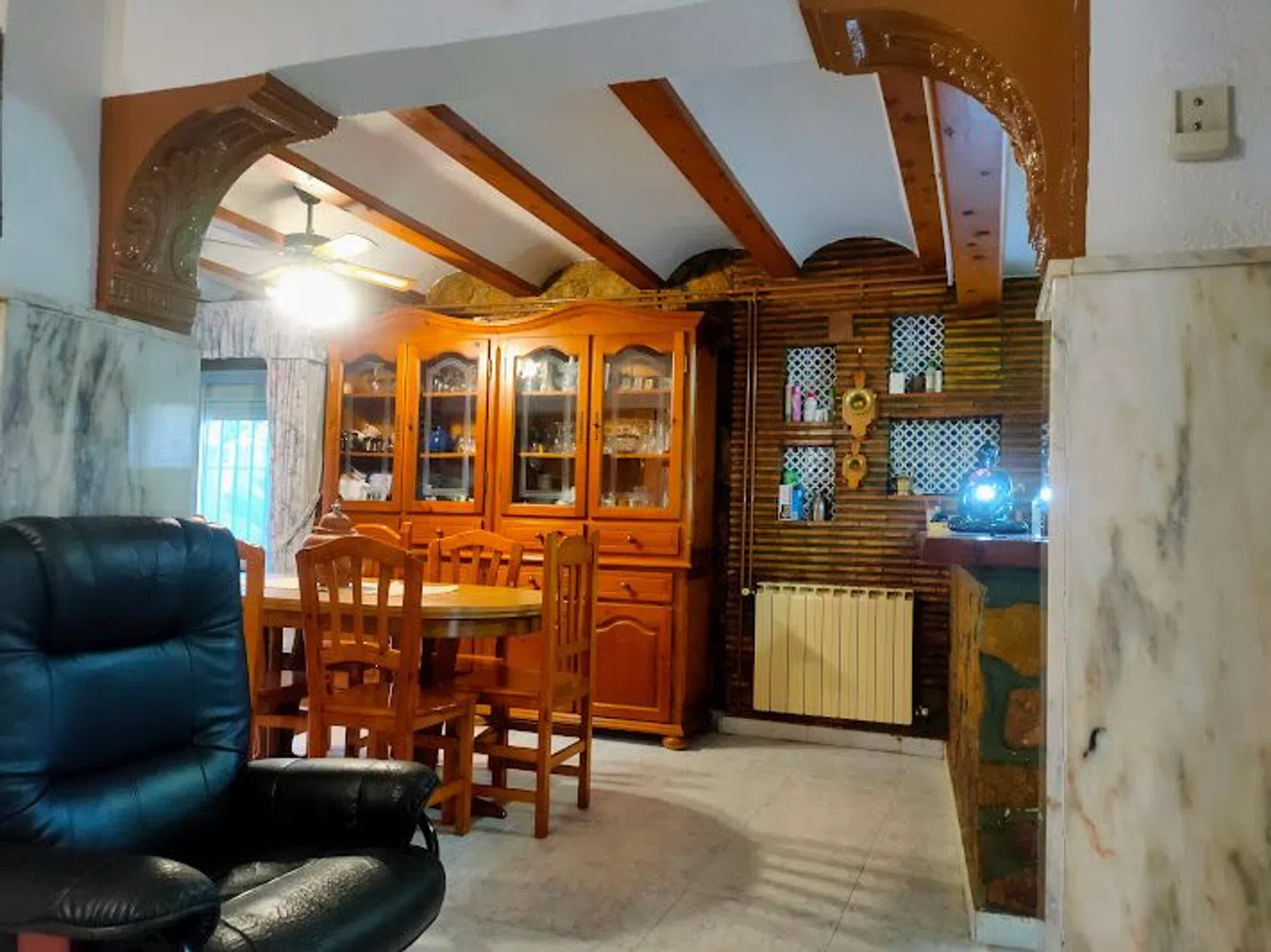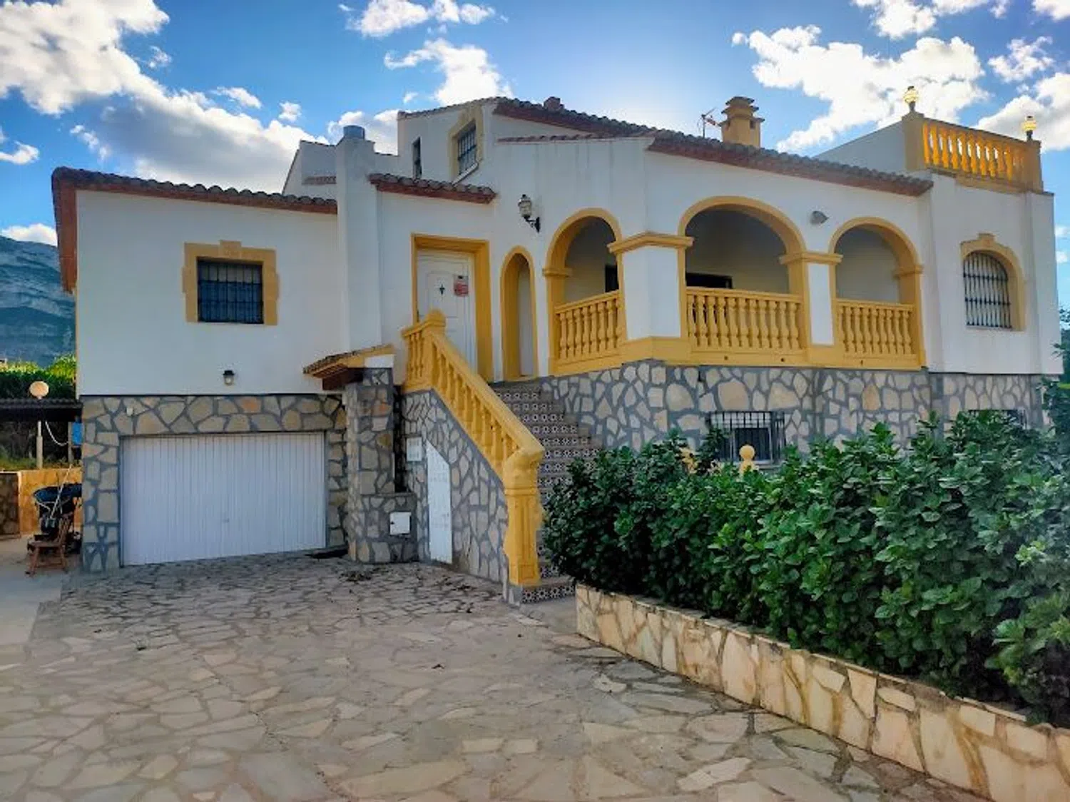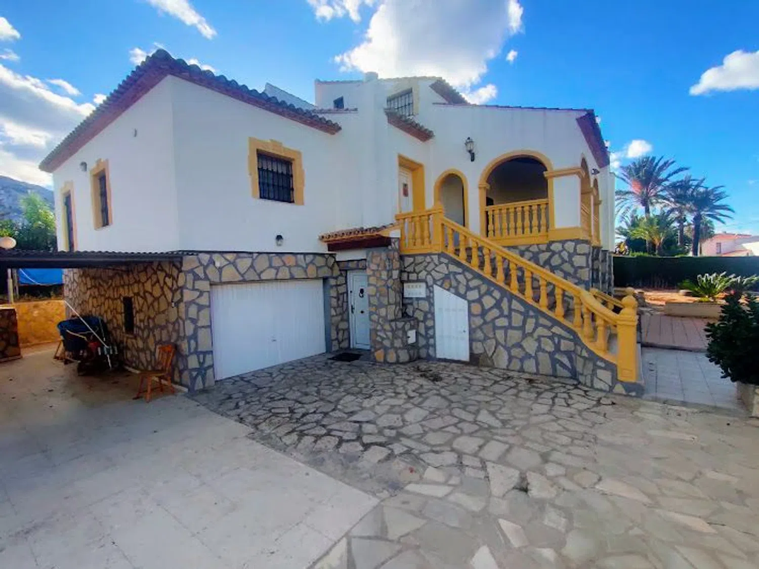 La residencia principal dispone de siete amplias habitaciones, cinco cuartos de baño, cuatro cocinas y dos salones-comedor, proporcionando un espacio ideal tanto para la vida cotidiana como para recibir invitados o celebrar eventos familiares. El garaje cerrado y las plazas de estacionamiento techadas ofrecen comodidad para varios vehículos.